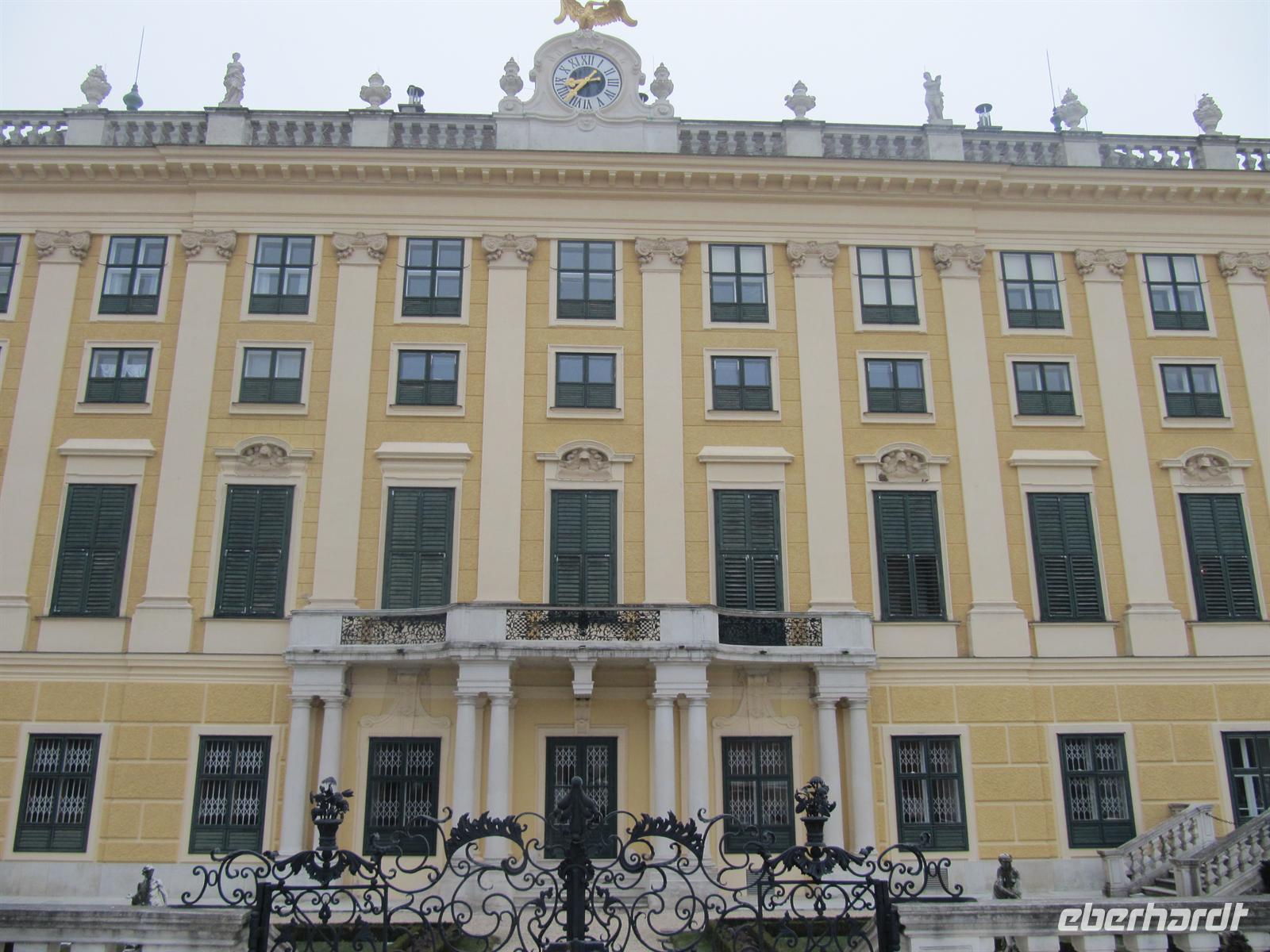 Nach dem gemütlichen Frühstück vom vielfältigen Buffet unseres Hotels fuhren wir zum Schloss Schönbrunn, der Sommerresidenz der Habsburger. Der Name geht auf einen Kaiser Matthias zugeschriebenen Ausspruch zurück, der hier auf der Jagd einen artesischen Brunnen „entdeckt“ und ausgerufen haben soll: „Welch' schöner Brunn“. Wir betraten das Ensemble durch das Portal und den Ehrenhof. Zuvor zeigte uns Herr Paminger das berühmte Max Reinhardt Seminar, wo weltbekannte Schauspieler studierten: Peter Alexander, Senta Berger, Christiane Hörbiger, O. W. Fischer, Peter Weck, Ilse Werner, Paula und Rudolf Wessely. Klangvolle Namen finden sich auch unter den Lehrern, zum Beispiel Klaus Maria Brandauer oder Istvan Szabo. Das benachbarte Schlosstheater Schönbrunn ist auch heute für viele junge Schauspieler die Probebühne.