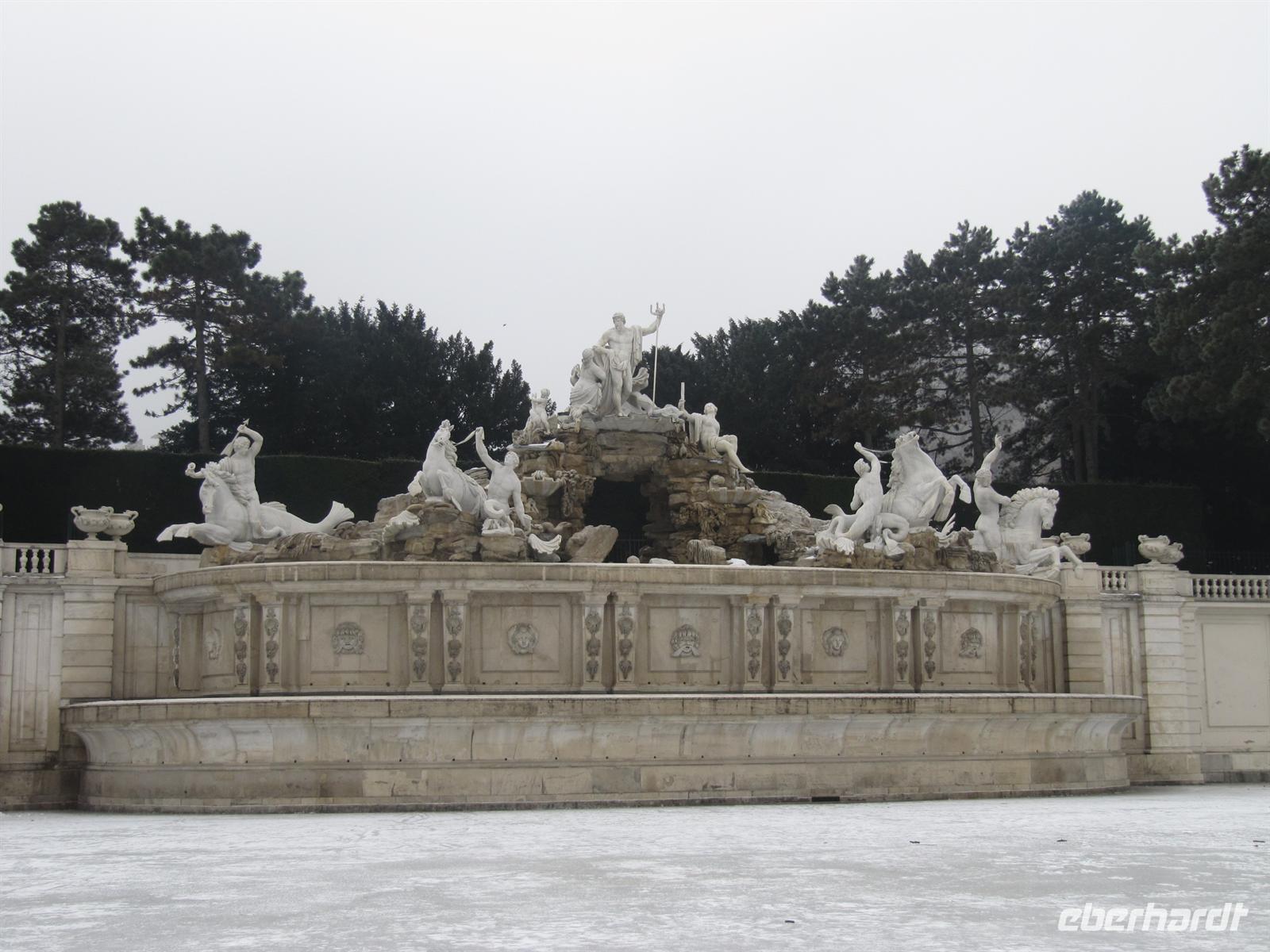 Anschließend spazierten wir im Schlosspark zum Schönen Brunnen, zur Römischen Ruine, zum Neptunbrunnen und zur Großen Paterre. Leider war heute keine gute Sicht, so dass nur einige Gäste den Weg zur Gloriette hinauf nahmen. Wir erfreuten uns am Neujahrsmarkt im Ehrenhof und stärkten uns bei einer Kaffespezialität im Café des Schlosses.