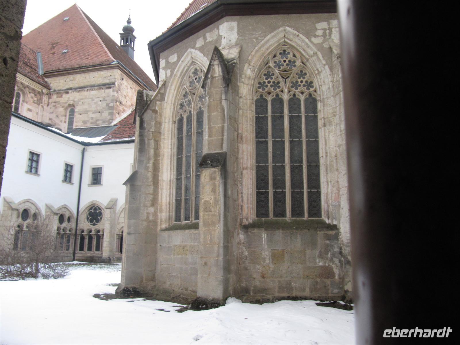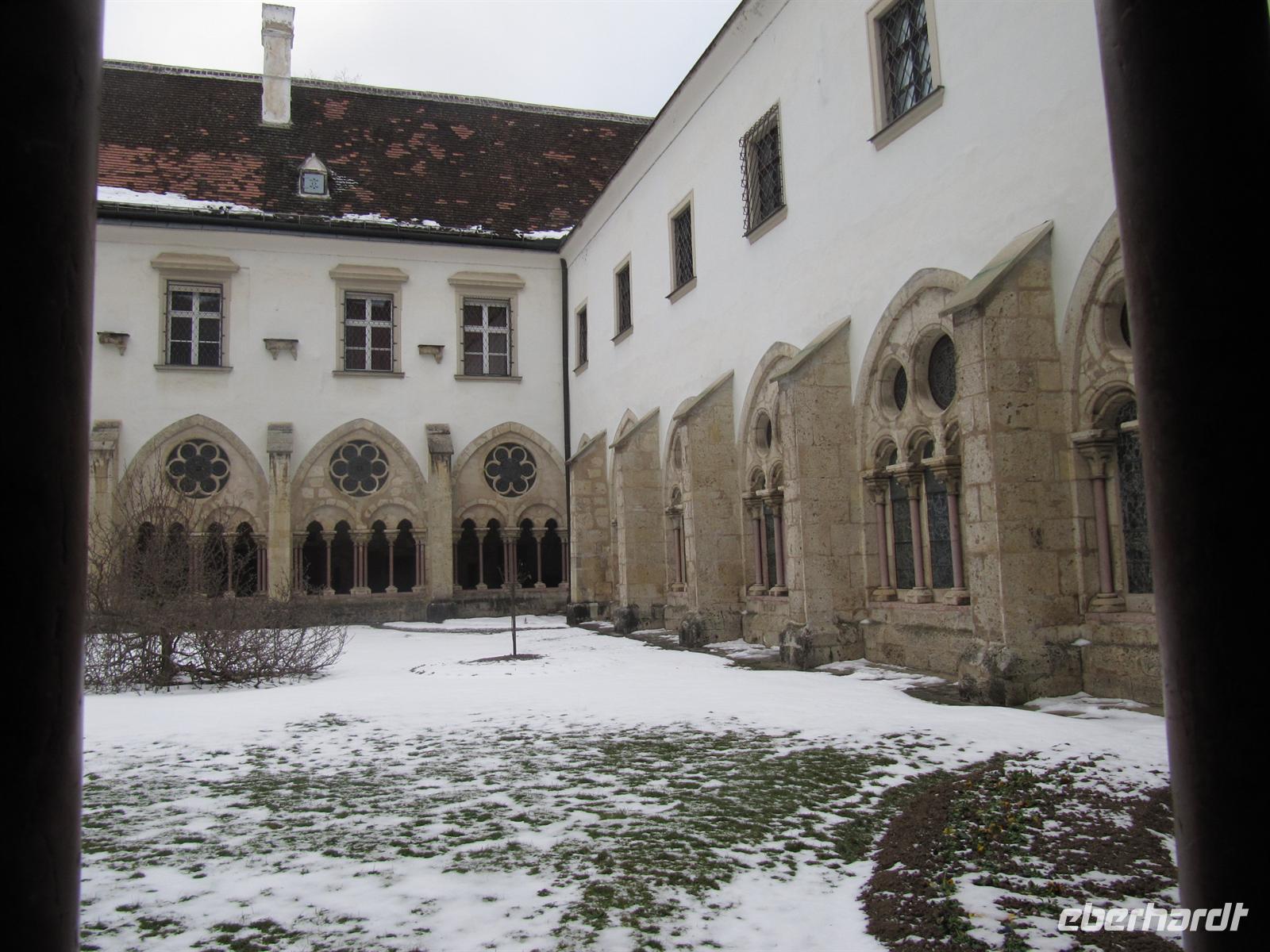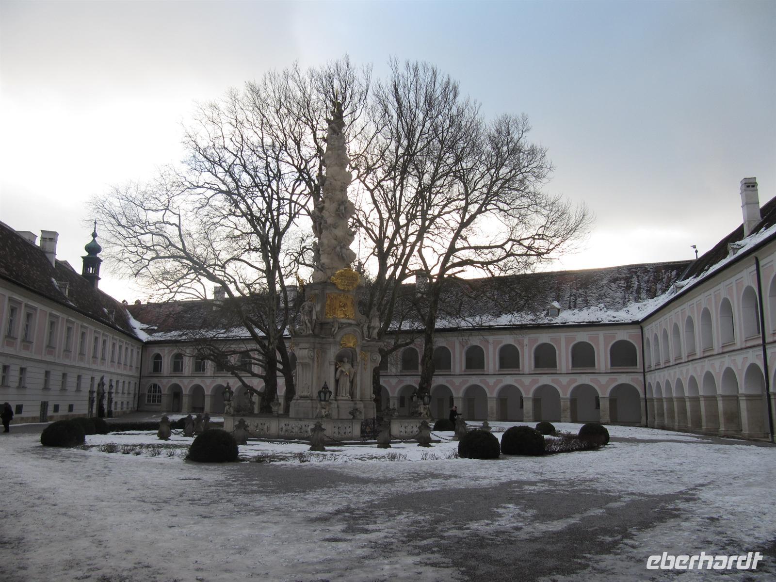 Unsere Abfahrt zum fakultativen Ausflug in den Wiener Wald hatten wir in Übereinstimmung mit Herrn Paminger auf 14.00 Uhr gelegt, damit alle Gäste das Neujahrskonzert bis zum Ende verfolgen konnten. Zu Beginn wünschten wir uns alle nochmals Gesundheit, Glück, Wohlergehen, Erfolg und Freude für das Neue Jahr. Unser Ausflug führte uns nun vor die Tore der Donaumetropole, in den grünen Gürtel der Stadt, den Wienerwald. Unsere erste Station war Stift Heiligenkreuz, das älteste Zisterzienserstift Österreichs. Hier leben zur Zeit 88 Mönche. Das Kloster, 1133 gegründet vom Heiligen Leopold, besteht seit seiner Gründung ununterbrochen. Wir besichtigten den Stiftshof mit der Dreifaltigkeitssäule, den anmutigen Kreuzgang, den Lesegang mit den wunderschönen Grisaillefenstern, den gotischen Kapitelsaal - die Grablage von fünf regierenden Babenbergern, das Brunnenhaus, die Annenkapelle, die Totenkapelle, die Sakristei mit wertvollen Intarsienarbeiten, die Fraterie und natürlich die Abteikirche.
