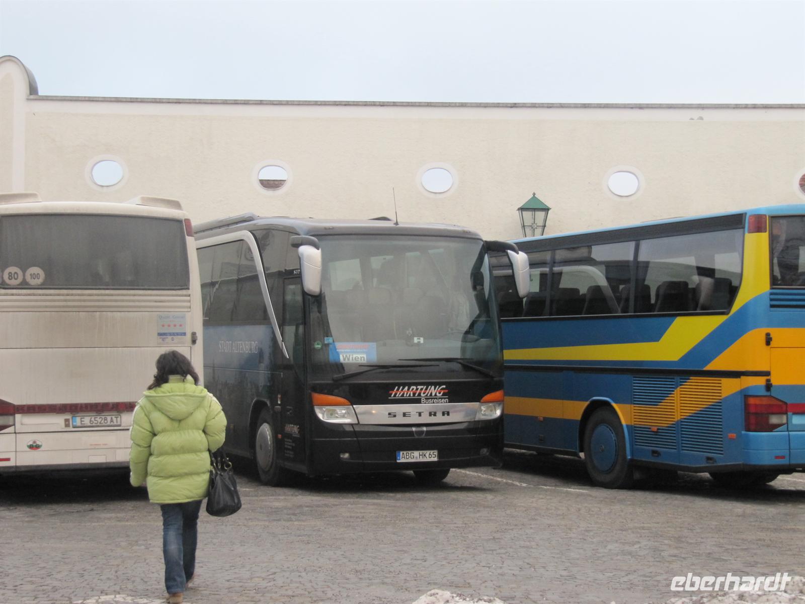 Es war am Morgen grimmig kalt, das Thermometer zeigte -13.5 °C und es hatte auch wieder geschneit. Die Wetteraussichten für Wien waren besser, es sollte wenig Schnee geben und die Temperaturen während unseres Aufenthaltes bis knapp über Null ansteigen. Mal schauen, wie es wird. Die Wetterfrösche können sich ja bekanntlich auch irren. Wir wollten aber optimistisch sein, denn Optimisten leben ja bekanntlich länger. Am Vortag hatte ich mich bereits allen Gästen per Telefon vorgestellt und wir hatten auch kurz über diese Aussichten gesprochen. Nun machten wir uns an der Abfahrtsstelle am Flughafen Dresden persönlich bekannt. Alle 22 Gäste waren an Bord und wir konnten starten.