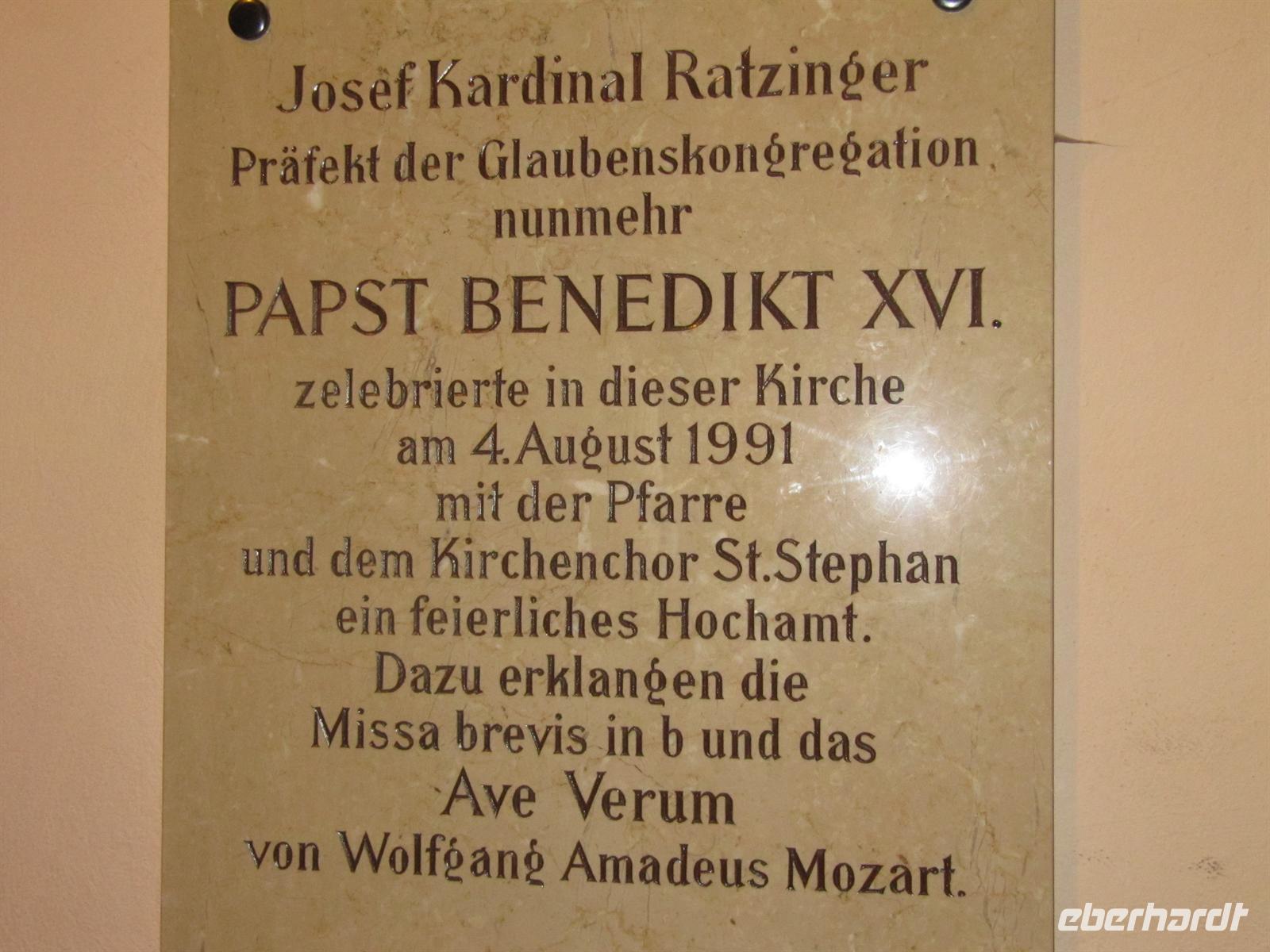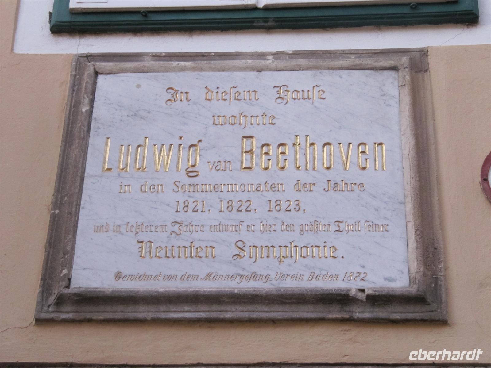 In der Kurstadt Baden angekommen, begaben wir uns bei einem Spaziergang auf die Spuren von Beethoven und Mozart. Wir sahen das Haus in der Rathausgasse, in dem Beethoven seine Neunte Sinfonie komponierte, gingen über den Marktplatz mit dem Rathaus und der Dreifaltigkeitssäule vorbei am Stadttheater zur Kirche St. Stephan. Hier war 1791 Mozarts berühmtes Ave Verum zum ersten Mal aufgeführt worden. Mozart komponierte die 46 Takte für Chor, Streicher und Orgel (KV 618) knapp ein halbes Jahr vor seinem Tod, während er zugleich an der Zauberflöte und dem Requiem arbeitete. Die Komposition war für das Fest zu Fronleichnam in Baden bei Wien, wo Mozarts Frau Constanze sich im neunten Ehejahr auf ihre sechste Niederkunft vorbereitete, bestimmt. Sie wohnte bei Anton Stoll, dem Chorleiter des Badener Kirchenchors, der die Motette dafür als Geschenk annahm.