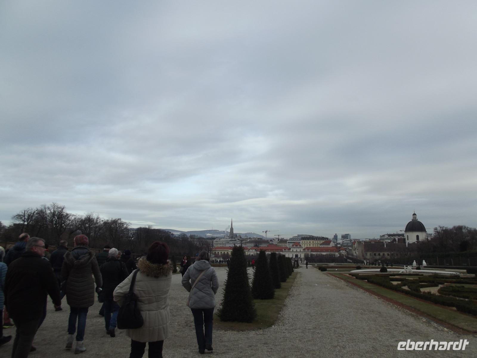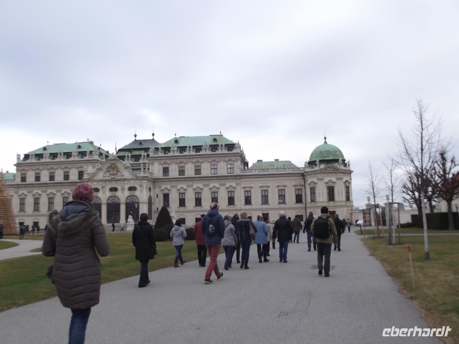 Der frühe Vogel fängt den Wurm - wir wollen schließlich die Straßen und Sehenswürdigkeiten Wiens erkunden. Das leckere Hotelfrühstückt stärkt unsere noch müden Glieder und um 9 Uhr starten wir die Stadtrundfahrt mit unserem sympathischen Fremdenführer Herrn Paminger. Wir werden von leichtem Regen empfangen, aber das macht gar nichts, denn wir sitzen ja im gemütlichen Bus. Allerlei Fotomotive schweben an unserem Bus vorbei: das Schloss Schönbrunn, die Jugendstilhäuser von Otto Wagner, der Naschmarkt, die Karlskirche, das Hotel Sacher, die Staatsoper, die Kaiser-Franz-Joseph-Jubiläums-Kirche, der Prater und auch das „Alte Donau"-Badegebiet. Im Sommer wird dort gebadet und im Winter kann man sich mit Schlittschuhen dort austoben. Wir sehen sogar das Strauss-Museum, wo einst im ersten Stock der Donauwalzer komponiert wurde. Am Vormittag machen wir Halt am berühmten Hundertwasserhaus im 3. Wiener Gemeindebezirk- eins der vielen Bauten des verträumten Künstlers Friedrich Stowasser (Künstlername: „Friedensreich Regentag Dunkelbunt Hundertwasser"). Mit vielen schönen Eindrücken setzen wir unsere Fahrt fort und besuchen das Schloss Belvedere. Wir spazieren durch die weitläufige Gartenanlage mit seinen zahlreichen Brunnen und weißen Skulpturen, lauschen den Erzählungen unseres Fremdenführers und genießen den Ausblick auf das Panorama von Wien. Langsam dürstet es uns nach einem guten Kaffee, so kehren wir ein im Café Vienne nahe dem Schwedenplatz und tauchen ein in die Welt der Kaffeekultur, einen heißen Melange in den Händen. Aufgewärmt und gestärkt geht es zu Fuss durch die Altstadt und statten dem Stephansdom einen Besuch ab. Schon jetzt werden die Bühnen und Buden für den Silvesterpfad aufgebaut, es herrscht ein reges Gewusel. Gegen 16:30 endet unser Spaziergang kurz vor dem Karlsplatz und manche Gäste finden sich zusammen für ein gemeinsames Abendessen, manche Gäste ziehen los, um die Stadt individuell zu entdecken.