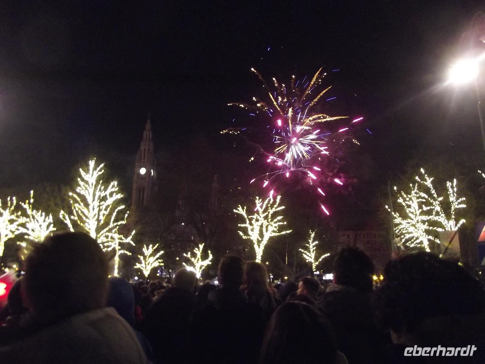 Um 17:30 Uhr findet sich die Gruppe wieder in der Hotellobby zusammen. Der Silvesterabend beginnt mit einem typischen, deftigen Essen in dem Gasthaus „Das Bieramt" am Heumarkt. Uns wird österreichische Hausmannskost gereicht: Schweinebraten, Knödel und Sauerkraut - eine herzhafte Spezialität. Satt und gespannt auf den Abend steigen wir gegen 21 Uhr in den Bus und unser Fahrer Frank ist so nett und bringt uns bis zur Staatsoper, wo wir die Aufführung „Die Fledermaus" mitverfolgen können. Einige Gäste fahren wieder mit Frank in das Hotel, einige Gäste bilden Gruppen und ziehen zusammen über den Wiener Silvesterpfad. In der Innenstadt gibt es Getränke- und Essensstände, Bühnen mit unterschiedlichen Musikrichtungen und tanzbegeisterte Wiener, die schunkelnd über den Platz tanzen. Wir schließen uns den Feierlichkeiten an und prosten einander zu, während das Feuerwerk um Mitternacht das Rathaus in bunte Farben taucht.