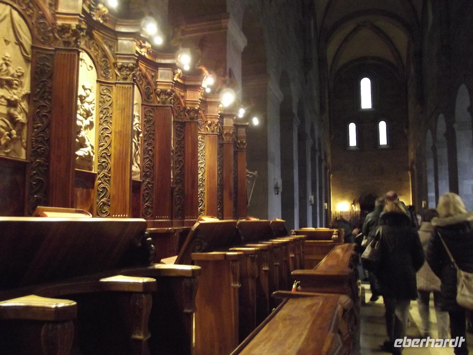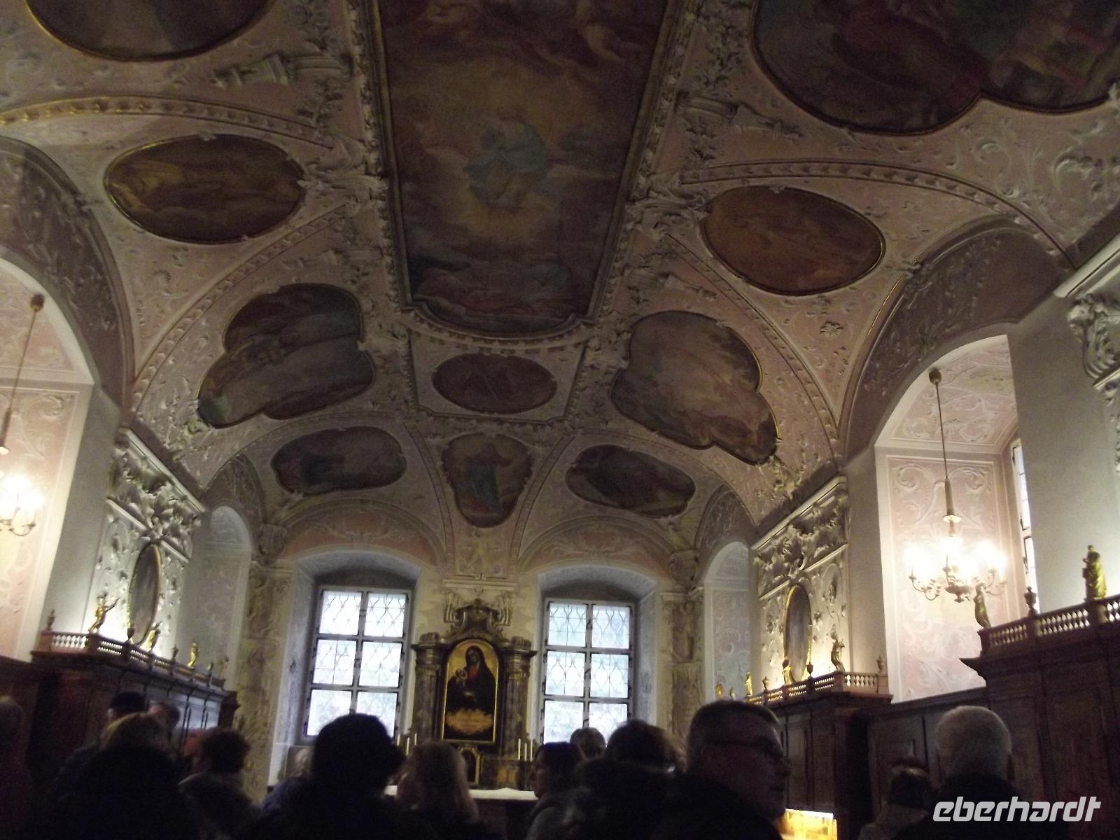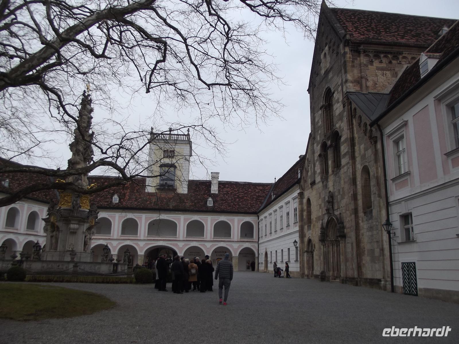 Der erste Tag im Jahr 2018 beginnt mit einem starken Kaffee (und für den ein oder anderen auch mit einem Glas Sekt) vom Frühstücksbuffet. Viele Gäste schlafen noch oder bestaunen die Wiener Philharmoniker auf dem Rathausplatz, aber 12 Gäste haben sich dafür entschieden, das neue Jahr mit klassischer Musik einzustimmen und zu begrüßen: das Neujahrskonzert des Wiener Hofburgorchesters im Gartenpalais Liechtenstein begeistert. Im Herkulessaal werden mit der Unterstützung von vier talentierten Solisten die Klassiker der Operetten - und Walzermusik, sowie die Hymne von Strauss „An der schönen blauen Donau" dargeboten. Um 12:40 Uhr ist das Konzert leider vorbei und wir fahren rasch in das Hotel, um uns warm anzuziehen, denn um 14 Uhr geht es mit der ganzen Gruppe in den Wiener Wald zum Kloster Stift Heiligenkreuz, welches schon im Jahr 1133 gegründet wurde. Wir bekommen eine informative Führung von Herrn Paminger und lernen nicht nur etwas über die Räumlichkeiten, sondern bekommen auch den Tagesablauf der hier lebenden Mönche erklärt. Der Nachmittag neigt sich dem Ende zu und der Magen knurrt, daher geht es für uns weiter nach Gumpoldskirchen zum Stelzenessen im Heurigen Burckberger. Es wird gelacht, gesungen und das Essen genossen, bis wir wieder zurück in das Hotel fahren, denn die letzte Nacht war kurz. Mit einem Glas Wein lassen manche Gäste gemütlich den Abend ausklingen.