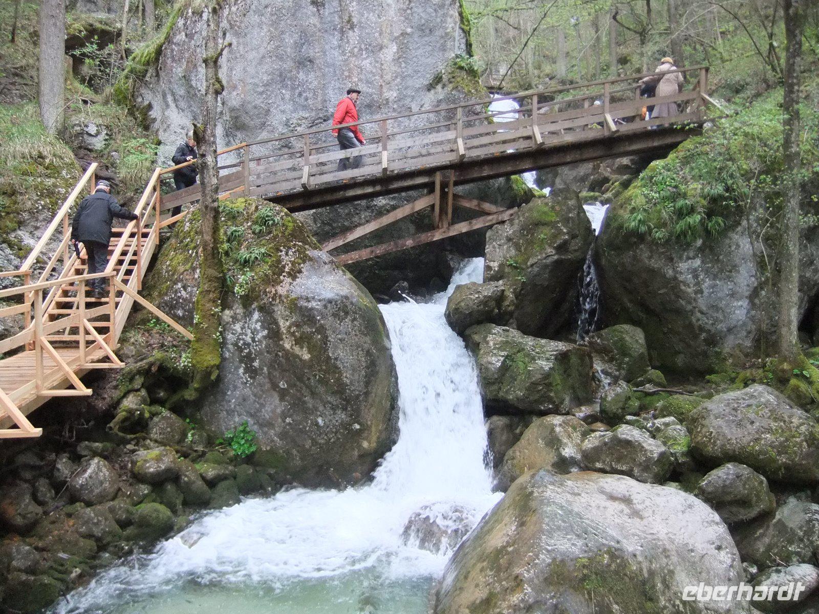 Heute wollen wir mit Josef in den Wiener Alpen Interessantes rund um den Schneeberg entdecken. Zuerst bringt uns Tilo mit dem Bus durch das Piestingtal nach Muggendorf, wo uns ein besonderes Naturschauspiel erwartet: die Myra-Wasserfälle. Der Fluss Myra stürzt hier durch enge Felsschluchten und über zahlreiche Katarakte in die Tiefe. Wir spazieren über die hölzernen Brücken und lauschen dem Tosen des Wassers.