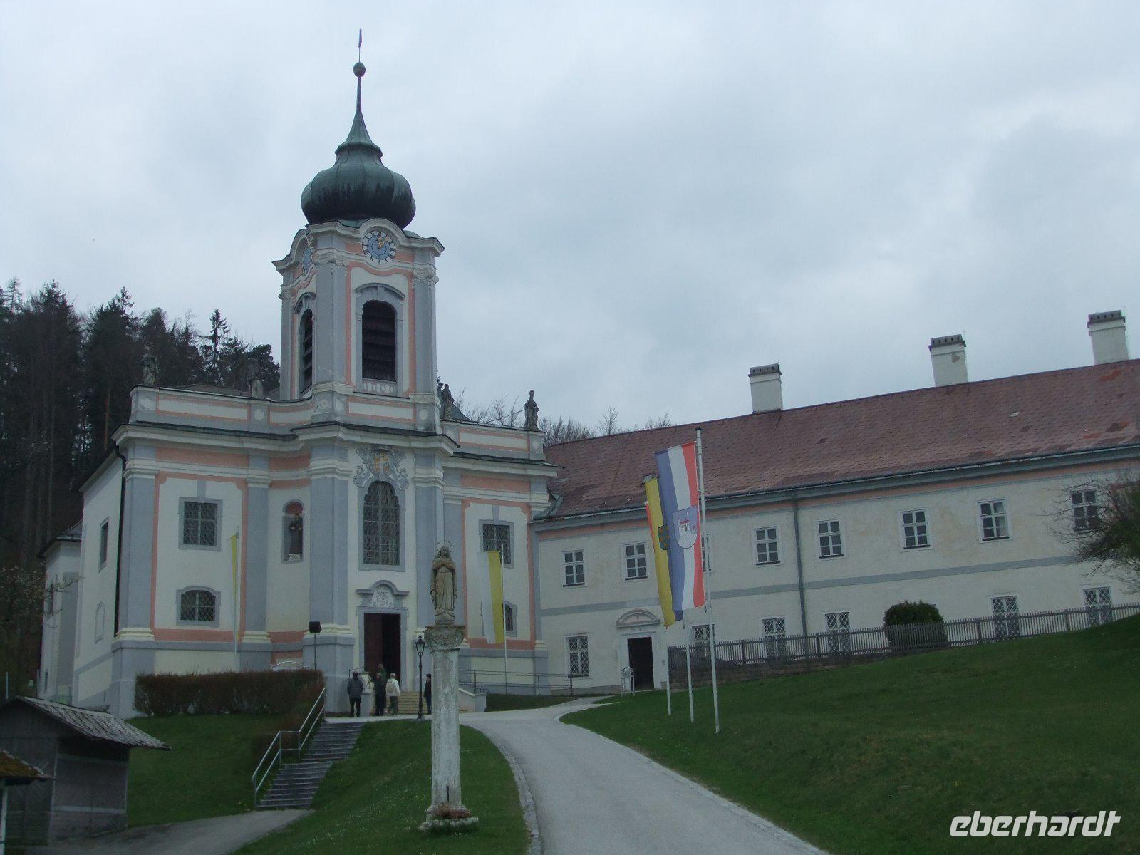 Vorbei an der Burgruine Gutenstein fahren wir weiter auf den Mariahilfberg, einen bedeutenden katholischen Wallfahrtsort. Oben angekommen gibt es für die Gäste ein kulinarisches „Osterei": Am heutigen Fastentag lassen wir uns geräucherte Forelle mit Salat schmecken. Danach besichtigen wir die Wallfahrtskirche, von deren Eingang man auch einen schönen Blick auf den Schneeberg hat.