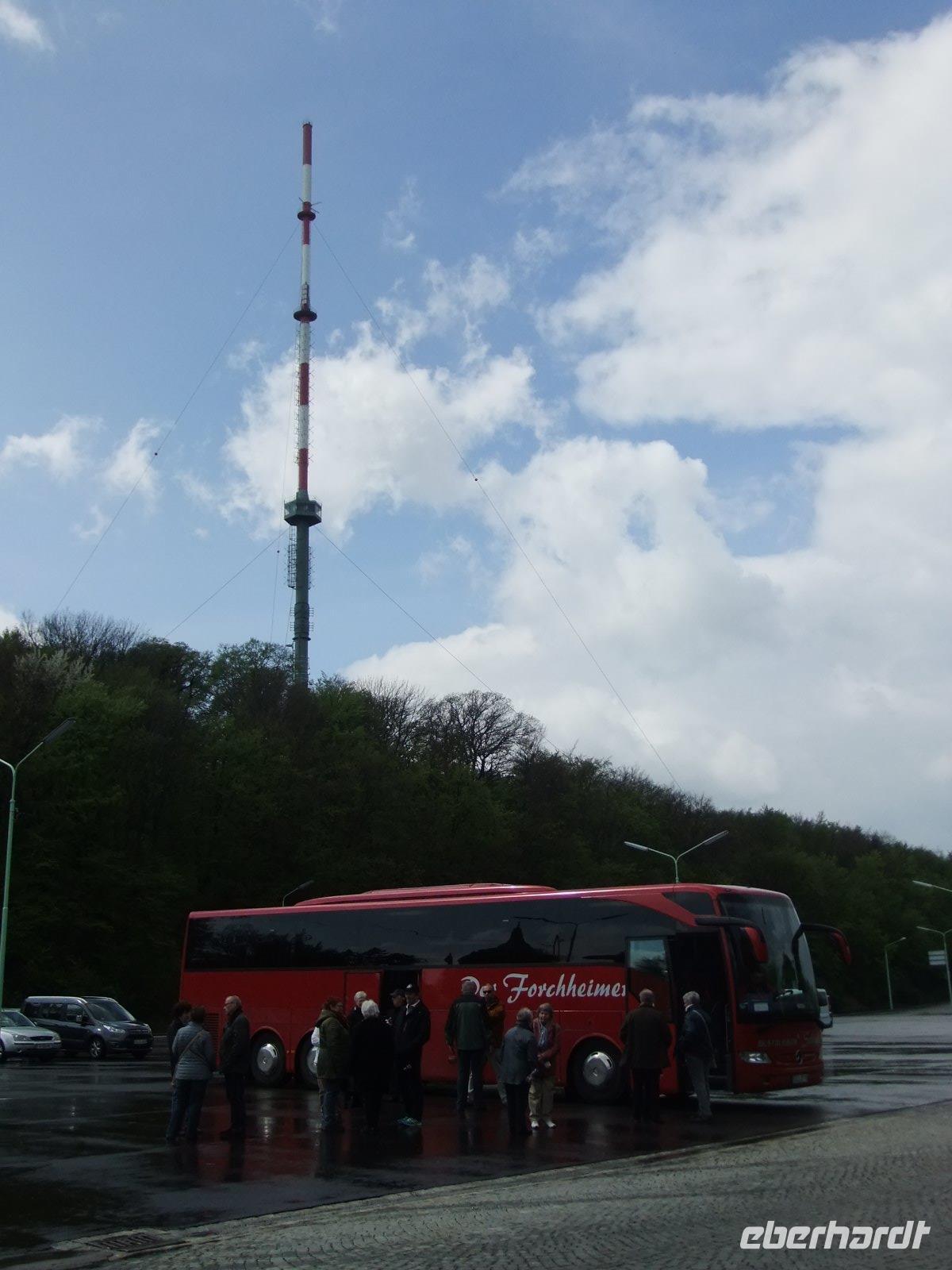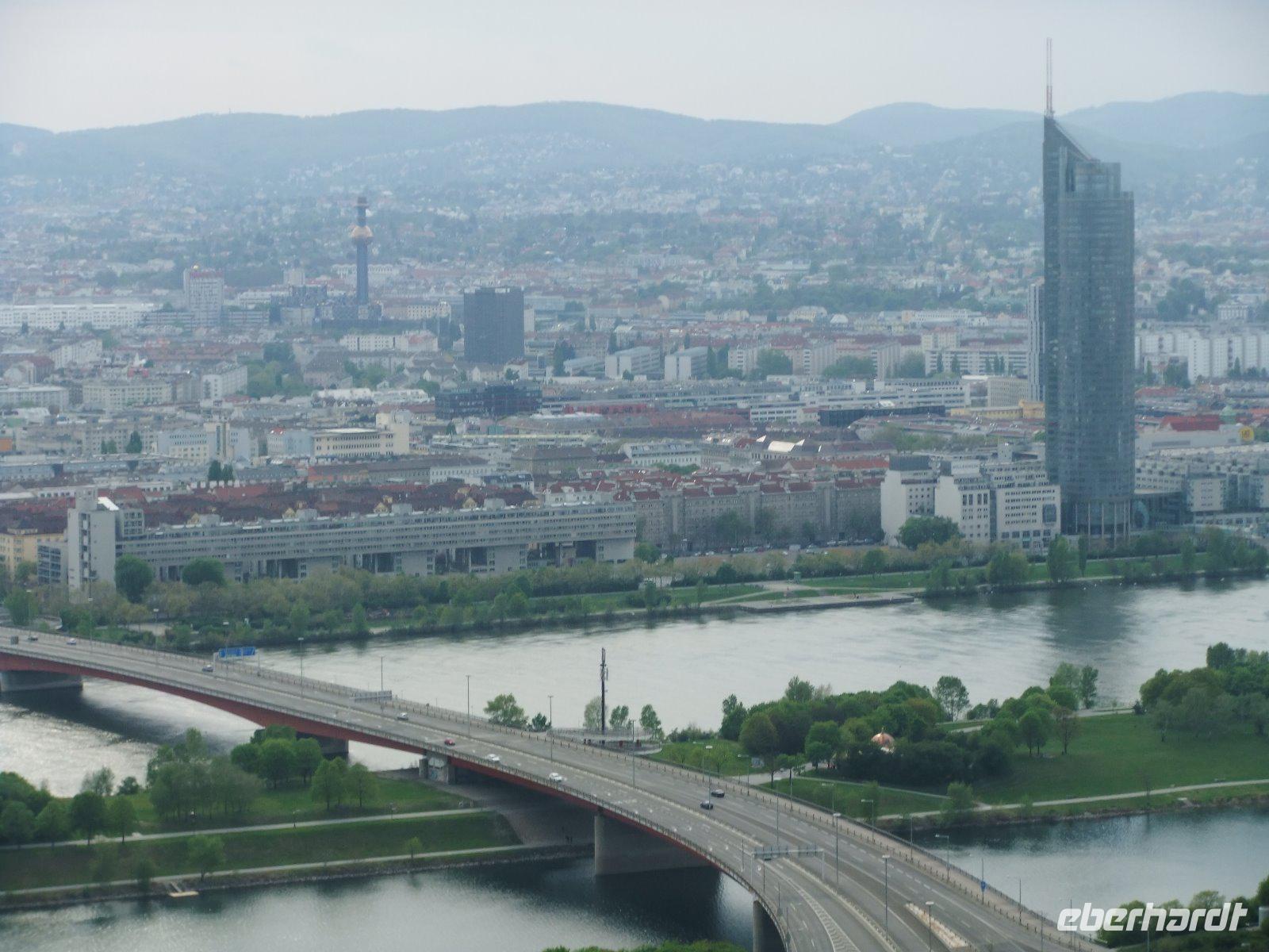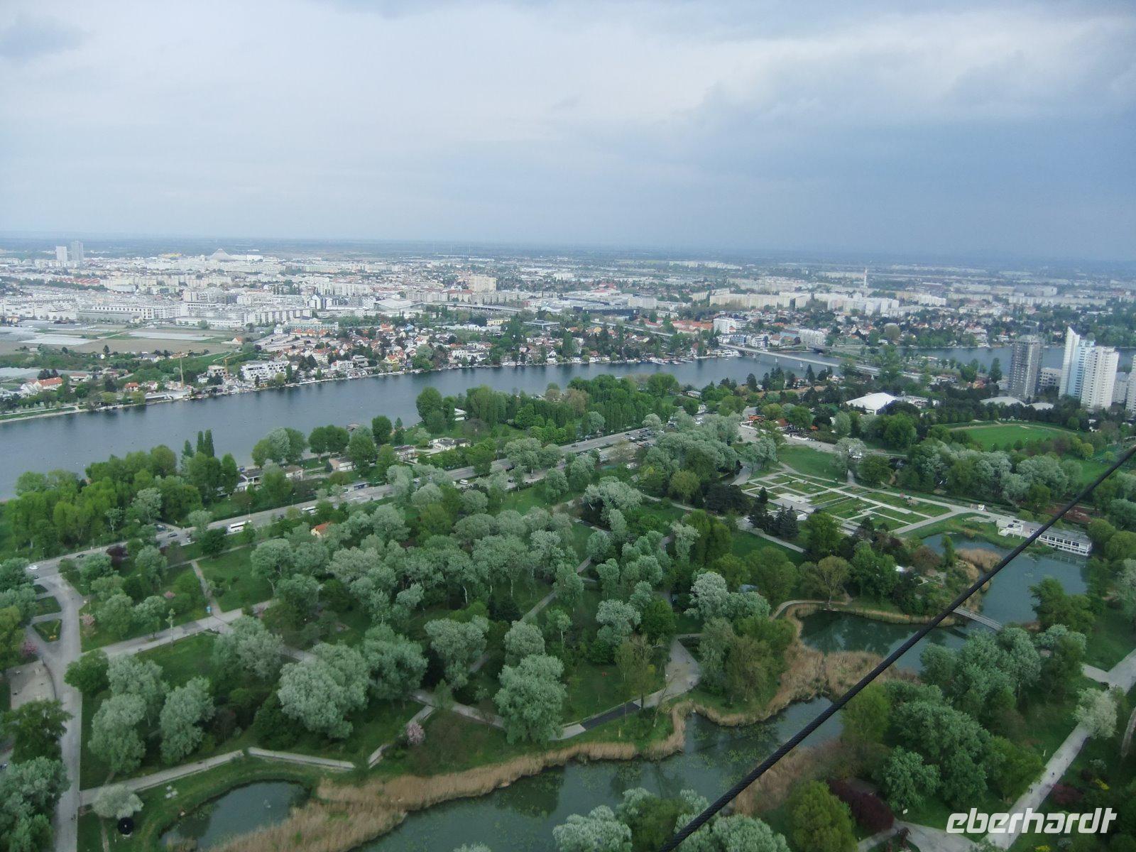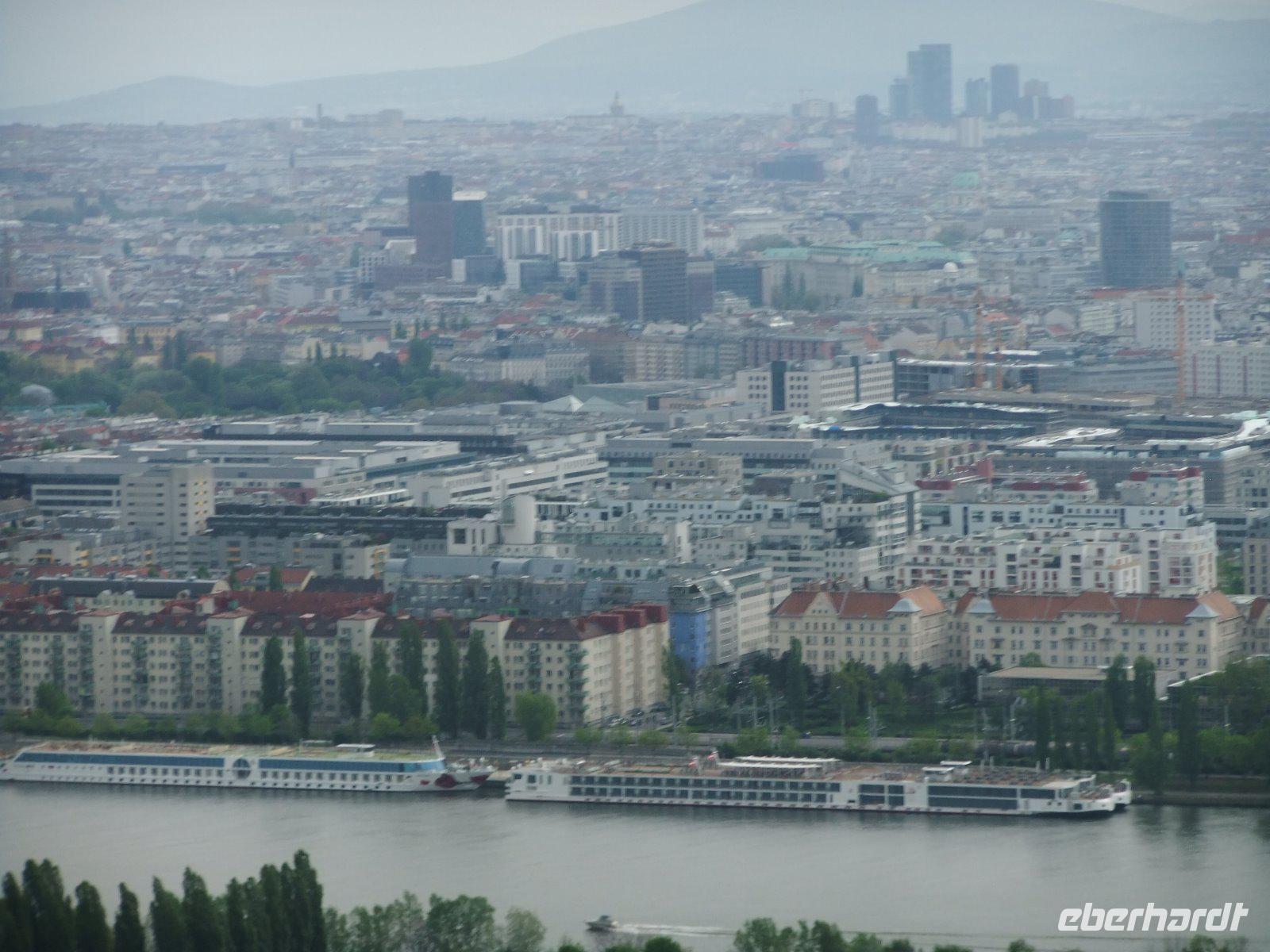Der 2. Teil der Stadtrundfahrt bringt uns vorbei am Prater und über die Donau zu UNO-City. Am Fuße des Donauturms machen wir eine Kaffeepause. Der Eberhardt-Osterhase hat uns heute ein Nutellatörtchen ins Nest gelegt. Nun wollen wir hoch hinaus. Neben dem Riesenrad im Prater gilt der 252 Meter hohe Donauturm als eines der Wahrzeichen der Stadt. Ein Expresslift bringt uns in kürzester Zeit zur Aussichtsterrasse in 150 m Meter Höhe. Von hier genießen wir einen spektakulären Blick über Wien. Ein ganz besonderes Erlebnis!
