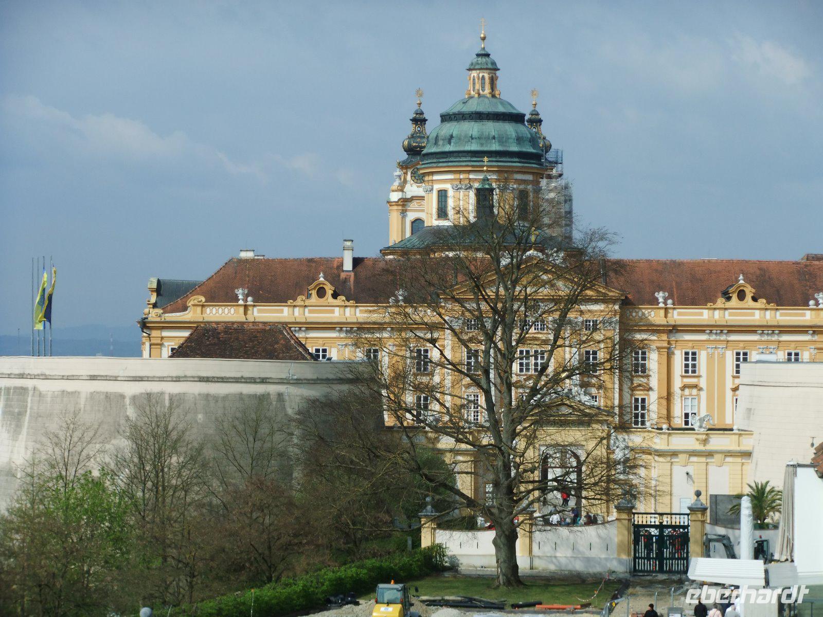 Am heutigen Ostersonntag erwarten uns im Frühstücksraum schon leckere Ostertörtchen. Im Bus begrüßen uns kleine Schokohasen und wir starten unseren Ausflug mit fröhlichen Osterliedern. Wir fahren über den „Hals" ins Triestingtal und weiter durch das Wienerwald-Gebiet. Unser Ziel ist die Wachau. Als romantische Uferlandschaft mit schroffen Felsen und sanften Weinhängen, bezaubernden Winzerhäusern und monumentalen Schlössern und Klöstern wird diese Region beschrieben. Bald sehen wir schon von weitem hoch über der Donau das bekannte Stift Melk, das als eine Meisterleistung barocker Baukunst gilt. Für uns ist hier eine Führung bestellt. Zunächst geht es über die Kaiserstiege in den Kaisergang. In der modernen Ausstellung erhalten wir Einblicke in die Geschichte des Stifts und in das benediktinerische Klosterleben. Von der Altane bietet sich uns ein großartiger Ausblick auf die Donaulandschaft und die Westfassade der Stiftskirche. Nun besichtigen wir noch die bekannte Stiftsbibliothek. Hier recherchierte einst Umberto Eco für seinen Erfolgsroman „Der Name der Rose". Die prunkvolle Stiftskirche, in der gerade das Mittagsgebet stattfindet, ist dann Abschluss und Höhepunkt unseres Rundgangs. Es bleibt noch Zeit für eine Auffahrt auf die Nordbastei, dann treffen wir uns zum Mittagessen am Bus.