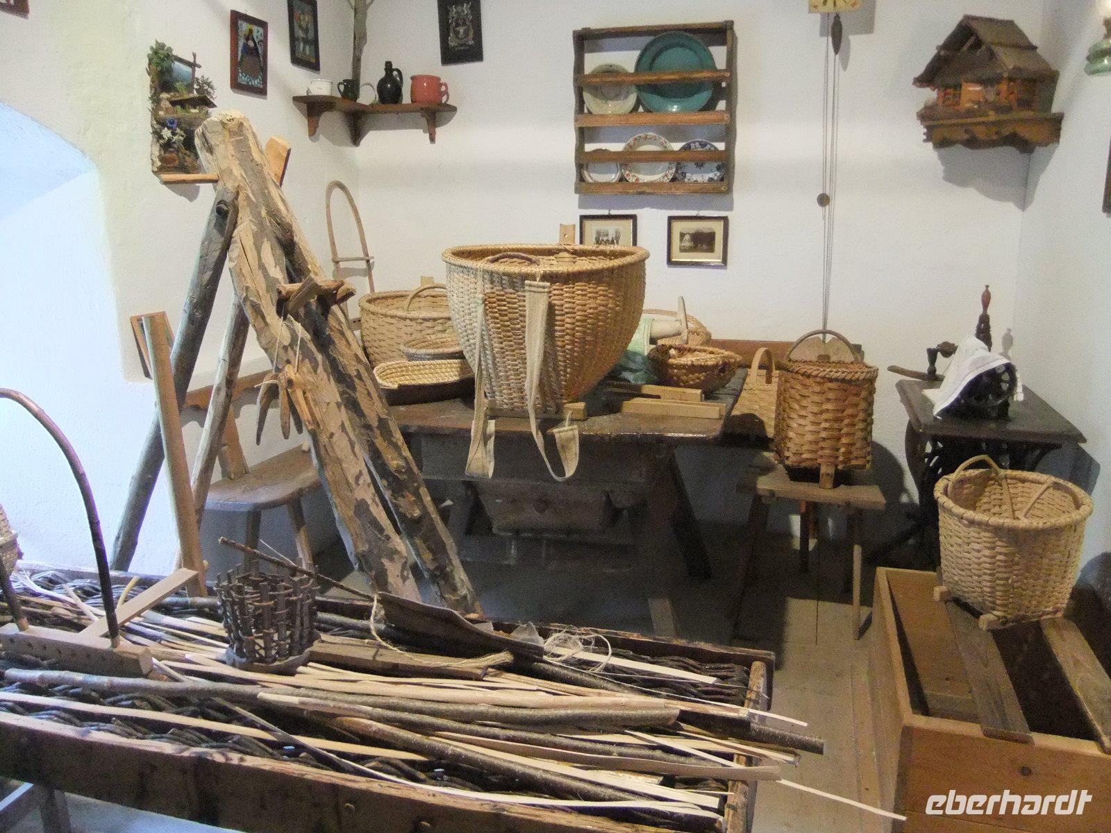 In Gutenstein befindet sich unser nächstes Ziel: Das Waldbauernmuseum. Hier erhalten wir bei einer Führung Einblicke in wichtige Erwerbszweige der früheren Bewohner des Schneeberglandes. Anhand vieler Modelle und originaler Gerätschaften lernen wir u.a. die Arbeit der Korbflechter, Bottichbinder, Kalkbrenner, Pecher, Wagenmeister und Sägewerker kennen.