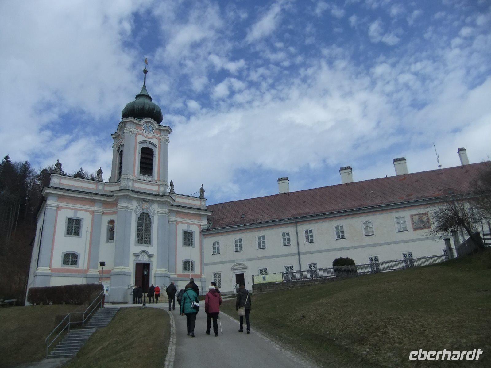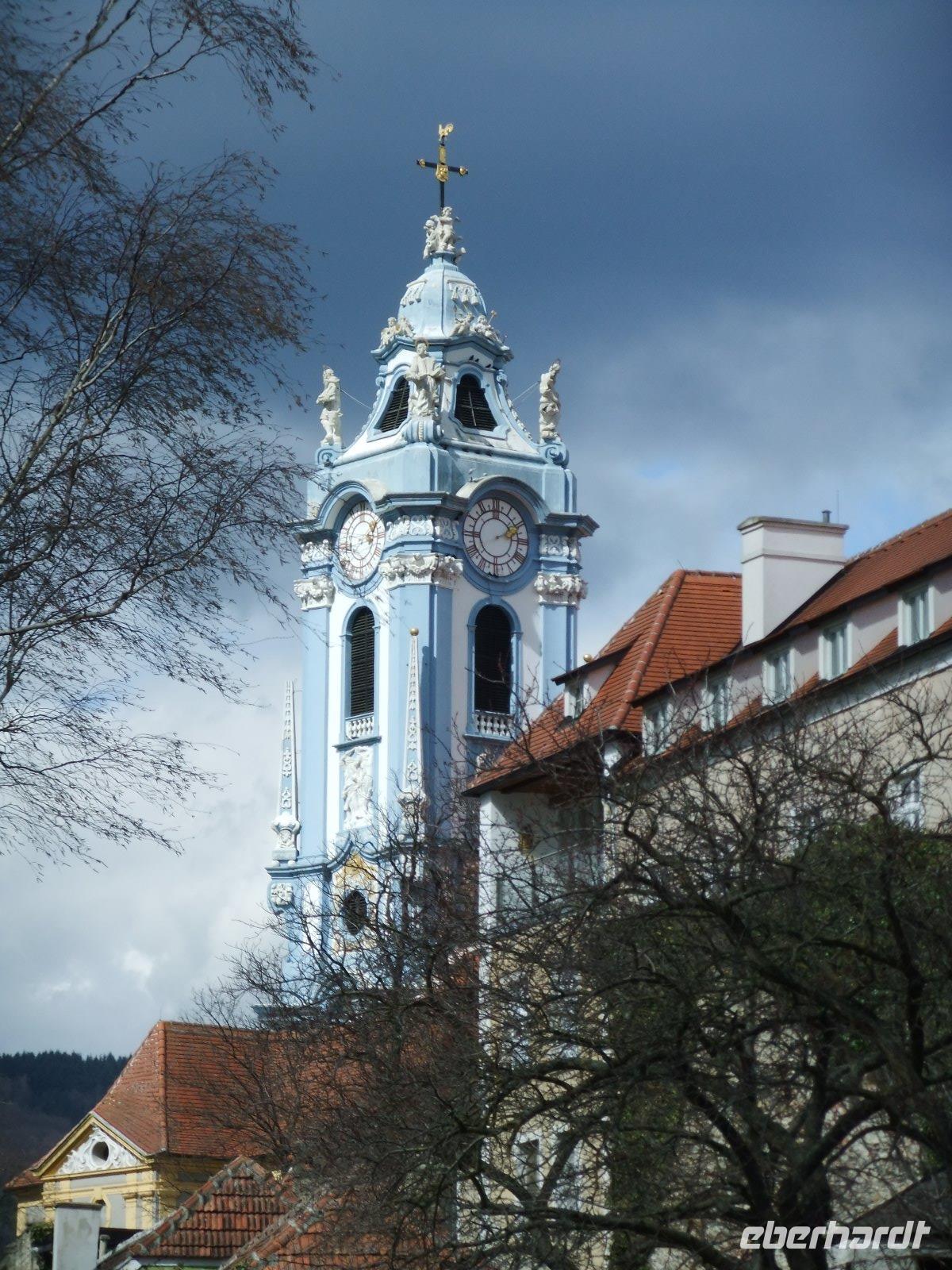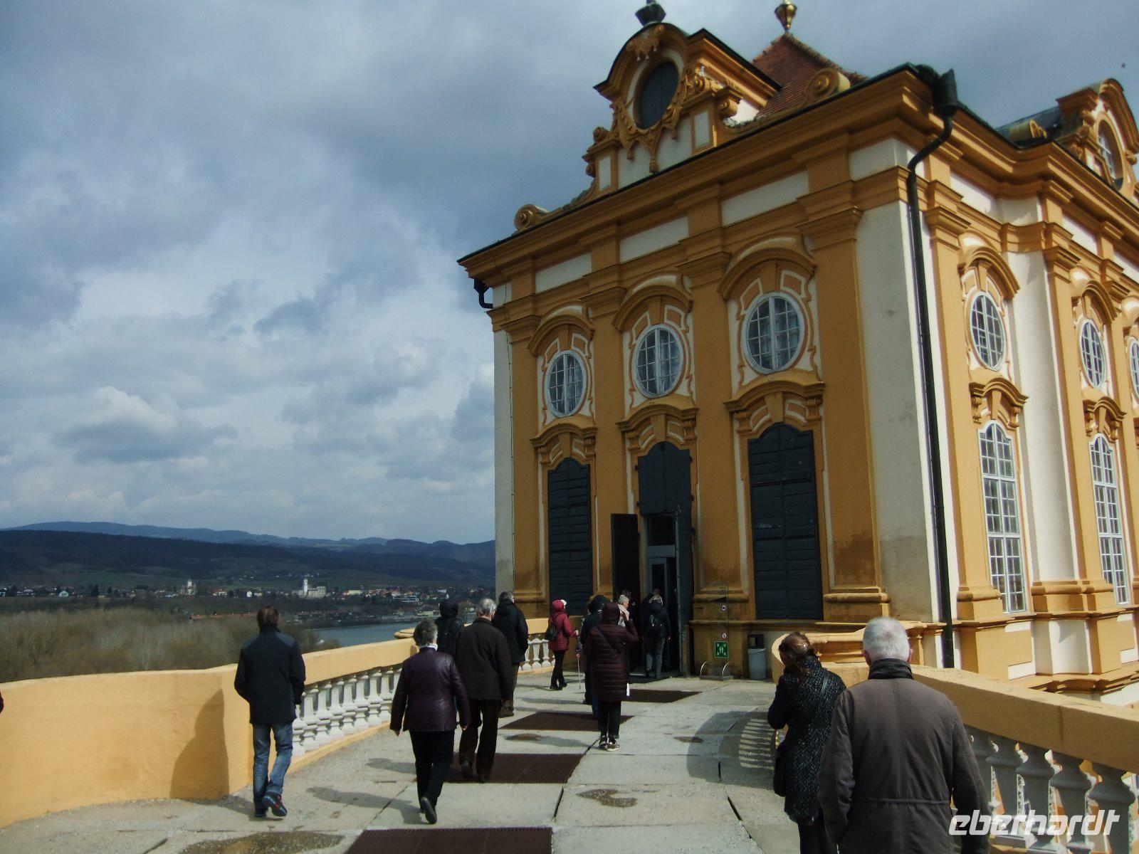 Bei schönstem Frühlingswetter ist heute die Wachau unser Ziel. Wir fahren über den „Hals" ins Triestingtal, durch das Wienerwald-Gebiet und durchs Mostviertel. Nach 90 Minuten erreichen wir die Wachau. Als romantische Uferlandschaft mit schroffen Felsen und sanften Weinhängen, bezaubernden Winzerhäusern und monumentalen Schlössern und Klöstern wird diese Region beschrieben. Bald sehen wir schon von weitem hoch über der Donau das bekannte Stift Melk, das als eine Meisterleistung barocker Baukunst gilt. Wir steigen vom Parkplatz die Stufen hinunter und gelangen zur Nordbastei. Hier ist zur Zeit die Ausstellung „Das Farbenstift" vom Stiftsgymnasium zu sehen. Die meisten fahren noch hinauf zur Aussichtsplattform. Dann ist für uns eine Stiftsführung bestellt. Maria Theresia sagte 1743. „Es reuete mich, so ich nit hier gweßn wer". Deshalb sind wir schon sehr gespannt. Zunächst geht es über die Kaiserstiege in den Kaisergang. Im modern gestalteten Stiftsmuseum erhalten wir Einblicke in die Geschichte des Stifts und in das Klosterleben. Wir bestaunen dabei u.a. das älteste Objekt, einen Tragaltar aus dem 11. Jahrhundert. Nun kommen wir in den Marmorsaal und auf die Altane. Hier bietet sich uns ein großartiger Ausblick auf die Donaulandschaft und die Westfassade der Stiftskirche. Anschließend besichtigen wir noch die bekannte Stiftsbibliothek. Die prunkvolle Stiftskirche ist dann der Abschluss und Höhepunkt unseres Rundgangs. Wir haben Glück und können hier am Mittagsgebet teilnehmen und somit auch dem Klang der großen Orgel lauschen.