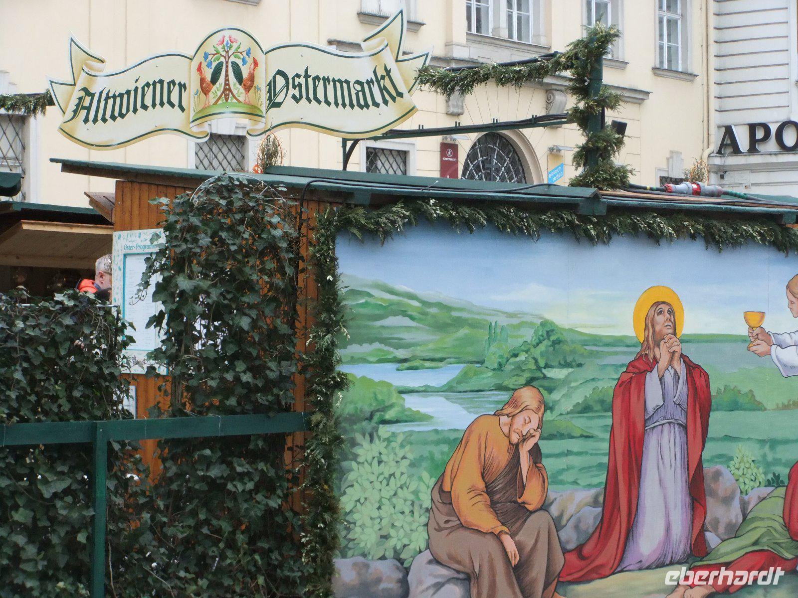 Nun freuen wir uns gleich auf zwei Wiener Ostermärkte: Nach einem kurzen Bummel über den Ostermarkt am Hof mit typischem Kunsthandwerk und österlichen Köstlichkeiten geht es zum Altwiener Ostermarkt auf die Freyung. Unzählige handbemalte Ostereier, hübsche Korbwaren, Zirbenkissen, Naturkosmetik, Schmuck und Keramik erwarten uns hier. Kulinarische reicht die Palette von Aufstrichen und Käse über Wein und Liköre bis hin zu Konditoreiwaren und Schokolade. Gegenüber präsentieren die Biobauern ihren kulinarischen Ostermarkt. Wir besuchen auch die benachbarte Schottenkirche. Hier ist heute das Heilige Grab wunderschön mit Blumen geschmückt.