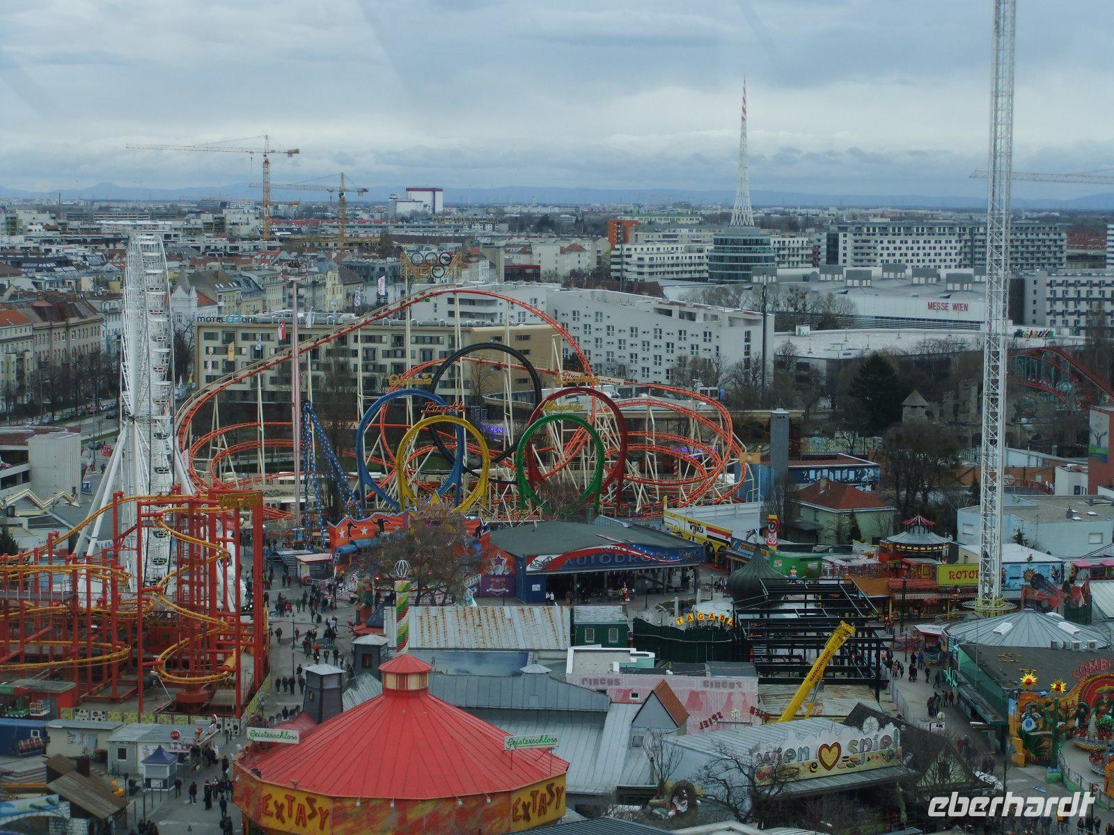 Unser nächstes Ziel ist der Wiener Prater. Hier erfüllen wir uns den Traum vieler Wienbesucher: Wir fahren mit dem historischen Riesenrad. Seit der Eröffnung 1897 ist es mit seiner Silhouette das Wahrzeichen der Stadt und das Symbol des Wiener Praters. Die Gondel bringt uns mit einer Geschwindigkeit von 0,75m/s auf eine Höhe von 64 Metern. Wir haben eine sehr gute Sicht und natürlich werden viele Fotos gemacht. Danach bleib noch Zeit für einen Bummel über den sogenannten „Wurstlprater". Turbulenten Achterbahnen, grusligen Geisterbahnen, riesige Kettenkarussells und andere spektakuläre Fahrgeschäfte reihen sich hier aneinander. Bei den meisten sagen wir uns: Zuschauen ja, Mitfahren nein.
