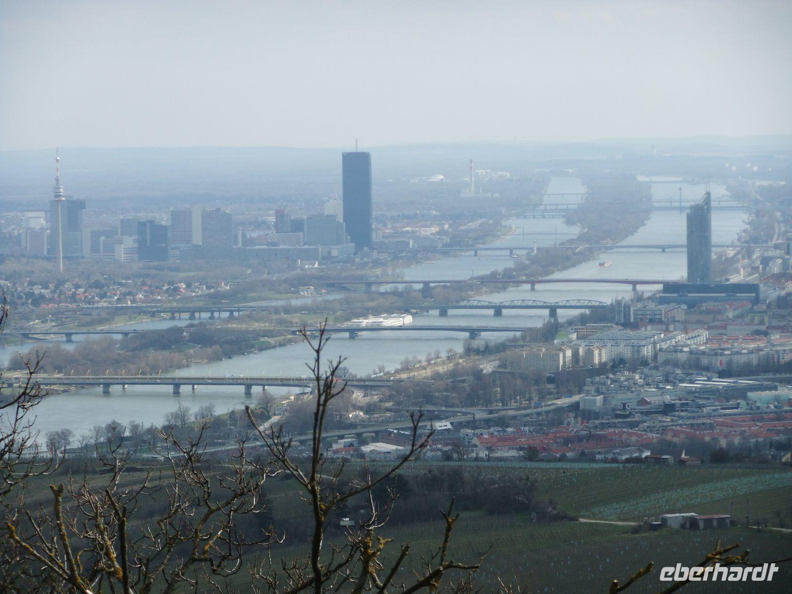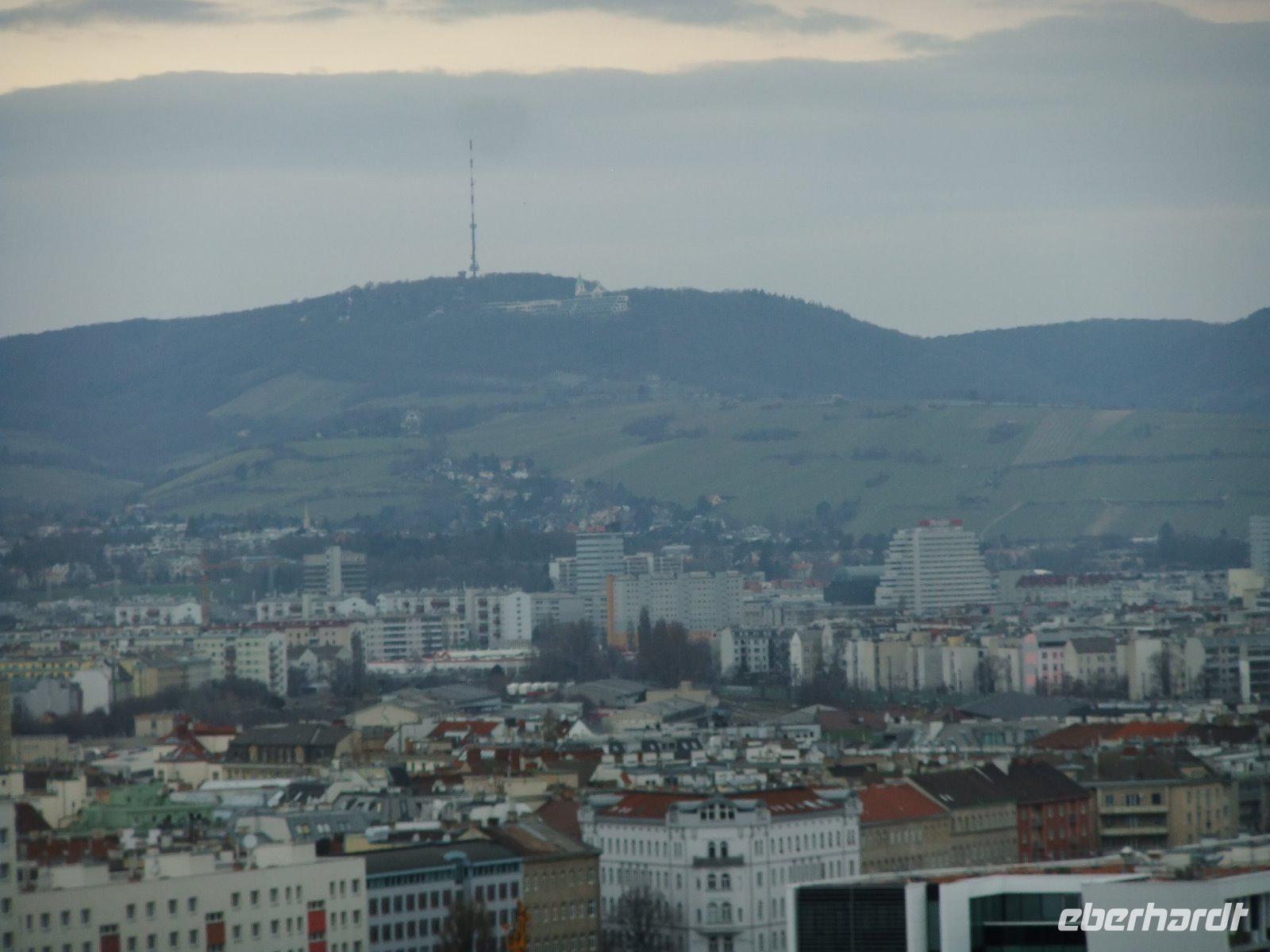 Nun bringt uns Falk auf den bekanntesten Aussichtsberg Wiens, den Kahlenberg. In der Nähe des weithin sichtbaren Stahlrohrmastes des ORF machen wir unsere Mittagspause. Nicht weit entfernt befindet sich die kleine Kirche St. Josef, von der es nur wenige Schritte bis zur Aussichtsterrasse sind. Wien und die Donau liegen uns zu Füßen.