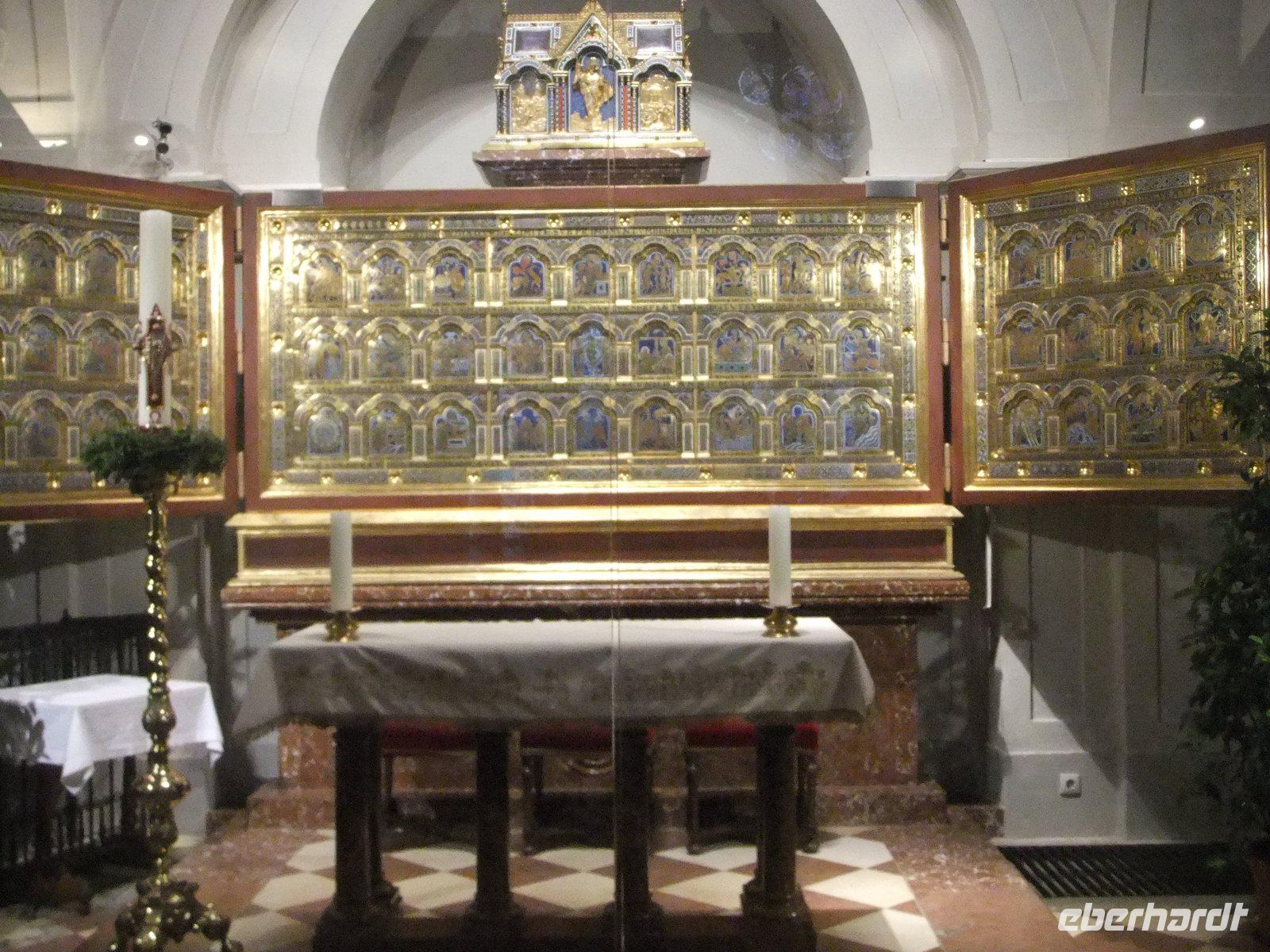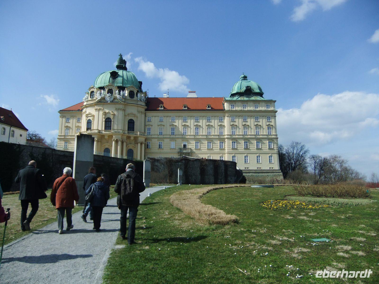 Eine der bedeutendsten und prächtigsten Sehenswürdigkeiten Österreichs steht heute auch noch auf unserem Programm: Stift Klosterneuburg. Bei unserer Ankunft dort gibt es wieder ein „Osterei", diesmal ist es Zwetschgenkuchen. Danach nehmen wir an einer sakralen Führung teil. Wir bestaunen dabei u.a. den siebenarmigen Leuchter, die Schädelreliquie des heiligen Leopold und den weltberühmten Verduner Altar. Bei der Rückfahrt nach Miesenbach sehen wir den Schneeberg zum ersten Mal in seiner ganzen Pracht.