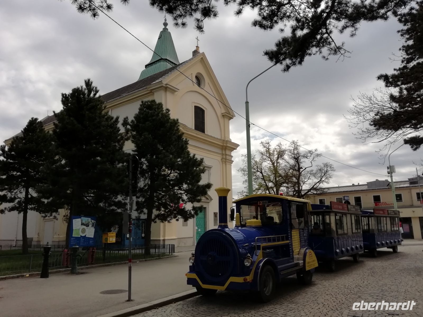 Nach unserer ersten Nacht im Hotel stärken wir uns am Frühstücksbuffet. Das Ausflugsprogramm verspricht Abwechslung rund um den Schneeberg. Wie auch an den kommenden Tagen begleitet uns Hotelchef Josef. Vorbei am Miesenbacher Fußballplatz, wo gerade die Maulwürfe „spielen“, fährt uns Roy über den Pass nach Puchberg. Hier haben wir zum ersten Mal den Blick auf den Schneeberg, den höchsten Berg Niederösterreichs. Auch an der Talstation der Schneebergbahn kommen wir vorbei. Über Ternitz erreichen wir Gloggnitz. Hier befindet sich die Schokoladenfabrik „Lindt & Sprüngli“. Wir treffen die bekannten Lindt-Schokohasen und nehmen so manch süße Köstlichkeit mit nach Hause. Bei der Weiterfahrt sehen wir das Schloss Gloggnitz, die Baustelle des Semmering-Basistunnels und die Talstation der Raxalpbahn. Dann fahren wir durch das wildromantische Höllental und weiter durch das Klostertal. In Gutenstein steuert Roy den Bus über enge Serpentinen hinauf zum Mariahilfberg, einen bedeutenden katholischen Wallfahrtsort. Nach der Mittagspause am Bus besichtigen wir die bekannte Wallfahrtskirche. Durch das Piestingtal erreichen wir unser nächstes Ziel: die Myrafälle. Diese Wasserfälle sind bereits seit über 125 Jahren touristisch erschlossen. Über verwinkelte Brücken und auf zahlreichen Stegen und Steigen kann man sie erkunden. Nun möchten wir wissen, wie die Weine der Thermenregion schmecken. Wir besuchen deshalb das Weingut der Familie Auer in Tattendorf. Wir erfahren u.a., dass die Familie ihre Weingärten nach biologischen Aspekten bearbeitet und etwa 25 Hektar Rebfläche bewirtschaftet. Der Tattendorfer Schwemmlandboden sowie das milde Klima in der Region (hier blüht schon der Flieder) bilden dabei eine perfekte Grundlage für den Weinanbau. Wir verkosten einen Schaumwein, drei Weißweine und drei Rotweine. Dazu schmecken die leckeren Brotaufstriche der Winzerin. Dann geht es gutgelaunt zum Hotel zurück. Zum Karfreitag gibt es hier zum Abendessen natürlich Fisch. Allen Nichtfischessern schmeckt das Wiener Schnitzel. Da morgen Wien auf dem Programm steht, stellt uns Josef in Wort und Bild noch die wichtigsten Sehenswürdigkeiten der Donaumetropole vor. Damit endet ein abwechslungs- und erlebnisreicher Tag.