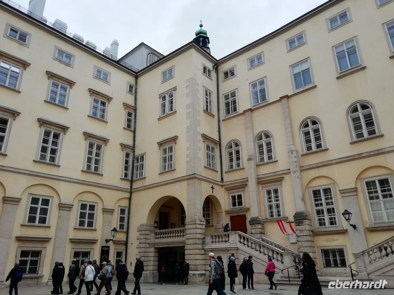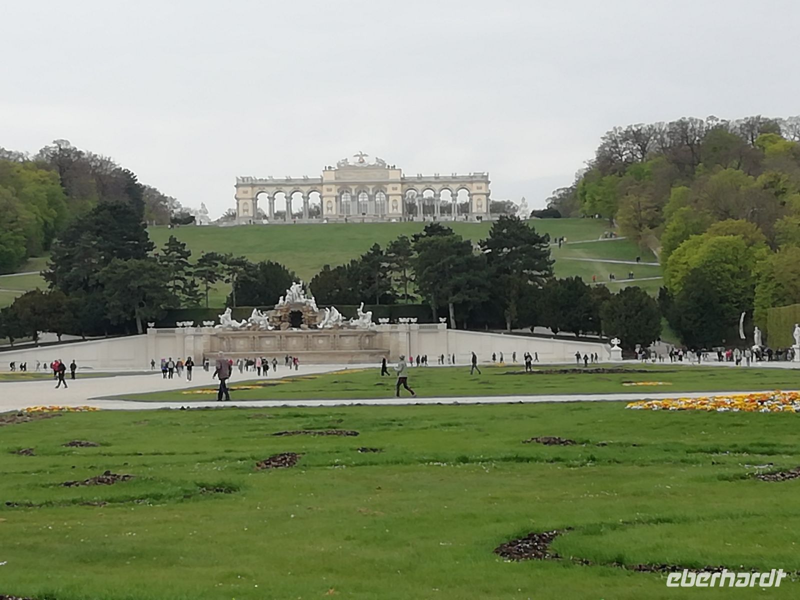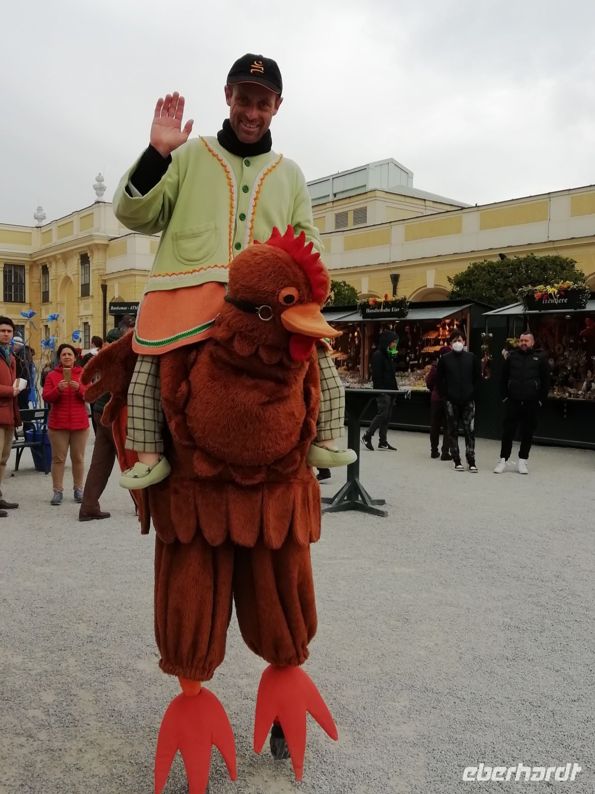 Auch heute erwartet uns wieder ein abwechslungsreiches Programm. Die eindrucksvolle Barockanlage von Schloss Schönbrunn ist unser erst Ziel. Vor dem Schloss lädt der Ostermarkt zum Bummeln, Schauen, Fotografieren und Kaufen ein. Rund 70 Aussteller präsentieren in ihren Hütten österliche Produkte in allen Variationen. Und wir treffen auch das Ostermarkt-Maskottchen: Huhn Roberta. Anschließend umrunden wir das Schloss und gelangen so in die Garten- und Parkanlage und weiter zum Triumphtor „Gloriette“, von wo man einen besonders schönen Blick hat. Kalter Wind „weht“ uns dann wieder zum Bus zurück. Mit diesem bringt uns Roy über den „Äußeren Gürtel“ und durch den bekannten Weinort Grinzing hinauf zum Kahlenberg. In der Nähe des weithin sichtbaren Stahlrohrmastes des ORF machen wir unsere Mittagspause. Danach laufen wir zur kleinen Kirche St. Josef und weiter bis zur Aussichtsterrasse. Wien und die Donau liegen uns zu Füßen. Unser nächstes und damit auch letztes Ausflugsziel während der Osterreise ist Stift Klosterneuburg. Es liegt ca.12 Kilometer nördlich von Wien unweit der Donau und verbindet 900jährige Tradition mit modernem Ambiente. Zur Entstehung gibt es folgende Legende: „Leopold III., österreichischer Markgraf, und Agnes, die Tochter des deutschen Kaisers Heinrich IV., heirateten 1106. Kurz nach der Hochzeit entführt der Wind den Brautschleier. Leopold gelobt, dort ein Kloster zu errichten, wo das kostbare Textil wieder gefunden wird. Erst neun Jahre später entdeckten seine Jagdhunde den Schleier auf einem Holunderstrauch. Er hat die Jahre in Wind und Wetter unversehrt überstanden.“ An der Fundstelle steht heute die Stiftskirche. Wir nehmen an einer sakralen Führung teil und bestaunen dabei weltweit einzigartige Kunstwerke wie den Verduner Altar und den siebenarmigen Leuchter. Am Abend serviert man uns im Hotel die beliebteste österreichische Vorspeise: Frittatensuppe. Danach können wir uns am Osterbuffet bedienen. Die Auswahl reicht von Schweinebraten und kleinen Schnitzeln bis hin zu Backhendln, Osterbraten und Beef Stroganoff. Süßer Abschluss: ein leckeres Eis. Anschließend macht Josef mit uns noch so manche „Blödelei“.