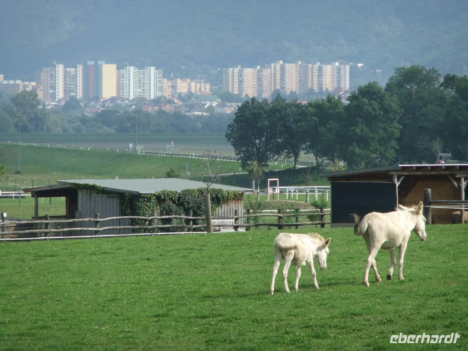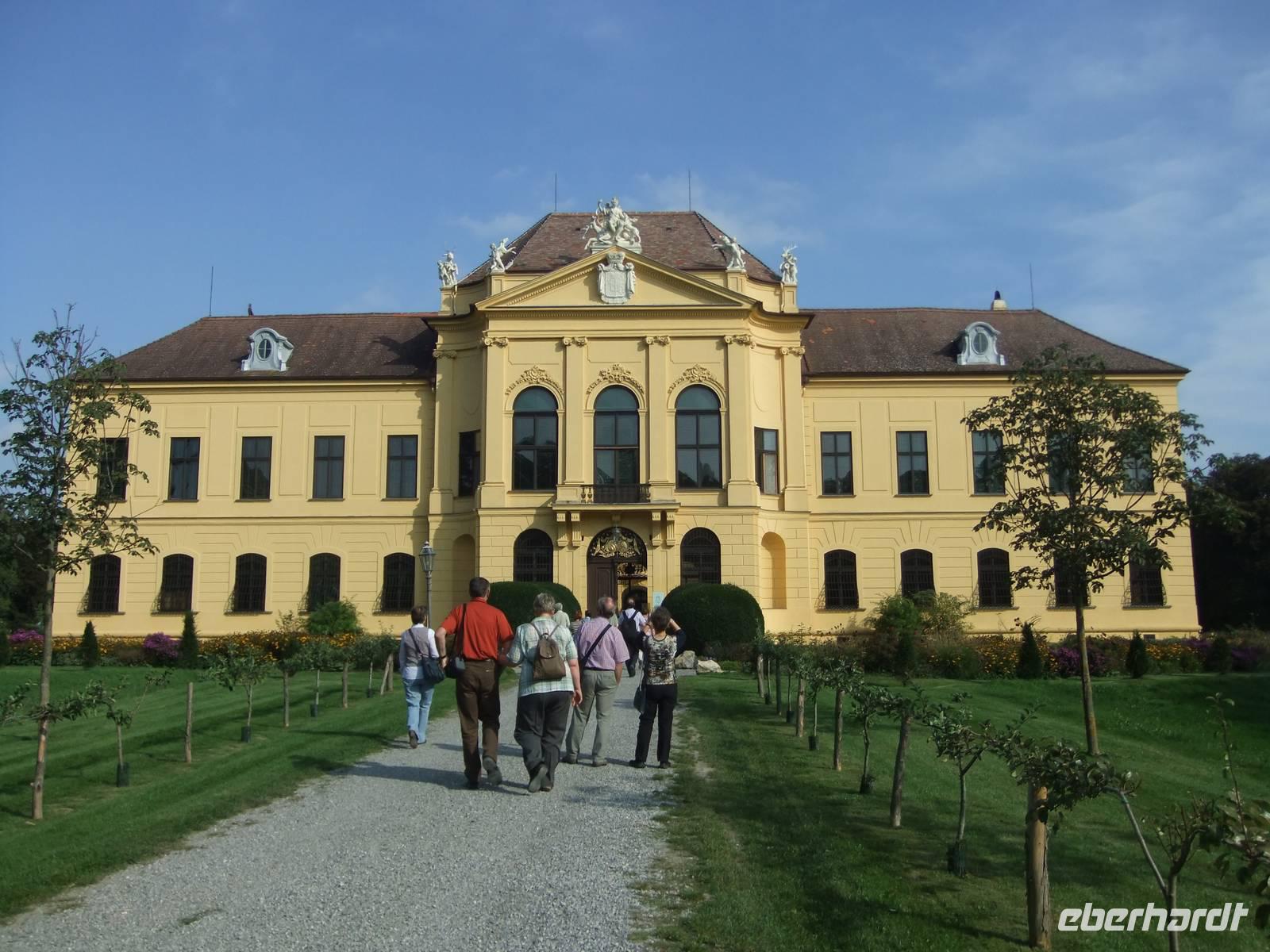 zum Schloss Eckartsau, das in den Donau-Auen steht.