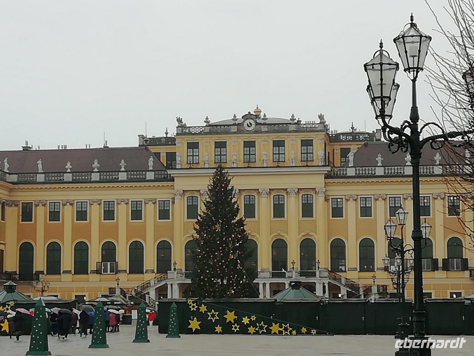 Der heutige Tag steht ganz im Zeichen von Wien. Nach einem guten Frühstück bringt uns Tilo mit dem Bus nach Schönbrunn. Hotelchef Josef begleitet uns und erzählt während der Fahrt schon so einiges zu dieser bekannten Wiener Sehenswürdigkeit. Zuerst besuchen wir den Kultur- und Weihnachtsmarkt vor dem Schloss. Um den Weihnachtsbaum reihen sich über 80 kleine Hütten, die Kunsthandwerk, Weihnachtsdekoration aus Glas, Holz, Keramik Papier und Zinn, aber auch nostalgisches Spielzeug und natürlich Kulinarisches bieten. Leider regnet es, deshalb besuchen einige die Kaiserliche Wagenburg im Schlosspark. Hier werden Kutschen und exquisite Kleidungsstücke der Habsburger gezeigt. Dann treffen wir uns zu einer Schlossführung. Wir besichtigen die Repräsentationsräume und Privatgemächer des Kaiserpaares Franz Joseph und Elisabeth sowie die kostbaren Räume des 18. Jahrhunderts aus der Zeit Maria Theresias.