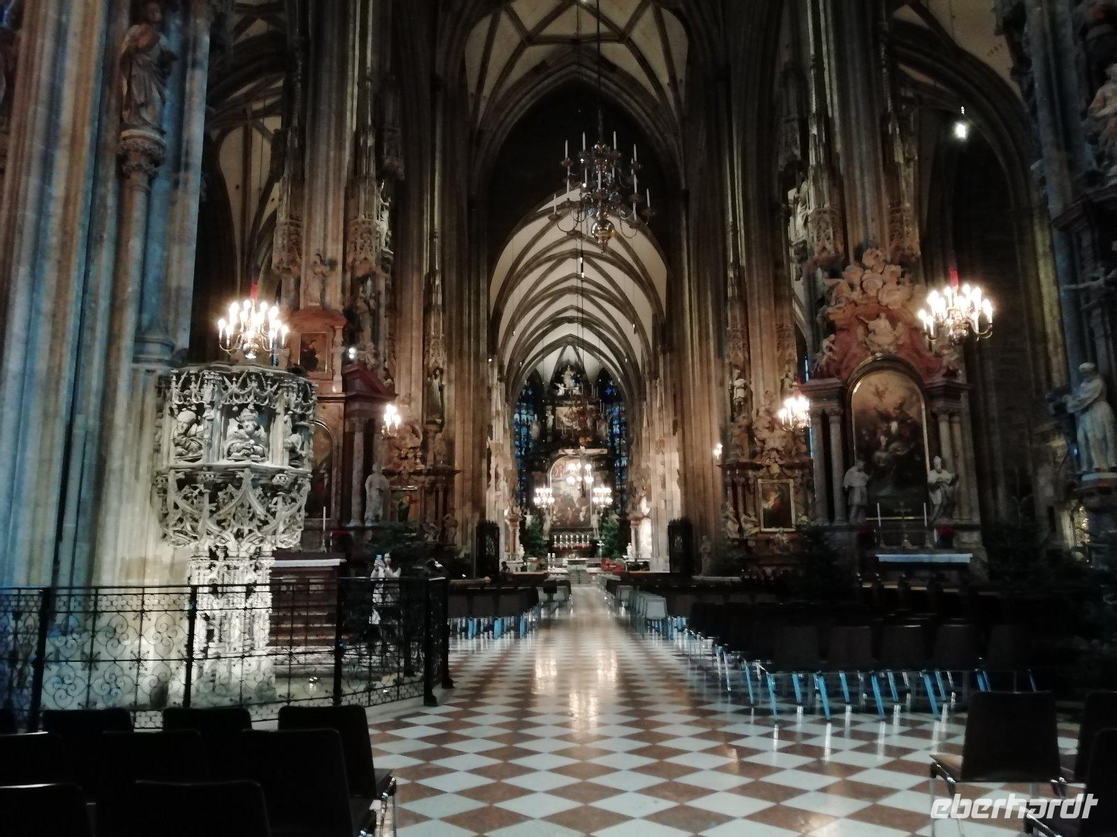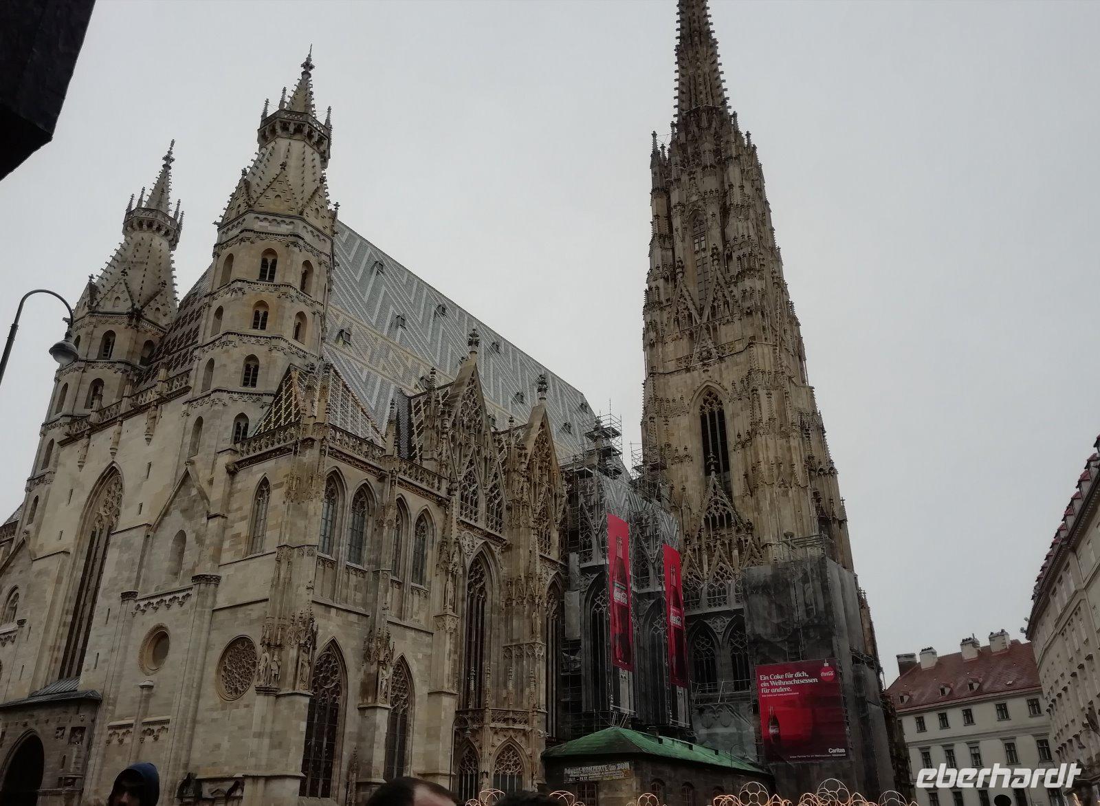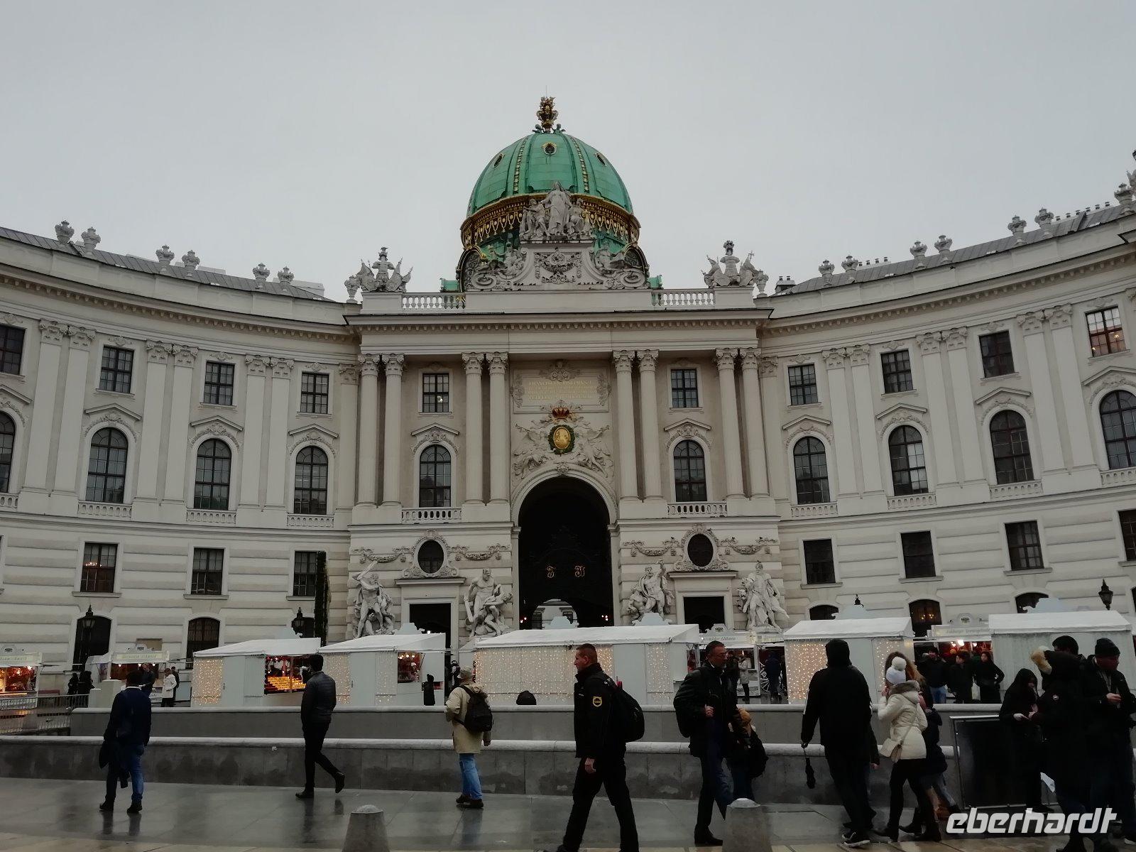 Am Schwedenplatz verlassen wir den Bus. Es regnet nicht mehr und so gehen wir zu Fuß zum Stephansdom, wo sich der „Weihnachtsmarkt im Herzen" präsentiert. Hochwertige regionale Spezialitäten und Kunsthandwerk aus der Region werden hier angeboten. Einige Gäste spazieren mit Josef noch über den Graben zur Hofburg. Andere besuchen die Kaisergruft oder bummeln über die Kärntner Straße.
