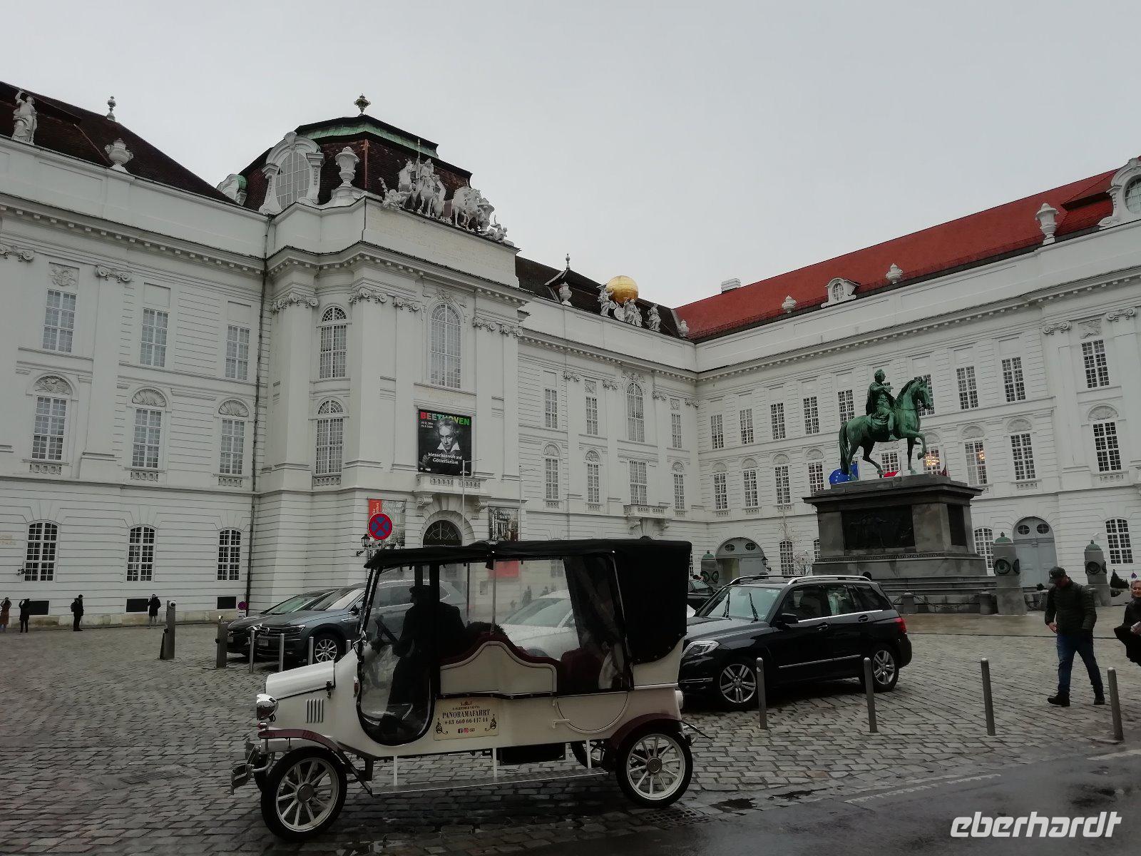 Bei der anschließenden Fahrt ins Zentrum von Wien kommen wir vorbei am früheren Wohnhaus von Hans Moser, am Naschmarkt, an der Secession und an der Karlskirche. Dann biegen wir auf die Ringstraße ein. Hier sehen wir u.a. die Wiener Staatsoper, die Neue Hofburg, das Parlament und das Burgtheater.