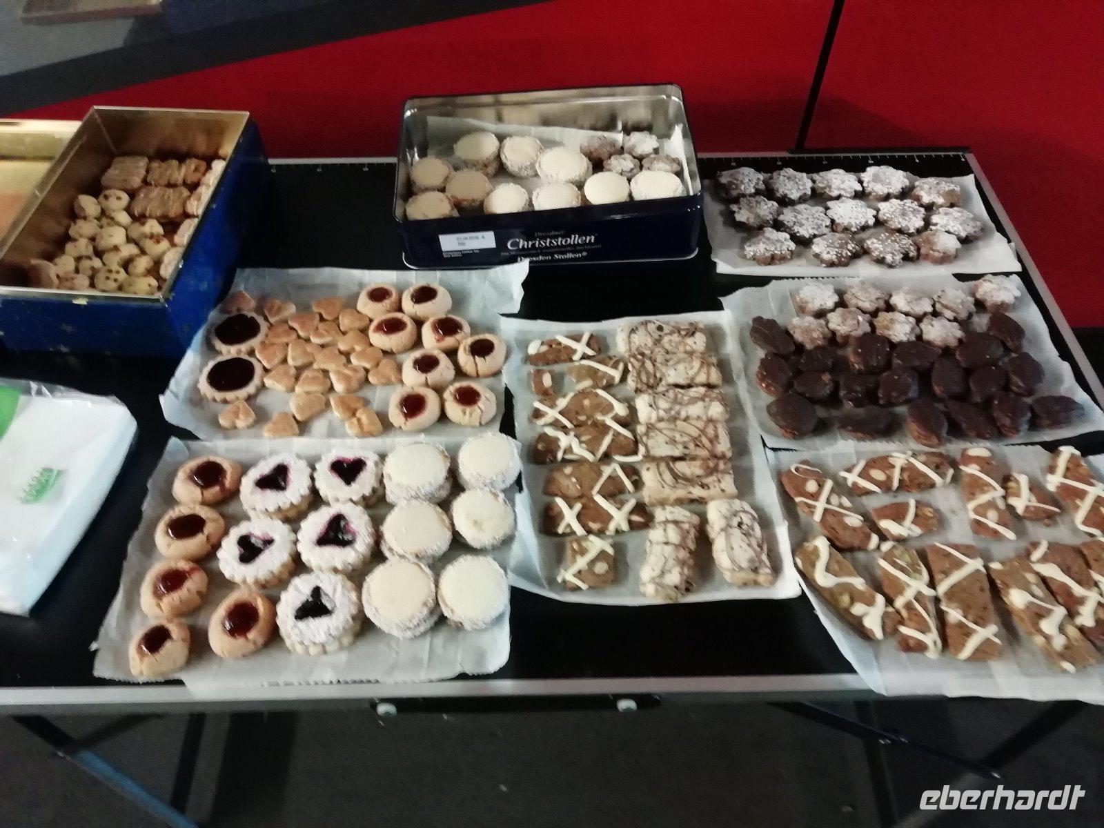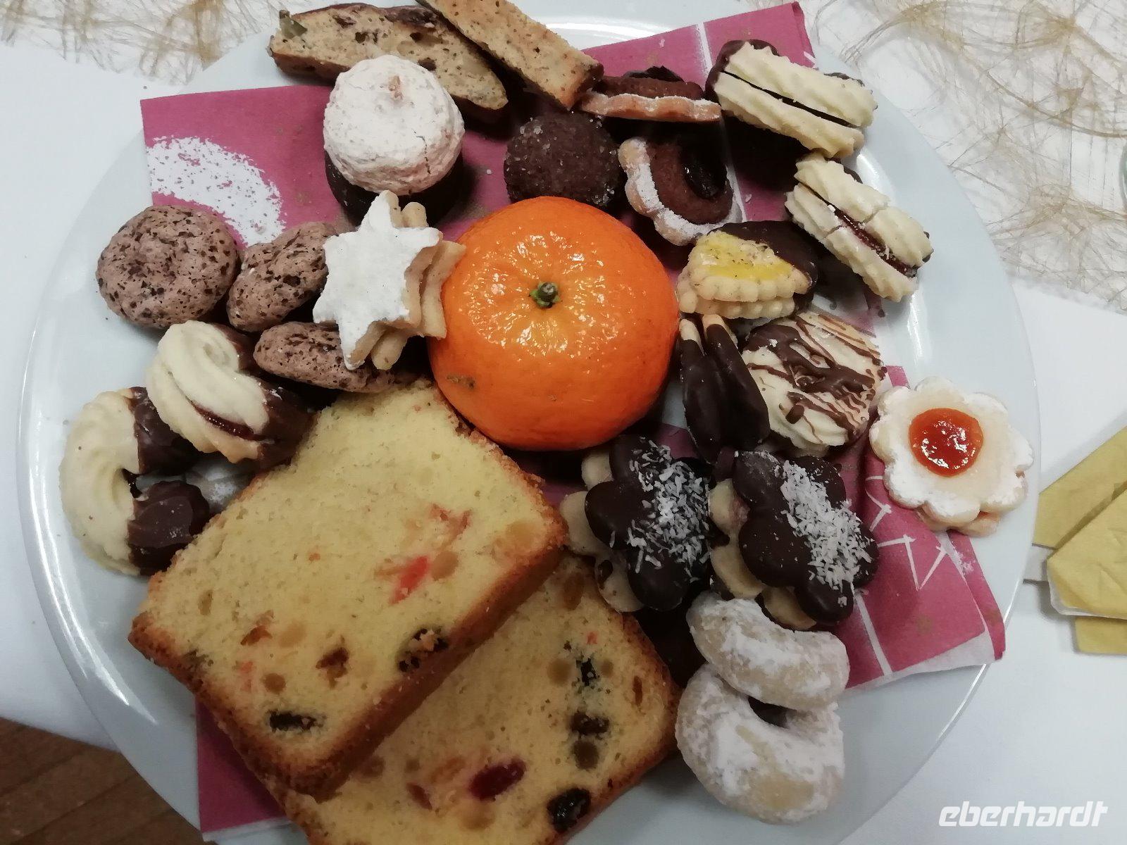 Nach der Führung treffen wir uns zur Kaffeepause wieder am Bus. Unser Reisegast Herr Hänsch hat von Zuhause für alle Gäste selbstgebackene Plätzchen mitgebracht. Die Auswahl umfasst Spezialitäten aus 10 Ländern. So lassen wir uns u.a. Baseler Brunsli, Bruner Kager, Dänische Pfeffernüsse, Wiener Herzoginnen-Plätzchen, Mantecados aus Spanien und sogar Spezialitäten aus Südamerika und den USA schmecken. Wir sagen „Dankeschön"!