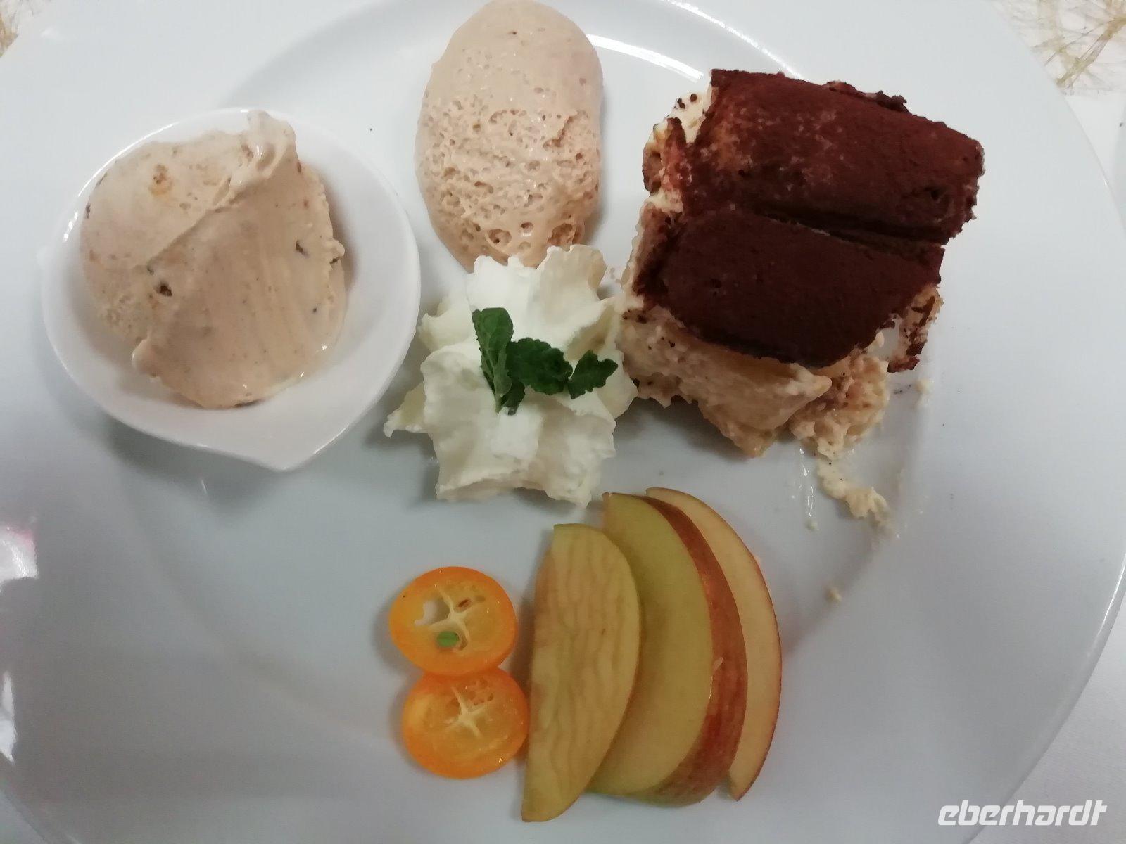 Auf der Rückfahrt zum Hotel macht uns Josef neugierig auf die Spezialität des Hauses: gebackenes Eis. Das wollen wir natürlich probieren, aber auch Malakofftorte, Gauermanntorte und Cremeschnitte sind nicht zu verachten.