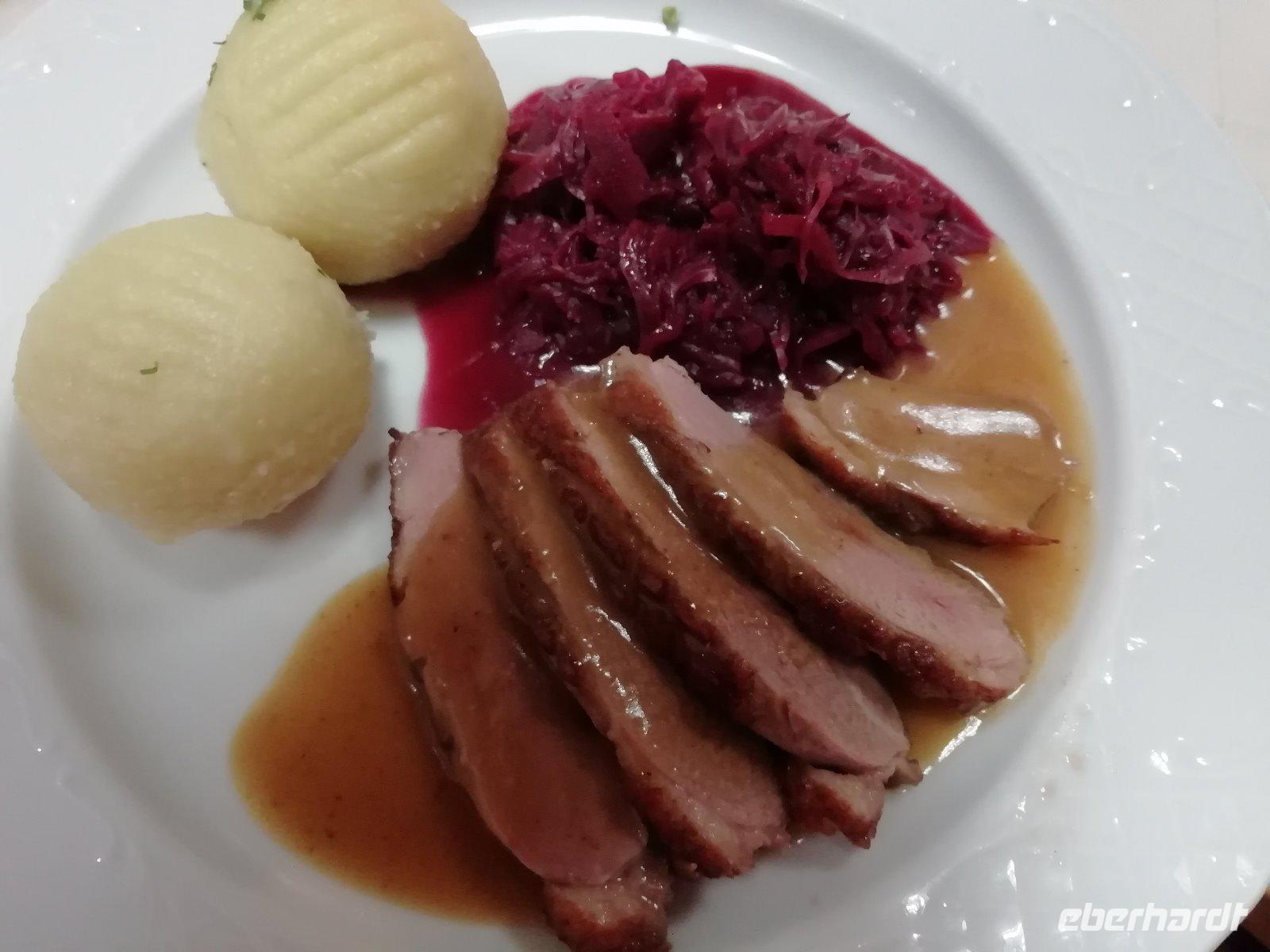 Am Abend erwartet uns im Hotel wieder ein Festessen. In Österreich ist es Brauch, am 1. Weihnachtsfeiertag Geflügel zu servieren. So können auch wir uns heute u.a. auf knusprige Flugentenbrust freuen.