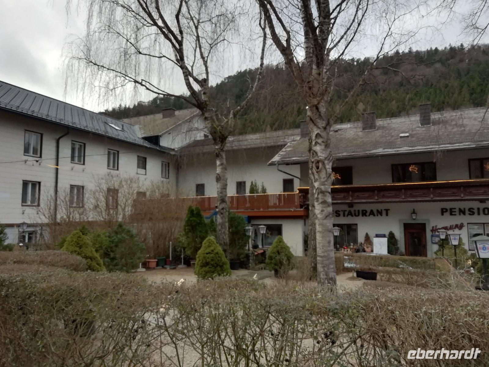 Die Mittagszeit verbringen wir in Miesenbach. Die meisten Gäste suchen sich im Hotel etwas aus der umfangreichen Speisekarte aus. Einige Gäste nutzen die Zeit aber auch für einen kleinen Spaziergang.