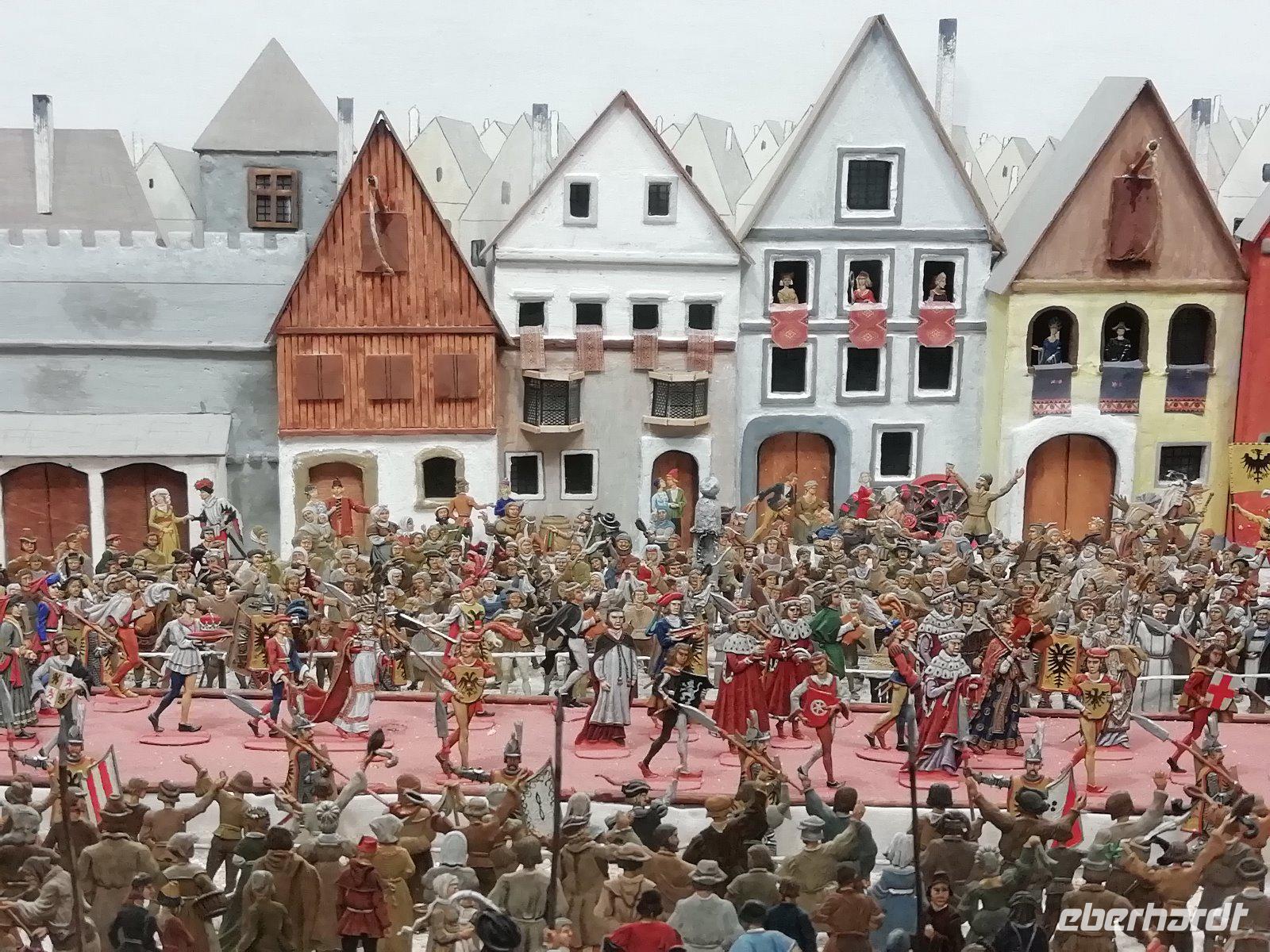 Die größte Zinnfigurenausstellungen der Welt besuchen wir am Nachmittag in Katzelsdorf. Auf 1200 Quadratmetern präsentieren sich hier 40.000 Zinnfiguren, die u.a. historische Ereignisse aus Geschichte und Kultur nachstellen. Museumschef Franz Rieder führt uns durch die Räumlichkeiten und kann zu den einzelnen Objekten Interessantes erzählen. Wir sind von der Vielfalt beeindruckt und können auch zuschauen, wie solche Figuren gefertigt werden. Im Obergeschoss gibt es zudem eine Sammlung historischer Brettspiele.