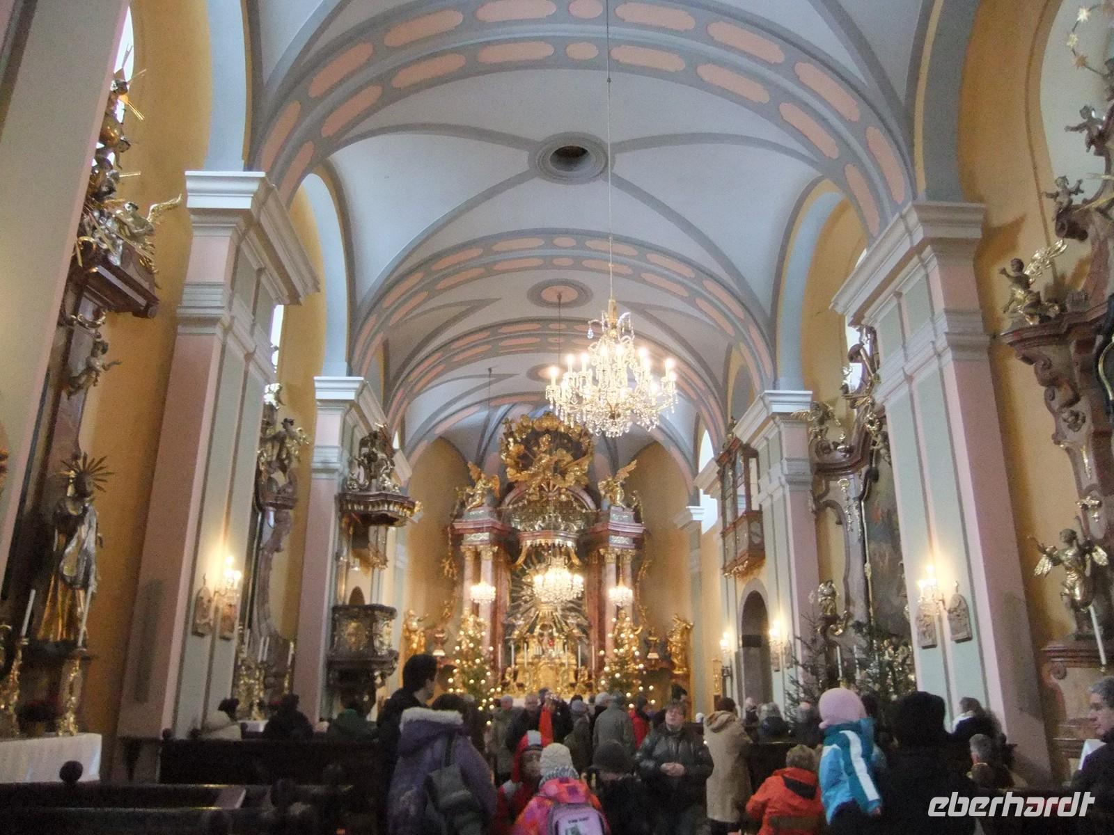 Mit Zug und Bus geht es dann wieder zurück. Die meisten Gäste nutzen noch die Möglichkeit zum Besuch der Bergkirche in Puchberg. Eine Bläsergruppe erfreut uns mit Melodien und Erzählungen. Im Hotel wurde inzwischen für uns die Weihnachtstafel geschmückt und ein festliches 4-Gang-Menü vorbereitet, das wir bei Kerzenschein genießen. Mit Gedichten, Erzählungen und Naturfilmen gestaltet Familie Hornung für uns einen besinnlichen Weihnachtsabend. Wie es in Österreich Tradition ist, singen wir gemeinsam das Lied "Stille Nacht". Danach hat das Eberhardt-Christkind natürlich auch Geschenke für die Gäste und Wirting Heidi versüßt uns den Abend mit Weihnachtsplätzchen.