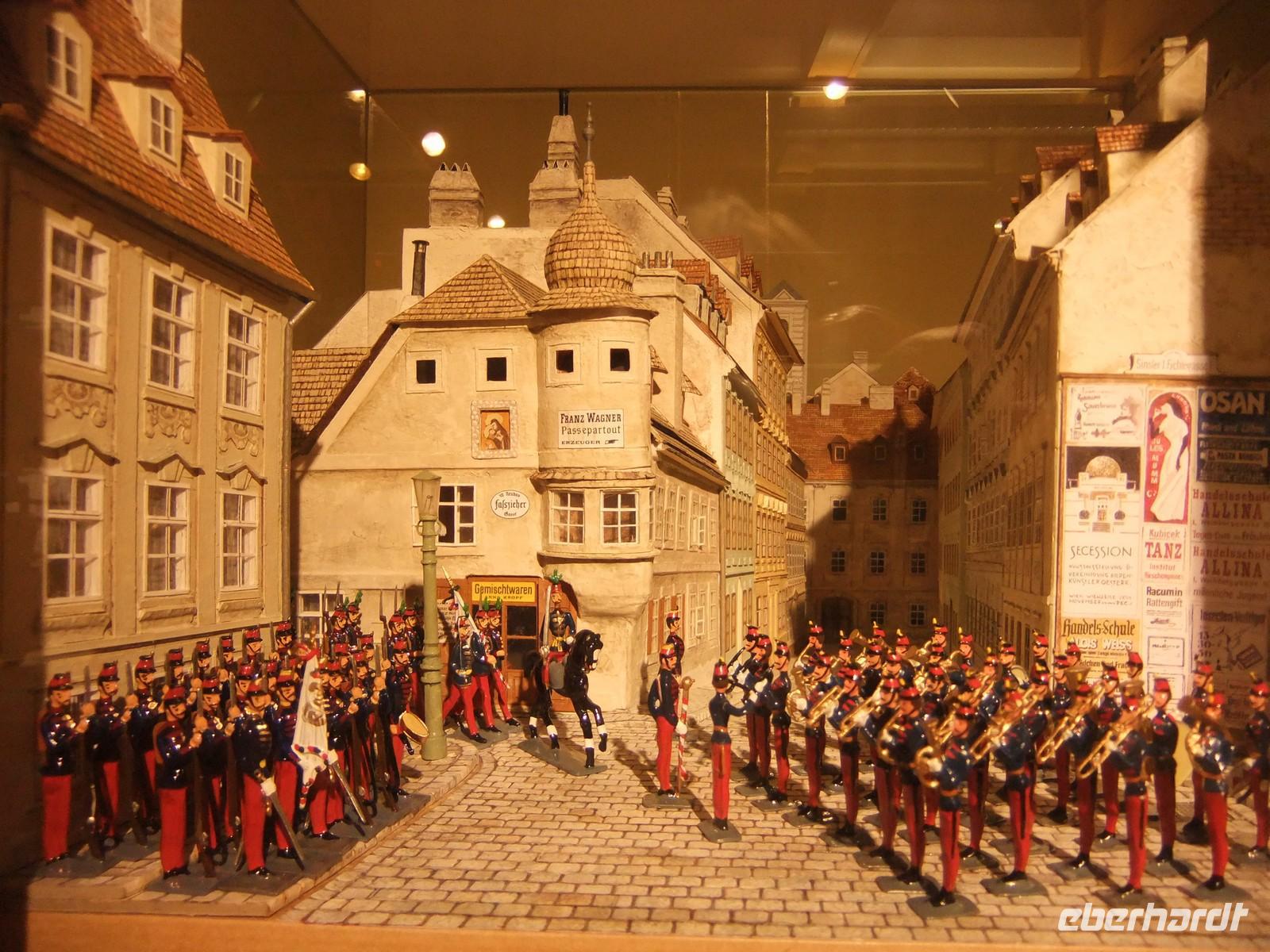 Gegen Mittag fahren wir wieder ins Hotel zurück. Die meisten Gäste lassen sich hier die Spezialität des Hauses schmecken: gebackenes Eis. Gut gestärkt unternehmen wir dann eine Ausflug zur Kirche des Ortes. Danach geht es weiter nach Katzelsdorf, um eine der größten Zinnfigurenausstellungen der Welt zu besuchen. Über 30.000 Zinnfiguren stellen hier historische Ereignissse aus Geschichte und Kultur nach. Wir sind von der Vielfalt beeindruckt und können auch zuschauen, wie solche Figuren gefertigt werden.