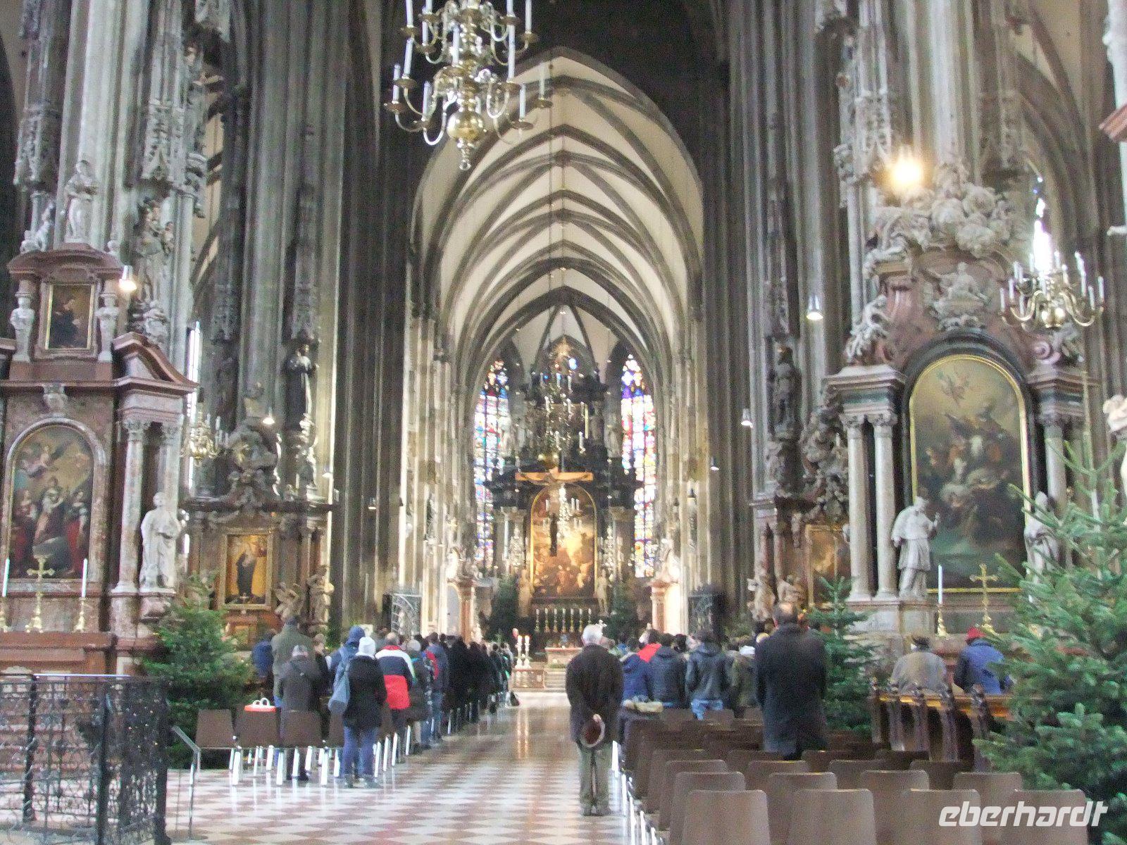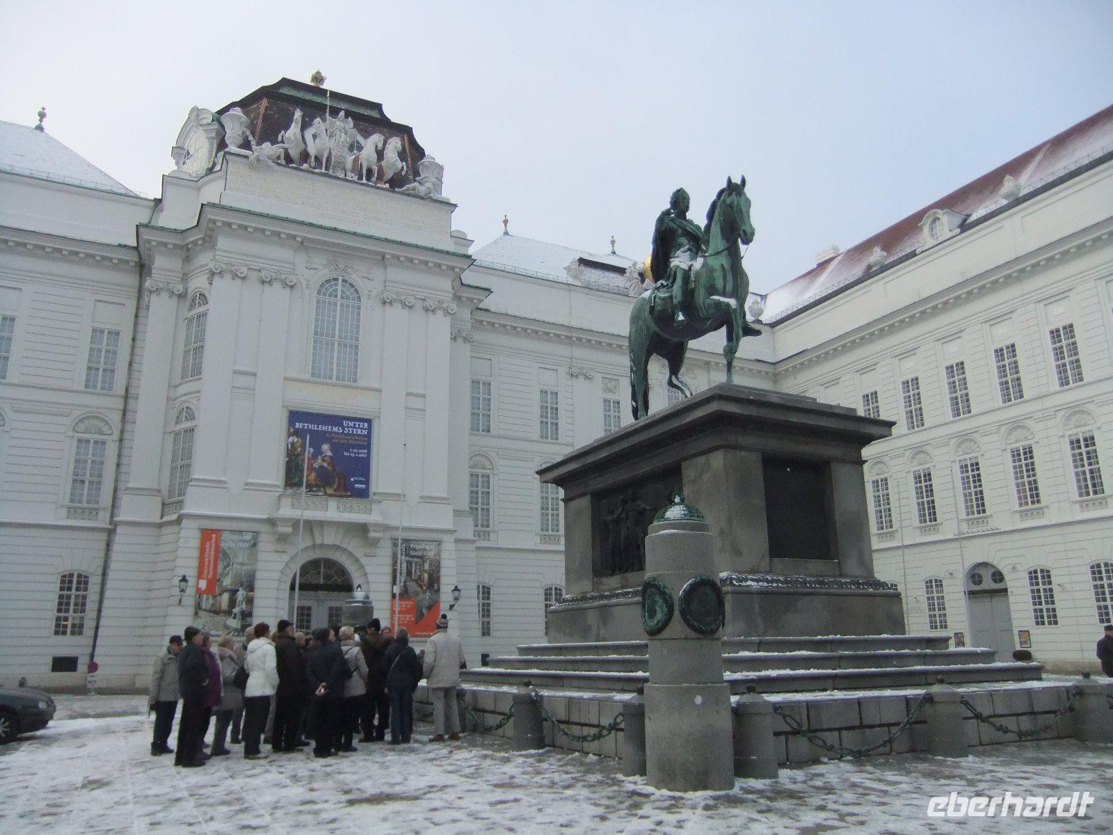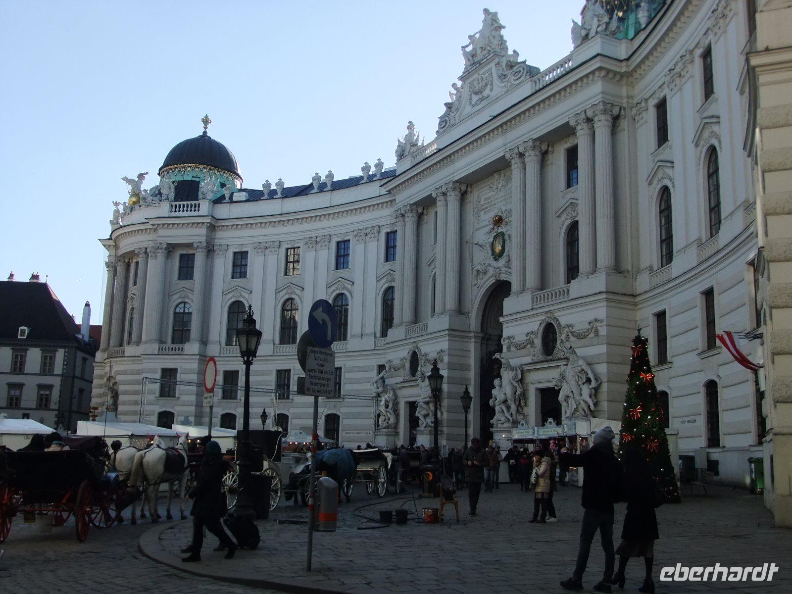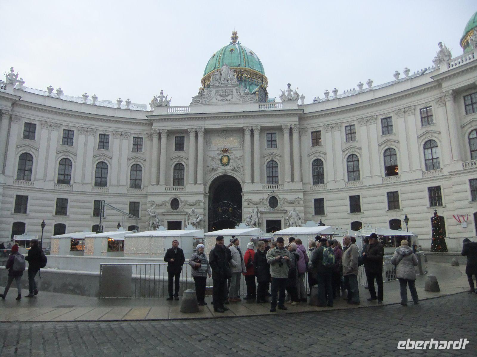 Der heutige Tag steht ganz im Zeichen von Wien. Josef begleitet uns dabei. Zuerst geht es durch das Miesenbach- und das Piestingtal. Die Wälder rechts und links der Straße sind wieder mit Raureif überzogen und bieten einen schönen Anblick. Nun fahren wir noch ein Stück auf der Südautobahn, dann sind wir auch schon in Wien. Wien zählt zu den schönsten Städten der Welt. Vorbei am ehemaliges Arsenal, dem heutigen Heeresgeschichtlichen Museum, und dem Schloss Belvedere gelangen wir zum Schwarzenbergplatz. Hier biegen wir auf die Ringstraße ein. Sie wurde nach dem Niederreißen der alten Stadtmauern und Festungswerke 1858 rund um die Innenstadt angelegt ist 6 Kilometer lang, zählt zu den attraktivsten Prachtstraßen der Welt und wird von zahlreichen monumentalen Bauten und schönen Parkanlagen gesäumt. Am Schwedenplatz verlassen wir den Bus. Zu Fuß geht es zum Stephansdom. Von hier aus spazieren die meisten Gäste mit Josef und mir durch die Altstadt. Wir bestaunen die Pestsäule am Graben, schauen in die Schaufenster der bekannten Konditorei Demel, überqueren den Michaelerplatz und erreichen schließlich die Hofburg. Nach einem Abstecher zum Heldenplatz und einem Blick in die Augustinerkirche spazieren wir vom Josefsplatz zur Albertina, dann vorbei am Hotel Sacher zur Kärntner Straße. Hier auf der Fußgängerzone mit eleganten Läden und Restaurants bleibt Zeit für individuelle Erkundungen. 12 Uhr treffen wir uns alle wieder am Stephansdom.