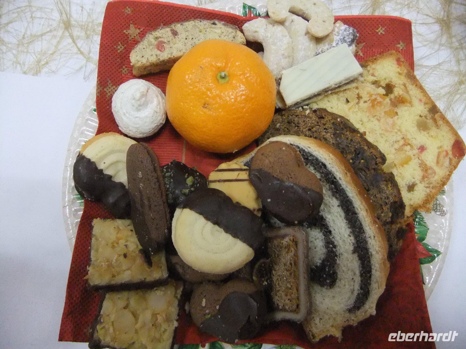 An späten Nachmittag besuchen die meisten Gäste die Kirche im benachbarten Puchberg. Eine Bläsergruppe stimmt uns hier auf den Heiligabend ein. Im Hotel wurde inzwischen für uns die Weihnachtstafel geschmückt. Die Speisekarte verspricht als Vorspeise Roastbeefröllchen, gefüllte Tomate und Kalbsleberpraline, dann eine Rindssuppe, als Hauptspeise Schweinefilet vom Schneeberglandschwein mit Eierschwammerlsauce sowie Schokokuchen, Schokomousse, Kirschragout und Zimteis zum Dessert. Wir genießen dieses festliche Menü bei Kerzenschein. Mit Gedichten, Erzählungen und Naturfilmen gestaltet Familie Hornung für uns einen besinnlichen Weihnachtsabend. Wie es in Österreich Tradition ist, singen wir gemeinsam das Lied "Stille Nacht". Danach versüßen Hornungs uns den Abend noch mit Weihnachtsplätzchen. Da die Eberhardt-Reisegäste das ganze Jahr über brav waren, kommt natürlich auch das Christkind mit seinem Gehilfen ins Hotel. Beide haben für alle Geschenke mitgebracht. In schöner Stimmung endet der Heiligabend.
