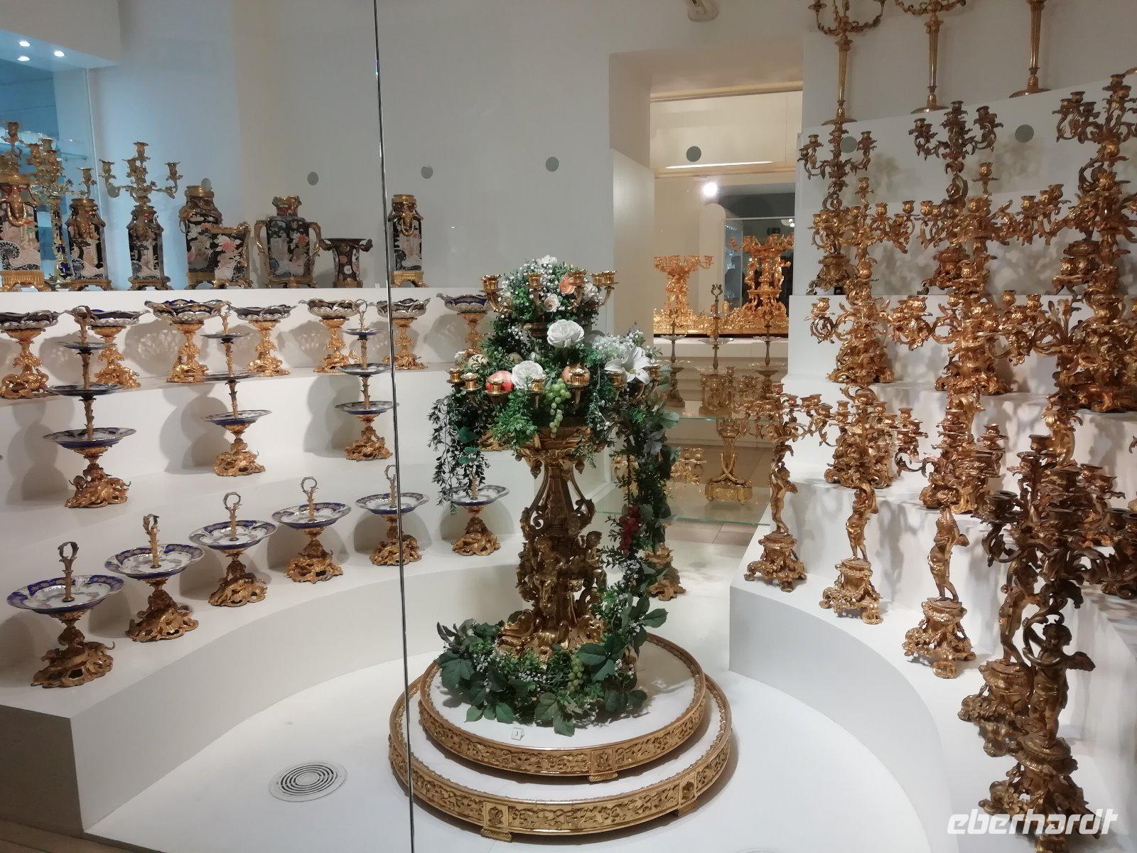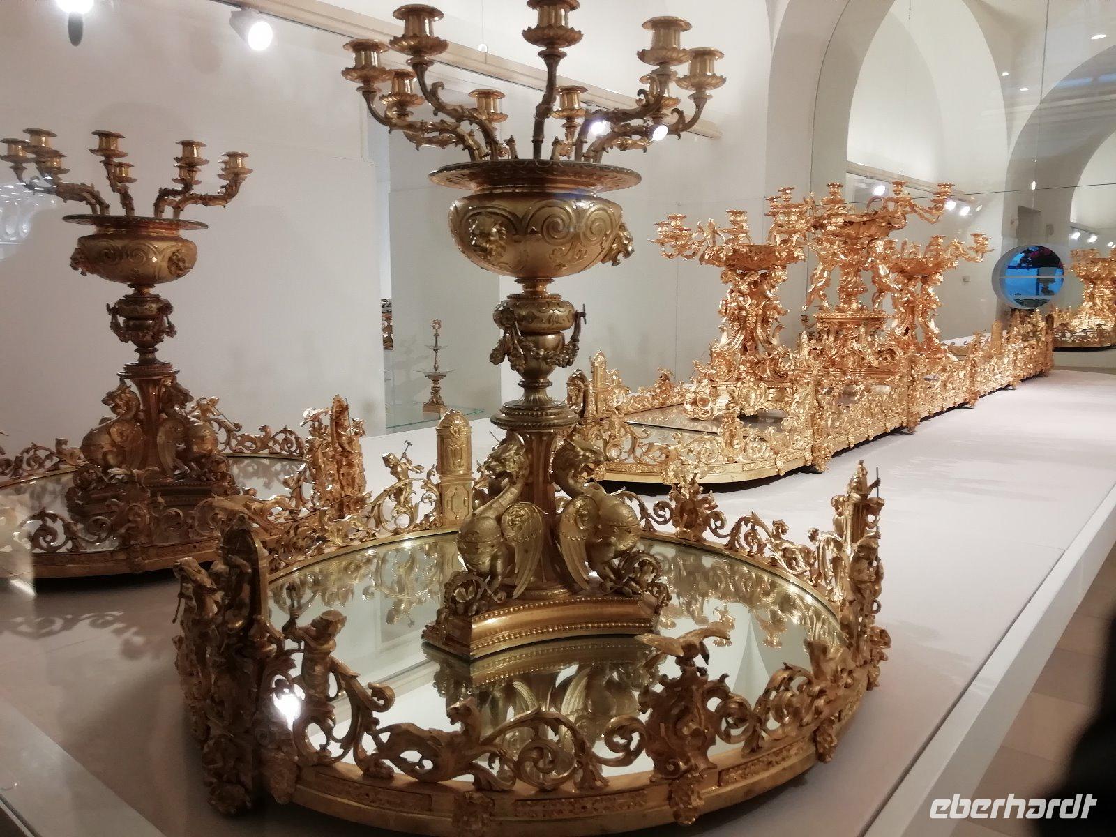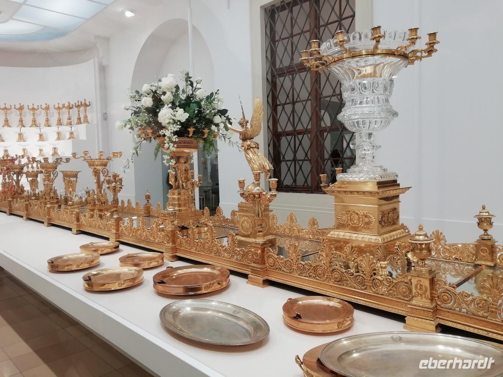 Am Maria-Theresia-Platz verlassen wir den Bus und gehen durch das Burgtor zum Heldenplatz und weiter zur Hofburg. Hier besuchen wir als erstes die Silberkammer. Nach dem Ende der Monarchie im Jahre 1918 wurden mehrere Abteilungen des nunmehr verwaisten Hofhaushaltes in der „Hof- und Tafelkammer" zusammengefasst und 5 Jahre später mit Objekten aus der Porzellansammlung sowie der Hofzuckerbäckerei, des Hofkellers, der Hofküche und der Hofwäschekammer öffentlich zugänglich gemacht. Wir können bei einem Rundgang die verschiedenen Facetten des ehemaligen Hofhaushaltes kennen lernen.
