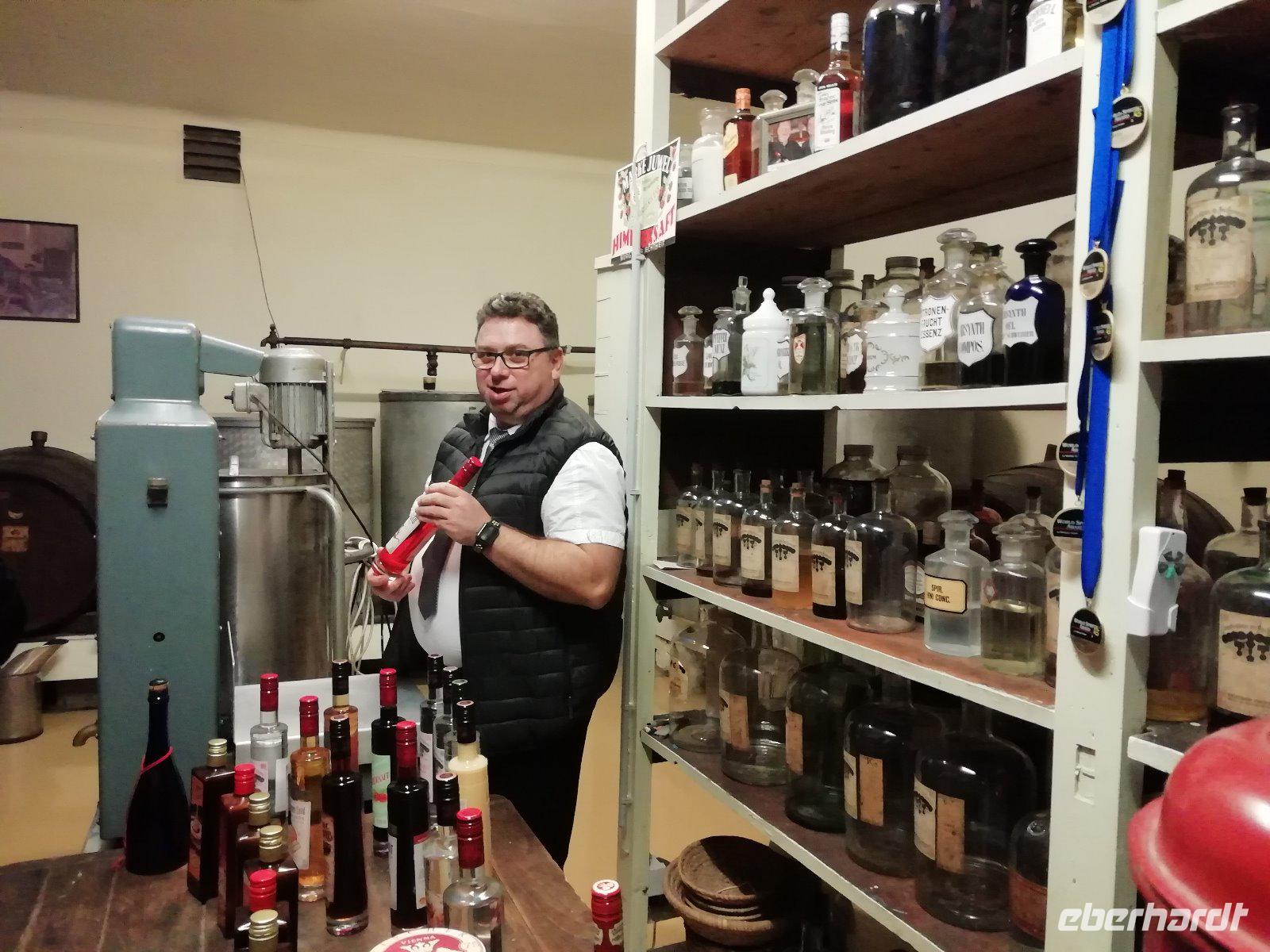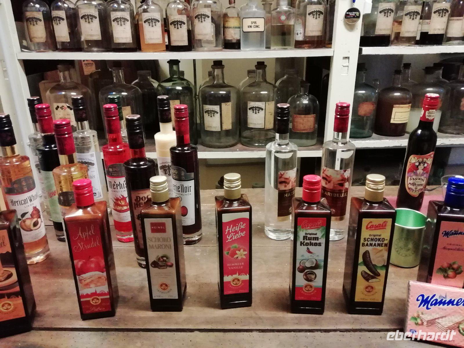 Das letzte Ziel an diesem Tag ist das Altwiener Schnapsmuseum. Unsere Führung beginnt im historischen Büro, wo noch Rollschreibtische und eine historische Registrierkasse stehen. Dann lernen wir die „Schnapsküche" kennen. Hier erfahren wir u.a., wie man Absinth richtig trinkt und wie man Schnaps von Brand unterscheidet. Nun können wir ausgiebig verkosten. Neben cremigen Likören mit Waffel-, Eier- oder Schokobananengeschmack zum Beispiel auch den Himbeergeist, das "Wiener Blut" - hergestellt aus scharfen Chilischoten - sowie den "Pater Noster Magenbitter".