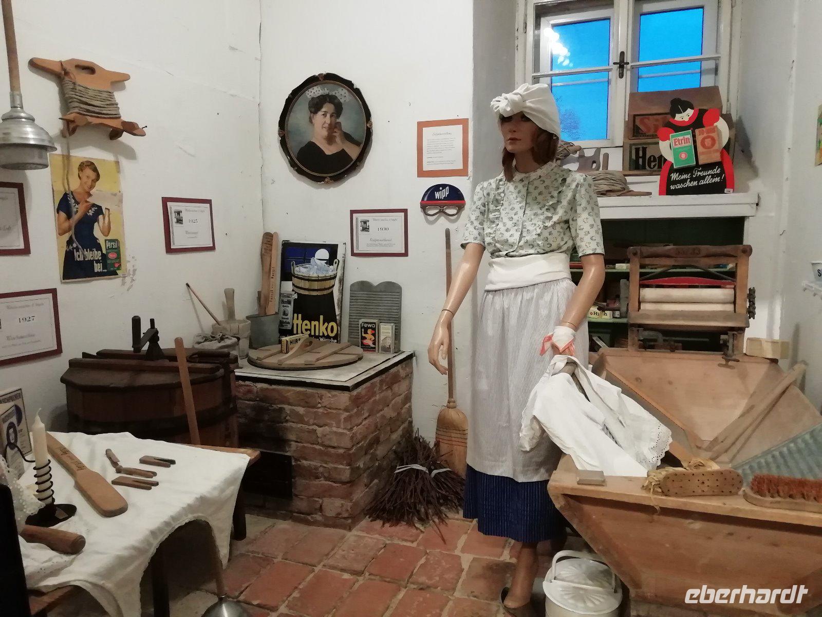 Am Nachmittag unternehmen wir einen Ausflug in die Vergangenheit und besuchen das Stadtmuseum Traiskirchen. Es befindet sich in den Räumen einer ehemaligen Kammgarnfabrik und bietet auf über 4.000 m² eine Vielfalt, die man so nicht erwartet. Die Palette reicht dabei von der Dampfmaschine über ein Klassenzimmer, die Weinstube, den „Raum der Natur", eine Radio- und Phonoschau, die Matador- und Spielzeug-Präsentation bis hin zur historischen Einkaufsstraße. Wir besuchen u.a. die Hutmacherin, den Frisör, den Tischler, den Photographen und die Wäscherei, ebenso eine Wohnung von 1930. Unter dem Motto „Polizei und Gendarmerie aus aller Welt" werden außerdem 2.952 Einzelstücke aus 97 Staaten der Erde präsentiert, darunter Kappen, Helme und zahlreiche Abzeichen. Bei der derzeitigen Sonderausstellung dreht sich alles ums Bügeln. Zu sehen sind Bügeleisen in den verschiedensten Formen, Mangelbretter, Glättkeulen und andere Raritäten. In diesem Museum könnte man wirklich einen ganzen Tag verbringen.