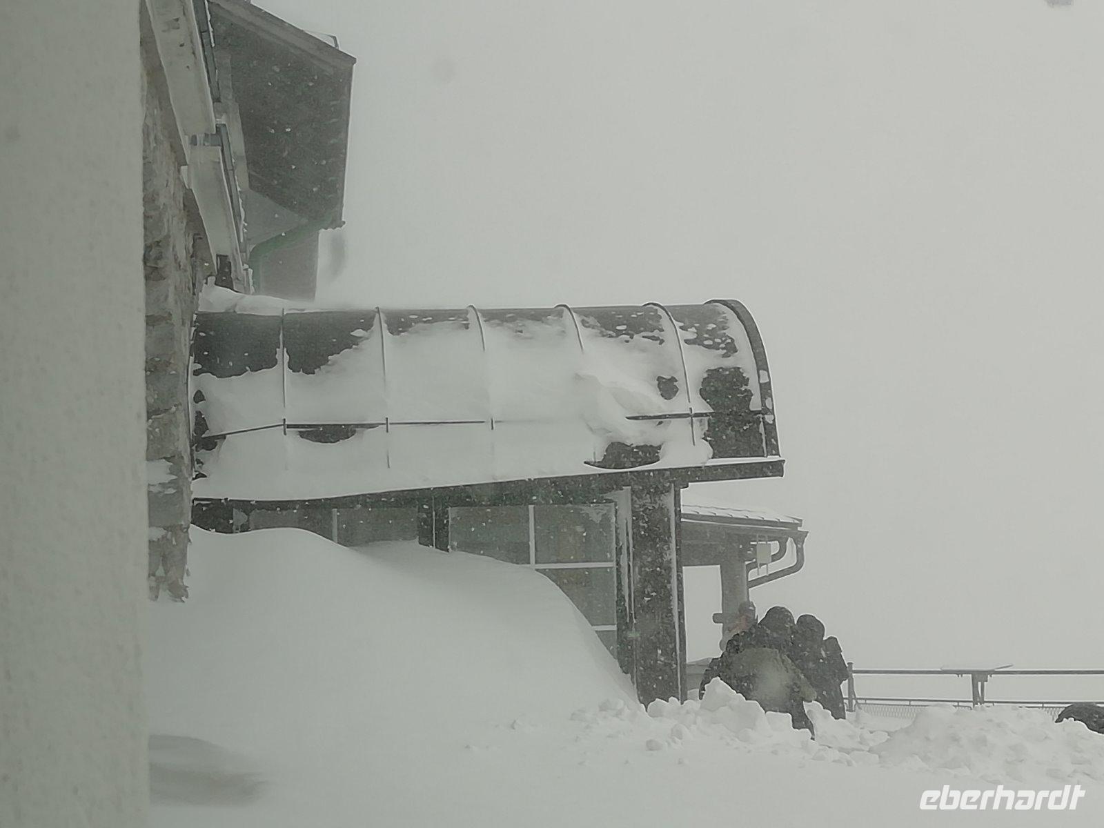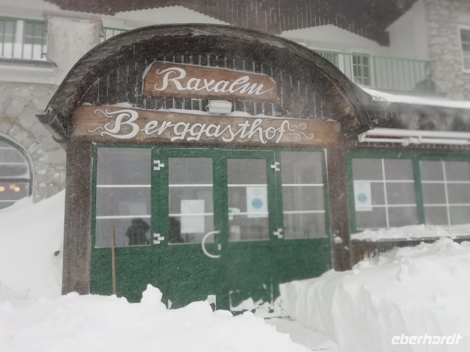 Schnee haben wir bei unserer Reise bis jetzt noch nicht gesehen, aber heute müsste es klappen. Wir wollen nämlich mit der ältesten Personenseilschwebebahn Österreichs auf die Raxalpe fahren. Dafür brauchen wir acht Minuten, legen dabei 2160 Meter zurück, wobei die größte Entfernung zwischen Gondel und Boden 60 Meter beträgt. In 1546 m Höhe empfängt uns tiefster Winter. Wir machen erst einmal Mittagspause im Berggasthof. Gulaschtopf, Hausspeckbrot, Raxler Würstel, Käsetoast oder Hirschkalbragout - dies und vieles mehr bietet die Speisekarte. Wir lassen es uns schmecken und schauen dabei durch die Fenster dem Schneetreiben zu. Für einige Schneefotos wagen wir uns dann doch noch vor die Tür. Am Bus wärmen wir uns mit Glühwein wieder auf.