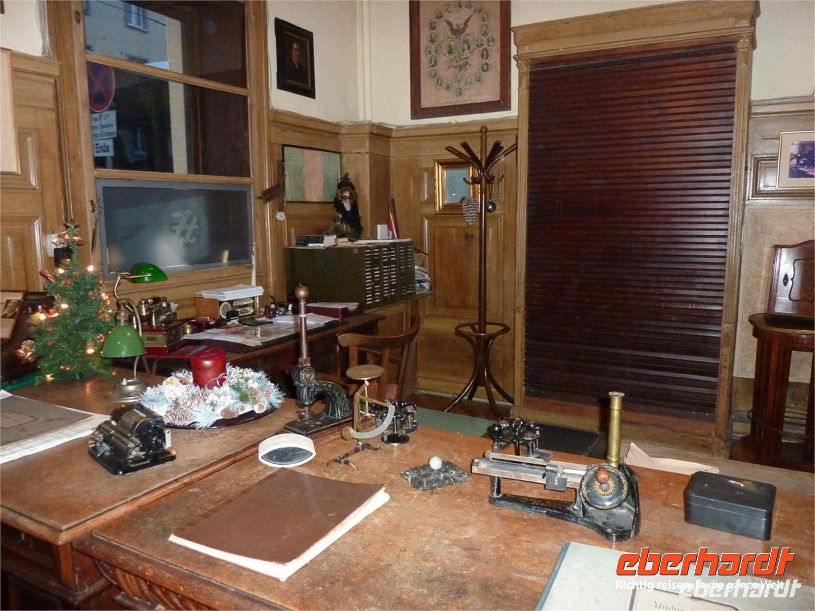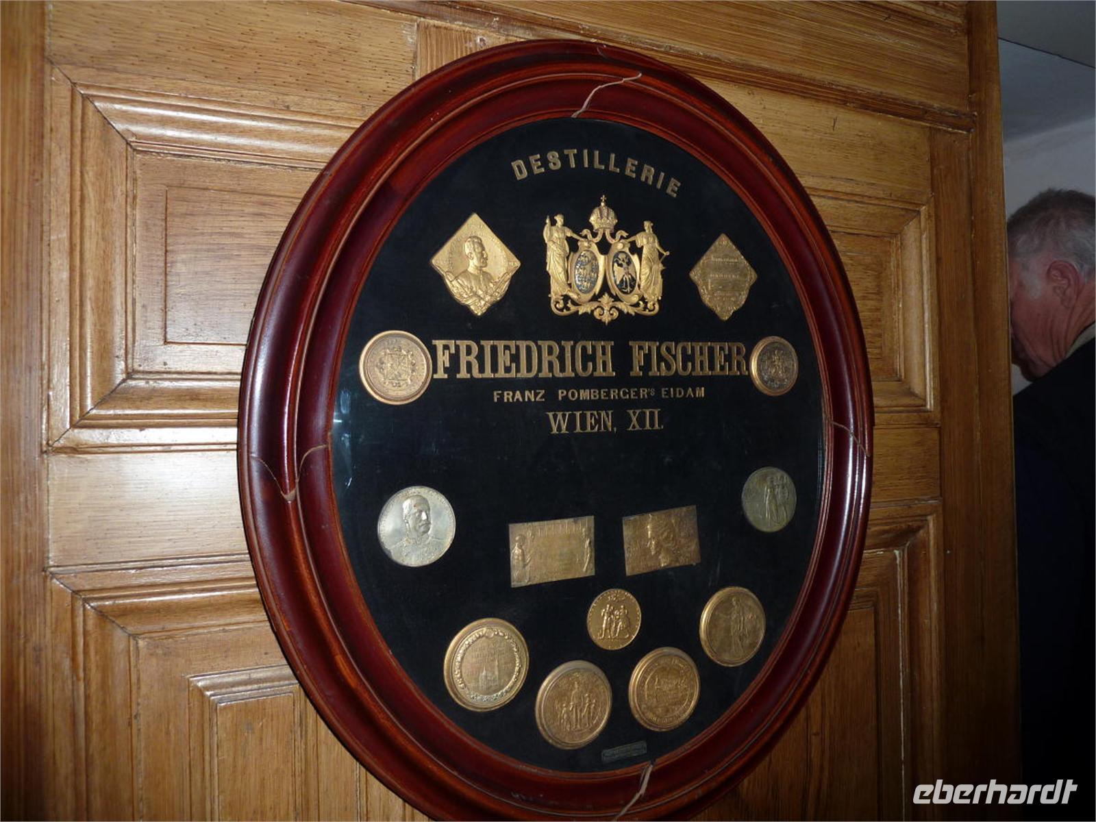 Um 16 Uhr kamen wir beim Altwiener Schnapsmuseum an und wurden bereits erwartet vom Senior in der Wilhelmstraße 19. Familie Fischer zeigte uns sein Büro mit Originaleinrichtung von 1902. 1845 wurde der Wiener Meisterbetrieb gegründet und erhielt den Staatspreis der K. u. K. Ministerien im Jahre 1904.
