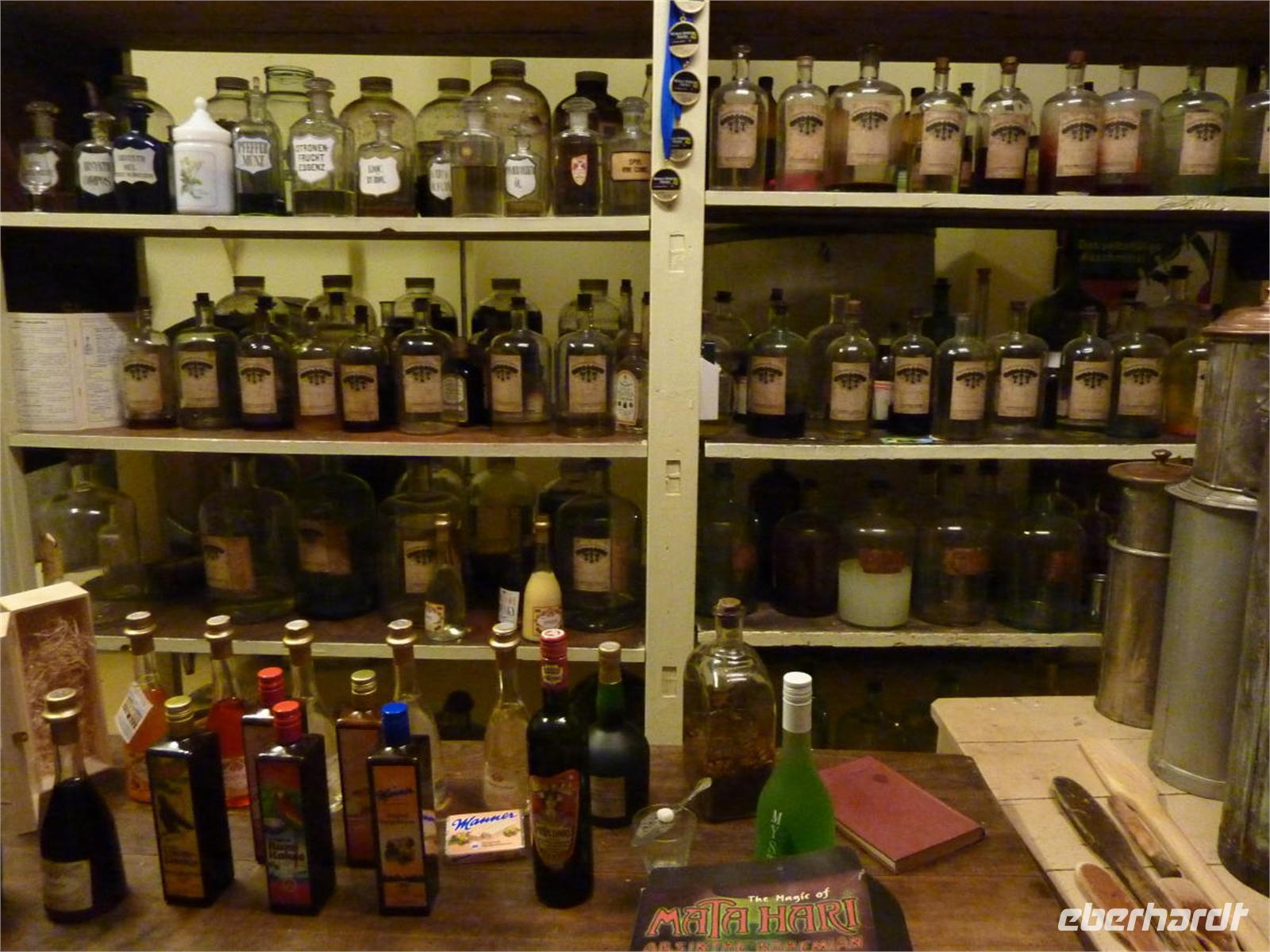 Er zeigte uns wie Schnaps in den Historischen Gebäude hergestellt wurde und wird und danach durften wir auch 3 verschieden Sorten von 12 zur Auswahl verkosten. Heute noch werden vom Spezialisten für Brände und Liköre, in denen uralte Rezepte die Qualität bestimmen hergestellt. Einige von unserer Gruppe deckten sich gleich für zu Hause damit ein.
