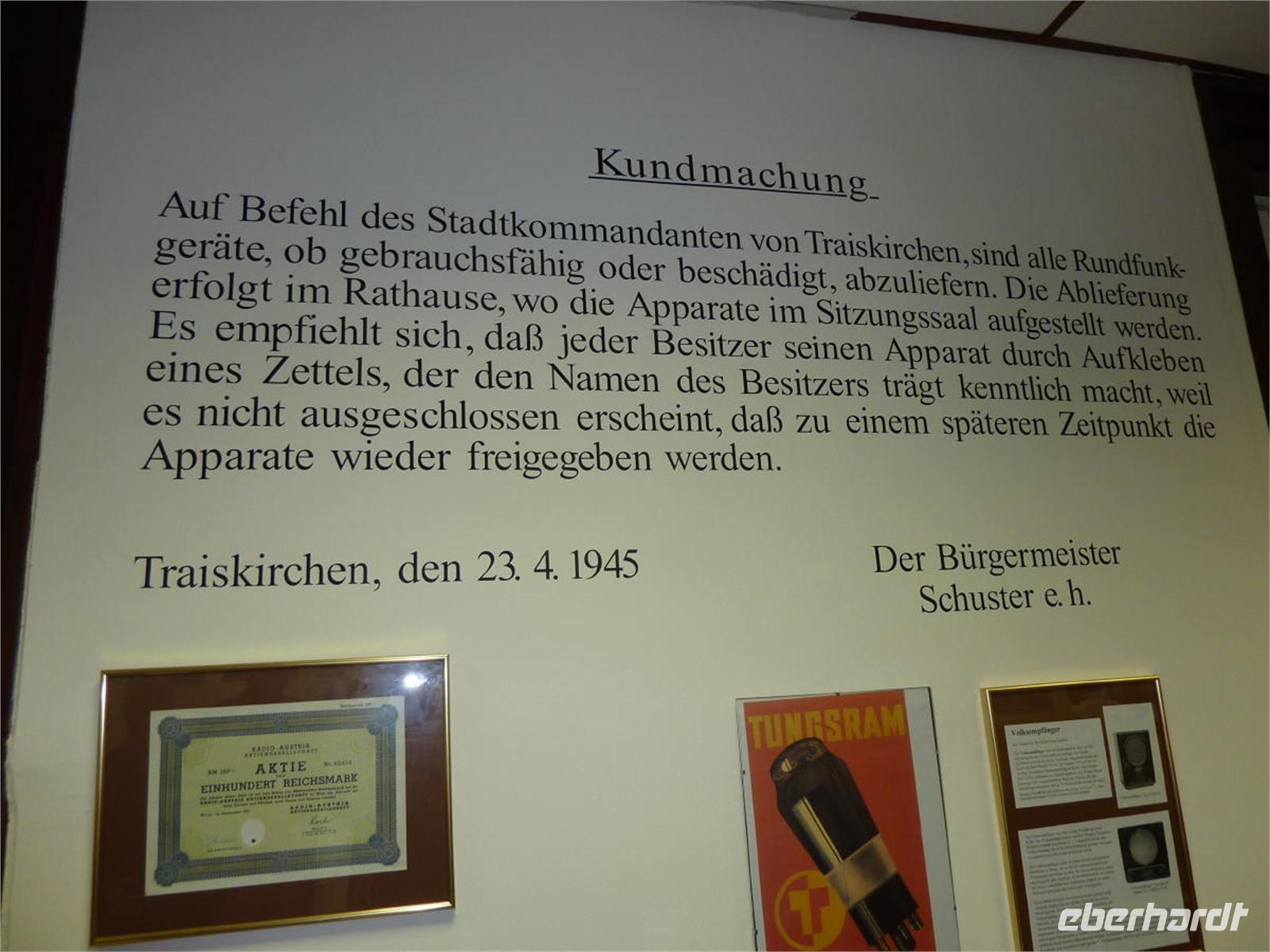 Als erstes Bildern von der alten Spinnerei Steinputte, Glocke Wetterfahne, Schützenscheiben, Zunfttruhe der Traiskirchner Müller, alles mit seiner Geschichte beschrieben.