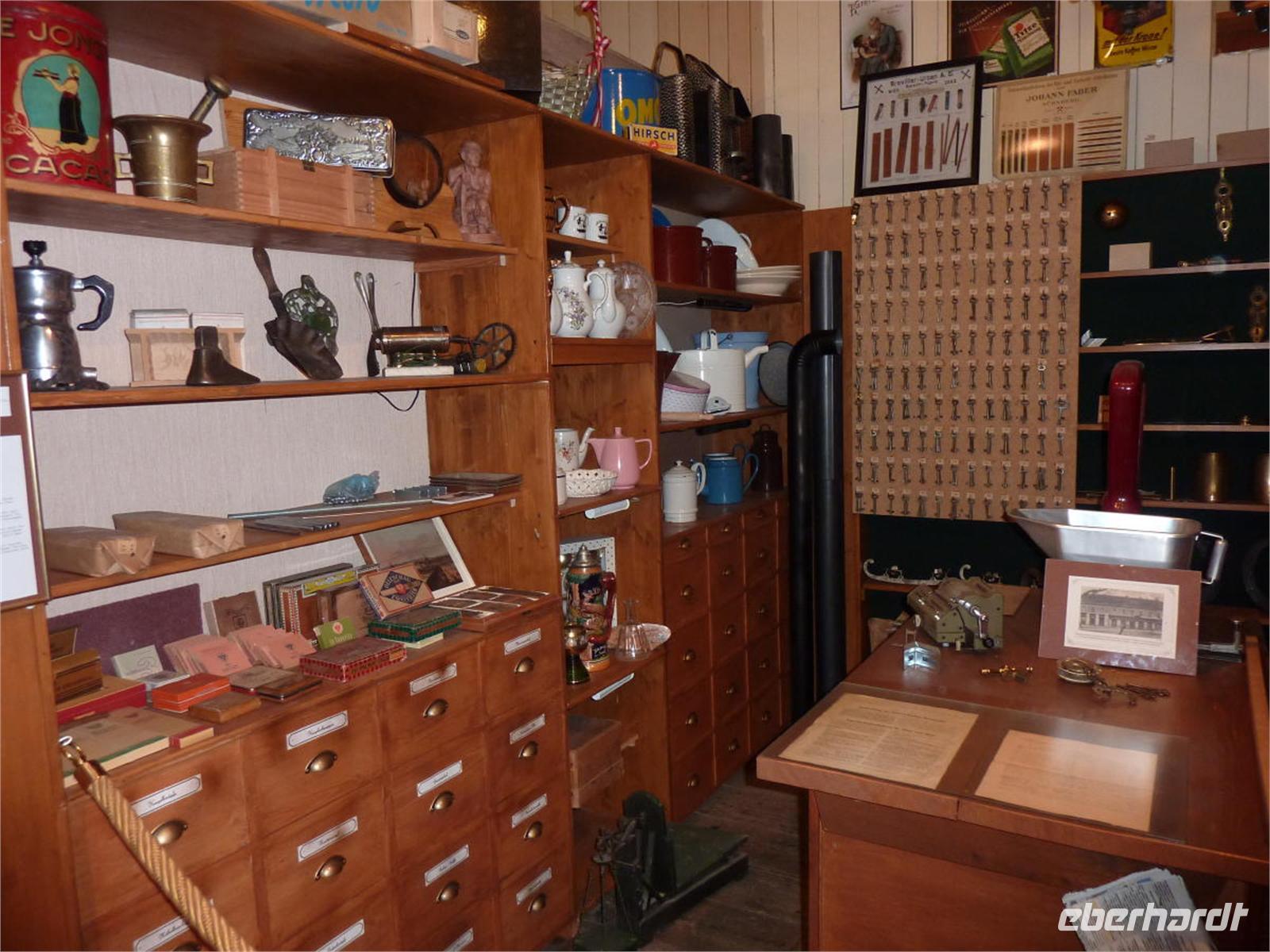 Ein Kaufhaus der damaligen Zeit, wo es auch Kaffeeröstofen, Milchkannen und manchmal auch einen Selbstwählautomaten für Süßigkeiten gab.