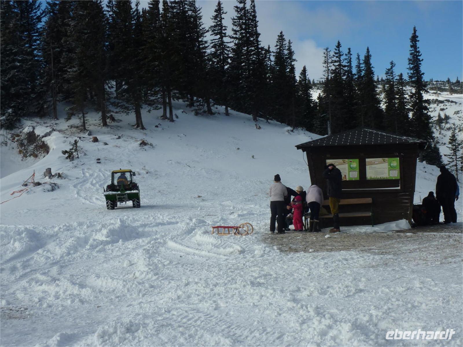 Schneeschuh-Wandern ist ein trendiges Vergnügen und man könnte sich auch Schneeschuhe in der Bergstation Raxbahn ausleihen.