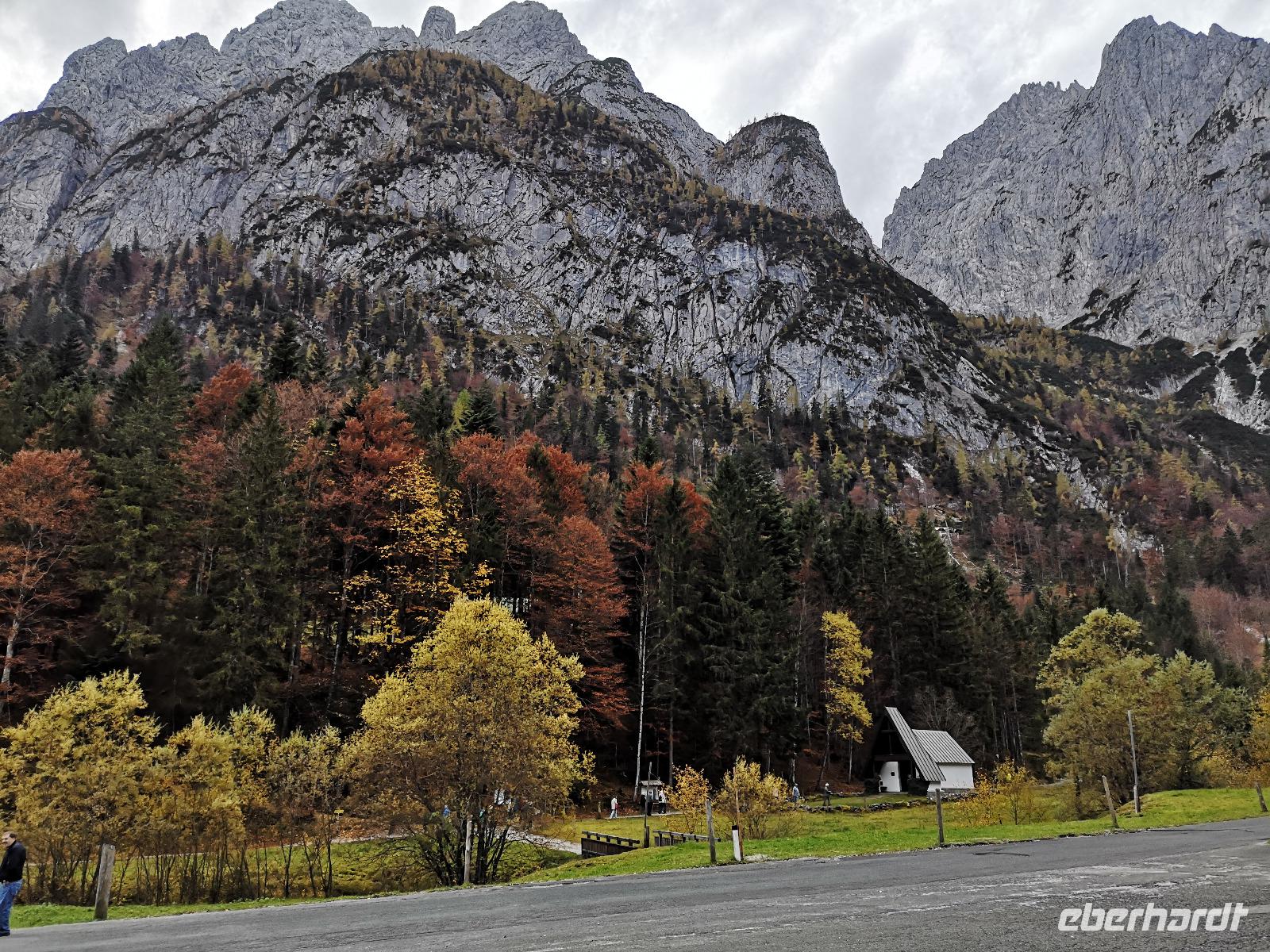 Wir fuhren deshalb mit unseren beiden Bussen weiter bis nach Ellmau und dort mit der Seilbahn hoch auf den Berg Hartkaiser, auf eine Höhe von 1550 Metern. Von hier oben konnten wir dem Wilden Kaiser gegenüberstehen und das mächtige Massive in der gesamten Bracht betrachten. Wunderschön diese Landschaft eingehüllt in die Farben des frühen Herbstes.