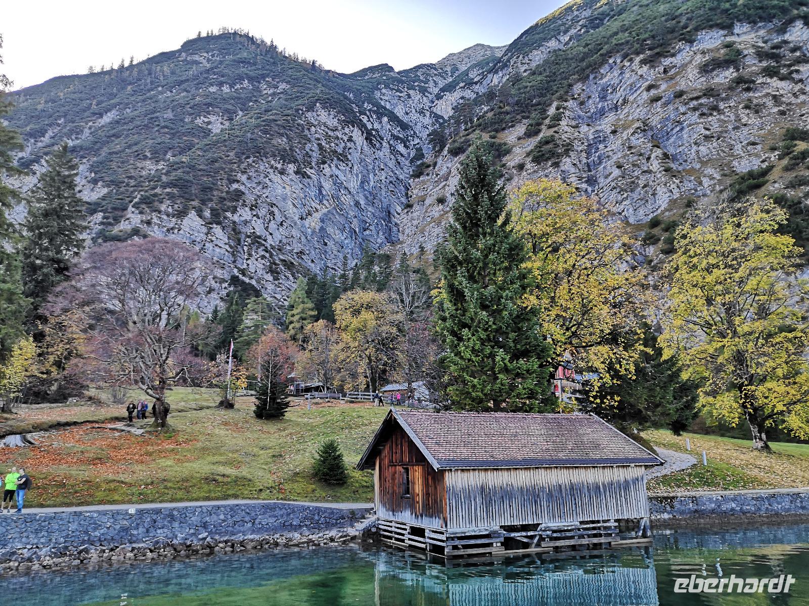 Die Steilwände am Achensee sind fast so hoch und steil wir an den Fjords in Norwegen. An einigen Stellen kam schon gar keine Sonne mehr an, die Felsen warfen den Schatten auf