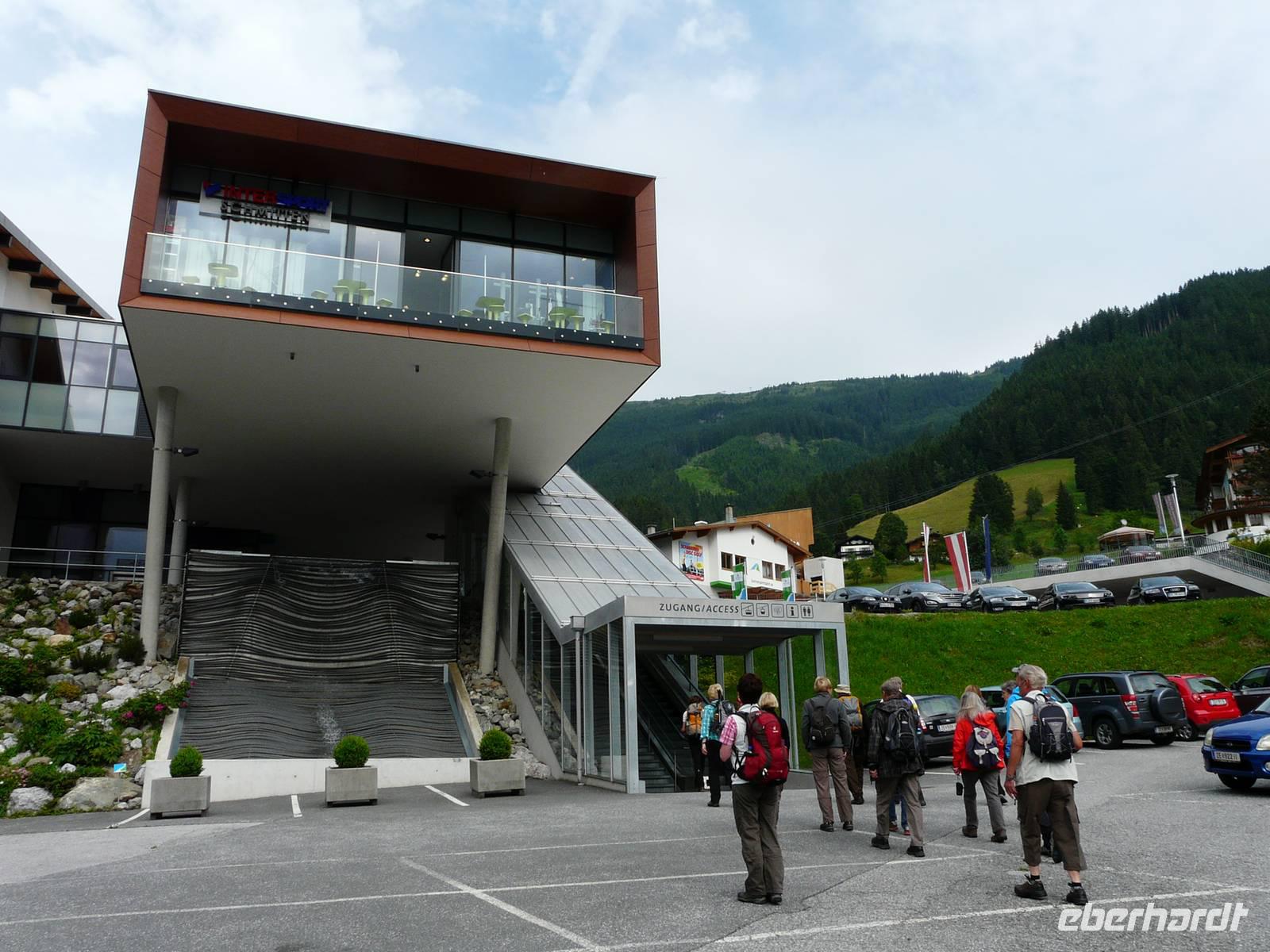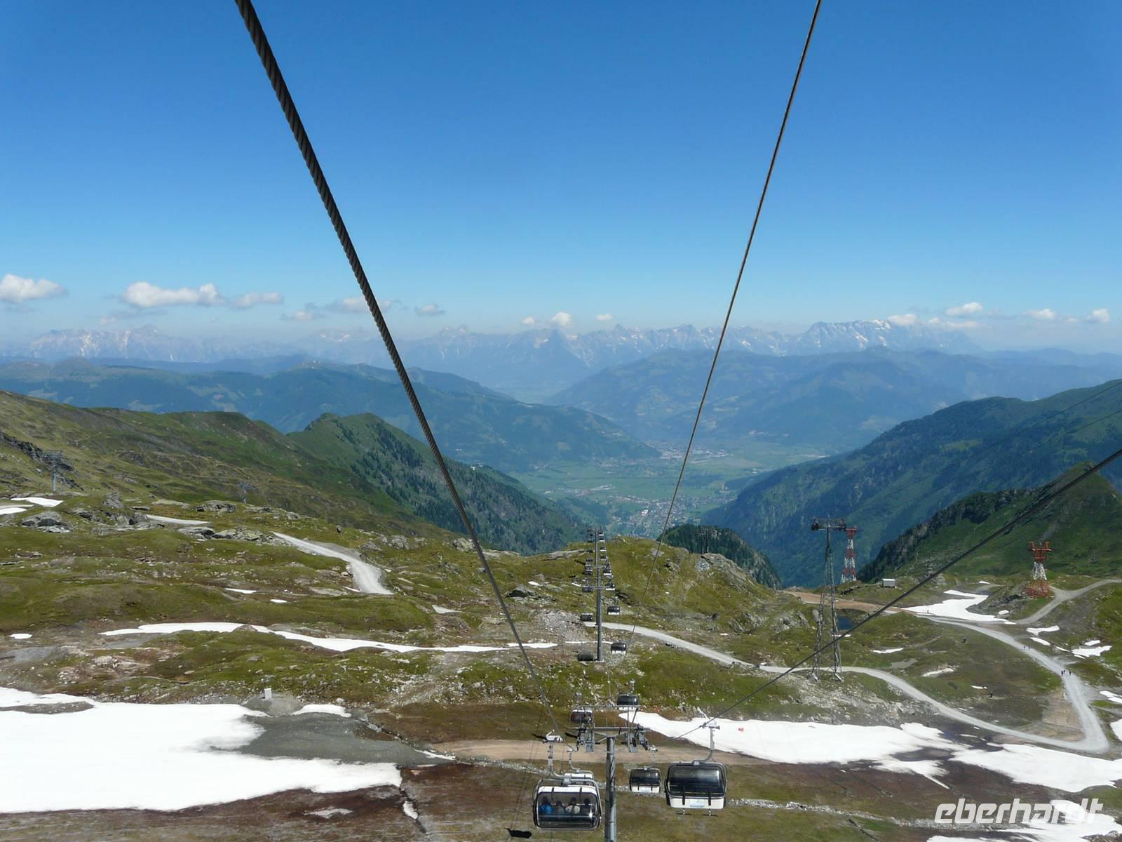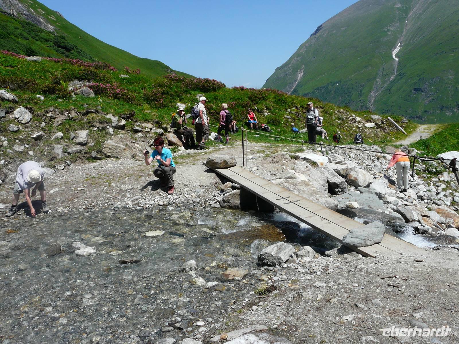 Mit unserer Vorfreude auf diesen 3000er Gipfel sind auch die Temperaturen gestiegen, die nächsten Tage werden uns immer über 30°C erwarten. So müssen wir gerade die Wanderungen entschärfen, die in der prallen Sonne und auf ungeschützten Wegen liegen. So entscheiden wir uns, dem heißen Abstieg vom Kitzsteinhorn eine Wanderung durch die kühle Klamm vorzuziehen. Doch erstmal zum Anfang des Tages: Mit einem Transfer werden wir vorbei an Kaprun bis zur Talstation des Kitzsteinhorns gebracht. Hier beginnt quasi eine dreifache Auffahrt. Zuerst mit Gondel, dann mit Sessellift und zu guter Letzt mit großer Kabinenbahn gelangen wir zum „Top of Salzburg", dem mit 3029 m höchstgelegenen Aussichtspunkt des Salzburger Landes. Die sogenannte „Gipfelwelt 3000" ist ein Besucherzentrum nahe am Gletscher. Von einer Aussichtplattform genießen wir einen atemberaubenden Ausblick in die Bergwelt Österreichs, von den Hohen Tauern mit dem Großglockner hinüber über die Zillertaler Alpen bis hin zur Zugspitze. Während wir versuchen uns an dem Panorama satt zu sehen, macht sich gleichzeitig auch eine kleine Gruppe Gipfelstürmer fertig, um mit 2 Bergführern den Gipfel des 3203m hohen Kitzsteinhornes zu erklimmen. Wir treffen uns dann doch lieber nur mit dem Nationalpark Ranger, welcher uns durch einen in den Berg gehauenen Stollen führt und uns die Enstehung der Gletscherwelt der Hohen Tauern erklärt, die Vielfalt der Natur- und Pflanzenwelt näherbringt und uns die Geschichten über die einstigen Erz- und Silbervorkommen in der Tiefe der Berge erzählt. Am Ende des Stollens befinden wir uns auf einmal an der freien Flanke des Berges und können mit dem Skywalk fast über den Gletscher fliegen. Als letztes Highlight der Gipfelwelt wartet auf uns ein kurzer, jedoch fantastischer Film, welcher die Einzigartigkeit des Nationalparks Hohe Tauern und des Kitzsteinhornes in Bilden einfängt untermalt mit der Stimme von (wer hat's erkannt???) Andreas Gabalier. Es wird Zeit, hinab zu fahren und so nutzen wir Kabinenbahn und Sessellift wieder talwärts, sodass wir an der Häuslalm die kurze Wanderung zur Salzburger Hütte starten. Der Wirt, ein fränkisches Original, macht auch diesen Halt zu einem einzigartigen Erlebnis und gute Augen möchten gesehen haben, dass der hervorragend schmeckende Kaiserschmarrn mit Rum flambiert wurde! Dies führt natürlich dazu, dass der Aufstieg zurück zur Alm und damit auch zur Gondelbahn etwas schwerer fällt - die mittlerweile sengende Hitze selbst in dieser Höhe nicht zu vergessen.
