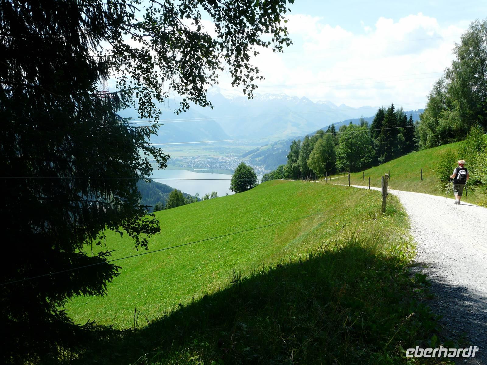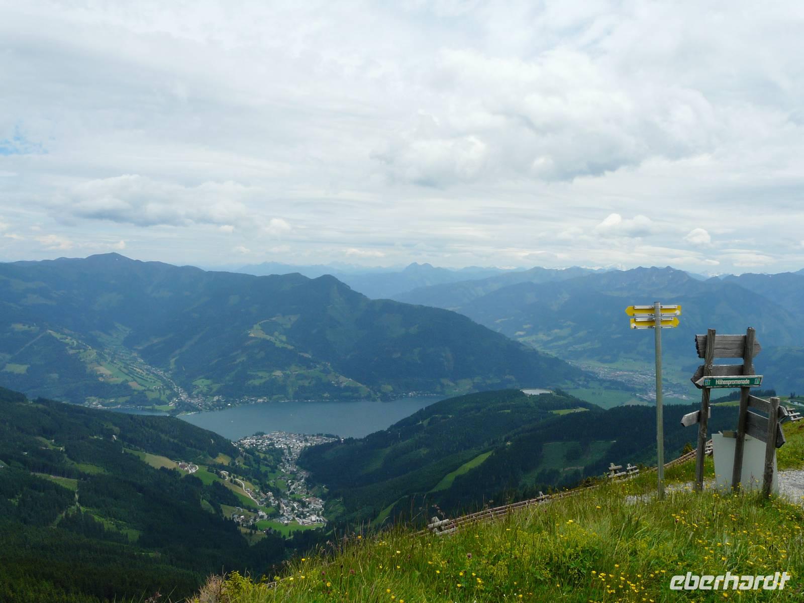 Nach einem ausgiebigen Frühstück treffen wir im Hotel unsere Bergführerin - Herta wird uns die ganze Woche die Bergwelt am Rande der Hohen Tauern zeigen. Und schon bei der ersten Begegnung sprühen die Sympathiefunken! Unsere erste Wanderung führt auf den Hausberg der Zeller. Mit der Sonnalmbahn fahren wir hinauf zum Berghotel Blaickner's Sonnalm, wo wir einem breiten Forstweg gemächlich bergan folgen. Neben einer Skipiste führt der erste Stich durch den Wald nach oben und ehe wir uns versehen, liegt vor uns ein traumhafter Ausblick ins Glemmertal, hinüber zu den Loferer Bergen und zum Steinernen Meer. Nach kurzer Pause folgen wir nun der Höhenpromenade, genießen nun das Panorama des Zeller Sees, umringt von den Bergriesen. Der gemütliche Weg führt vorbei an einem kleinen Lehrpfad und wer Sie noch nicht kennt, lernt hier die typischen Alpenbewohner kennen, die nicht auf zwei Beinen laufen. Zur Mittagszeit rasten wir, leeren unser Lunchpaket und genießen die traumhafte Aussicht. Nach kurzer Einkehr in die Hütte laufen wir hinüber zur Bergstation der Schmittenhöhebahn, besichtigen kurz die kleine Kapelle, welche der Kaiserin Sissi gewidmet ist und fahren dann talwärts.