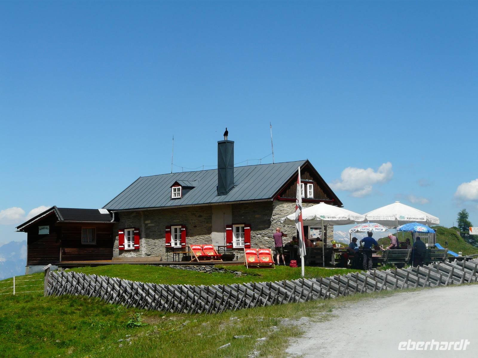 Die Hitze lässt heute zu allererst unsere Köpfe qualmen, was tun bei 35°C??? Wandern oder nicht? Museum? Frei? Alles nichts für uns und so entscheiden wir die Wanderung erstmal anzugehen, schließlich ist sie teilweise gut durch Bäume geschützt. So lassen wir uns also am Morgen wieder abholen, werden mit dem Transfer auf die andere Seite des Zeller Sees gebracht und treffen am Mitterberghof in Thumersbach wieder unsere Wanderführerin Herta, die uns wie jeden Morgen mit einem herzlichen Lächeln begrüßt. Wir besichtigen kurz die kleine Kapelle am Wegesrand und beginnen dann den Aufstieg hin zur Schwalbenwand. Wir folgen dem breiten Forstweg, sind froh, dass sich Sonne und Schatten immer gleichmäßig abwechseln und vor allem, dass in 1200m Höhe ein paar Grad weniger sind und wir von einem kühlen Lüftchen begleitet werden. So gestaltet sich der Weg hinauf gar nicht so schwierig und nach ca. 2 Stunden haben wir die Schützingalm auf 1700m Höhe erreicht. Wir rasten und erfreuen uns heute mal an einer ganz neuen Perspektive - der Blick geht über den Zeller See, hin zur Schmittenhöhe und hinauf zum schneebedeckten Kitzsteinhorn. Nach kurzer Erholungspause formiert sich nun auch ein Grüppchen mit Gipfelstürmer, die auch in der Hitze die Schwalbenwand erklimmen wollen. So teilen wir uns wieder, Herta nimmt mit den Gipfelstürmern die letzten 300 Höhenmeter in Angriff, während ich nach verlängerter Pause mit dem Teil der Gruppe, die etwas mehr Erholung suchen, so langsam den Rückweg angehe. Da wir aufgrund der Hitze nicht den langen ungeschützten Übergang entlang der Bergflanke hinüber zum alternativen Rückweg gehen möchten, entscheiden wir uns, auf gleicher Strecke zum Mitterberghof zurückzukehren. Dort lassen wir es uns natürlich gut gehen und genießen das traumhafte Panorama und die kühle Brise, während wir auf den Rest der Gruppe warten. Diese kommen dann letztendlich auch etwas geschafft aber überglücklich wieder hinab - Tagesziel erreicht - Schwalbenwand bezwungen!