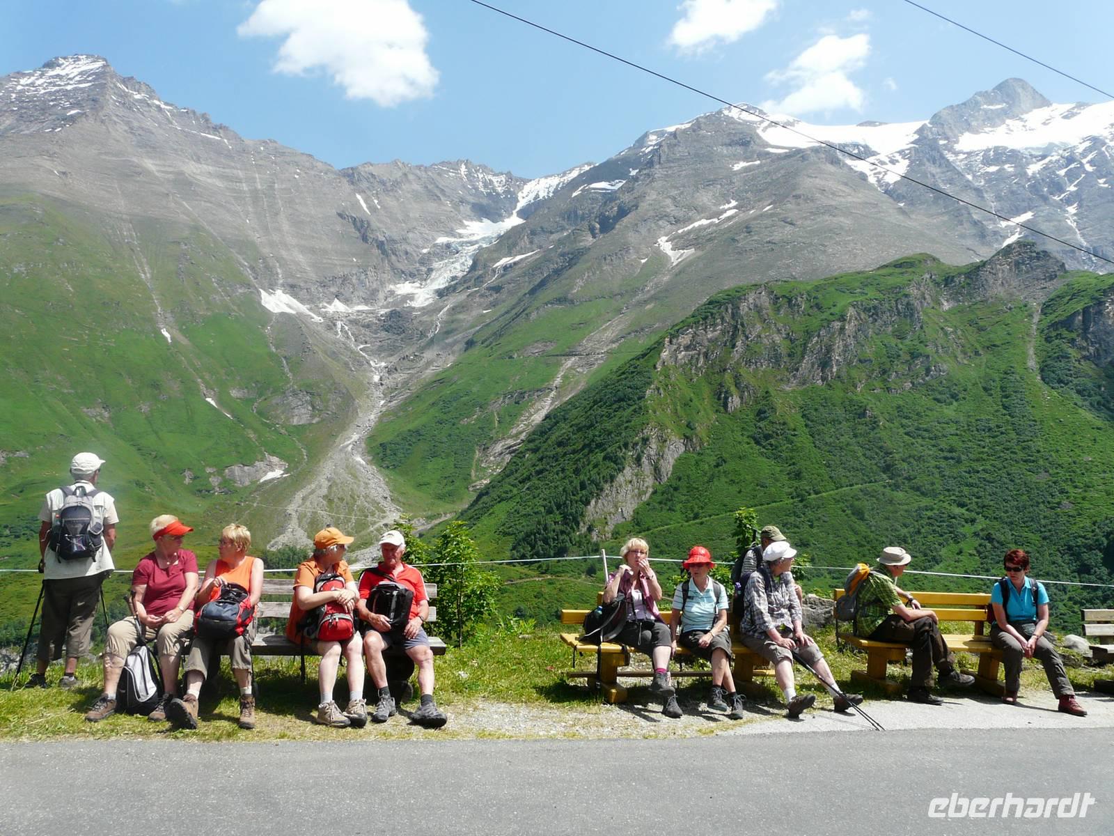 Heute heißt es „Beine hoch" - zumindest laut Programm. Doch alle Wanderfreunde haben sich Ihre eigenen Tagesprogramme rausgesucht, gehen baden, schauen sich die Kirchen und Kunstausstellungen in Zell an, machen eine kleine Wanderung oder folgen dem Vorschlag der Reisebegleitung, mal eine Tour mit dem E-Bike zu machen. Und so starten wir wieder zeitig, holen in Zell unsere Leihräder und nach einer kurzen Runde zum Einradeln sitzen wir in der Pinzgauer Lokalbahn, welche uns bis ins Oberpinzgau nach Krimml bringt. Durch einen Waldweg meistern wir fast von Zauberhand den Anstieg hinauf zum Eingang zu den Wasserfällen. Am unteren Wasserfall machen wir Picknick und stärken uns für die bevorstehende Tour. Diese führt uns nun im Laufe des Tages einmal komplett durch das Pinzgau. Wir folgen dem perfekt ausgeschilderten Tauernradweg, machen hier und da kurze Pausen, kommen zufällig sogar in den Genuss, einen Sedgway zu testen. Der Radweg führt uns zum einen Teil an der Salzach entlang, zum anderen macht er immer wieder kurze Abstecher in die Städte und Dörfer im Tal. So radeln wir durch Neukirchen am Großvenediger, Bramberg am Wildkogel, halten Mittersill und bestaunen die wundervoll geschmückten Häuser in Stuhlfelden. Ab Piesendorf scheint Zell am See dann schon zum Greifen nahe, doch das letzte Stückchen zieht sich und so sind wir kurz vor knapp am Radgeschäft und geben unsere E-Bikes wieder ab. Am Abend hören wir von anderen Wanderfreunden, was man noch alles hätte machen können - aber dafür müssten wir wahrscheinlich unseren Aufenthalt verlängern.