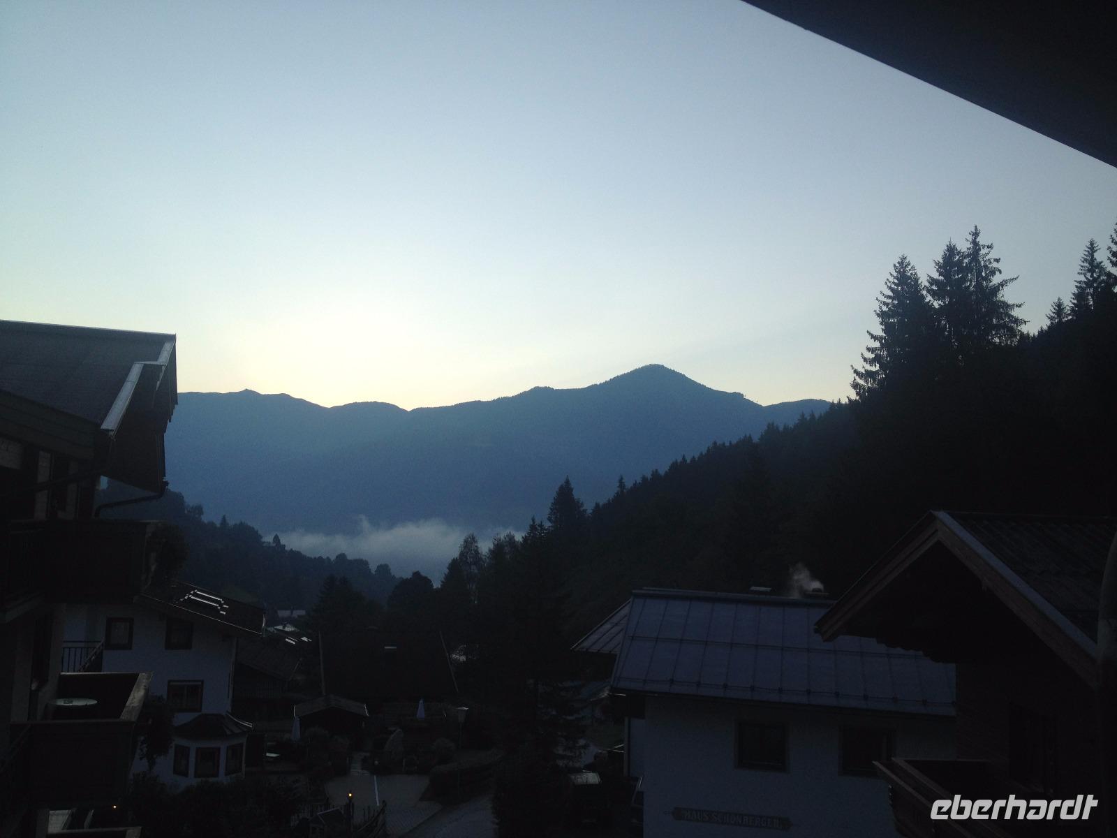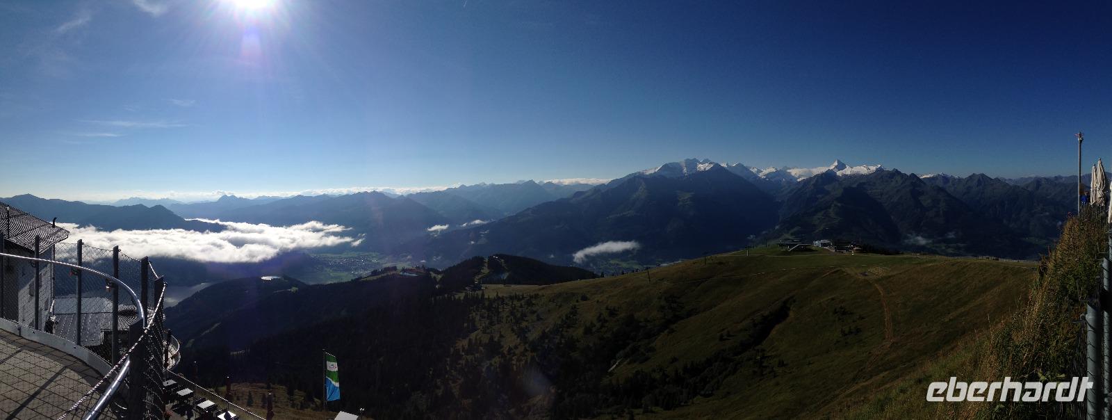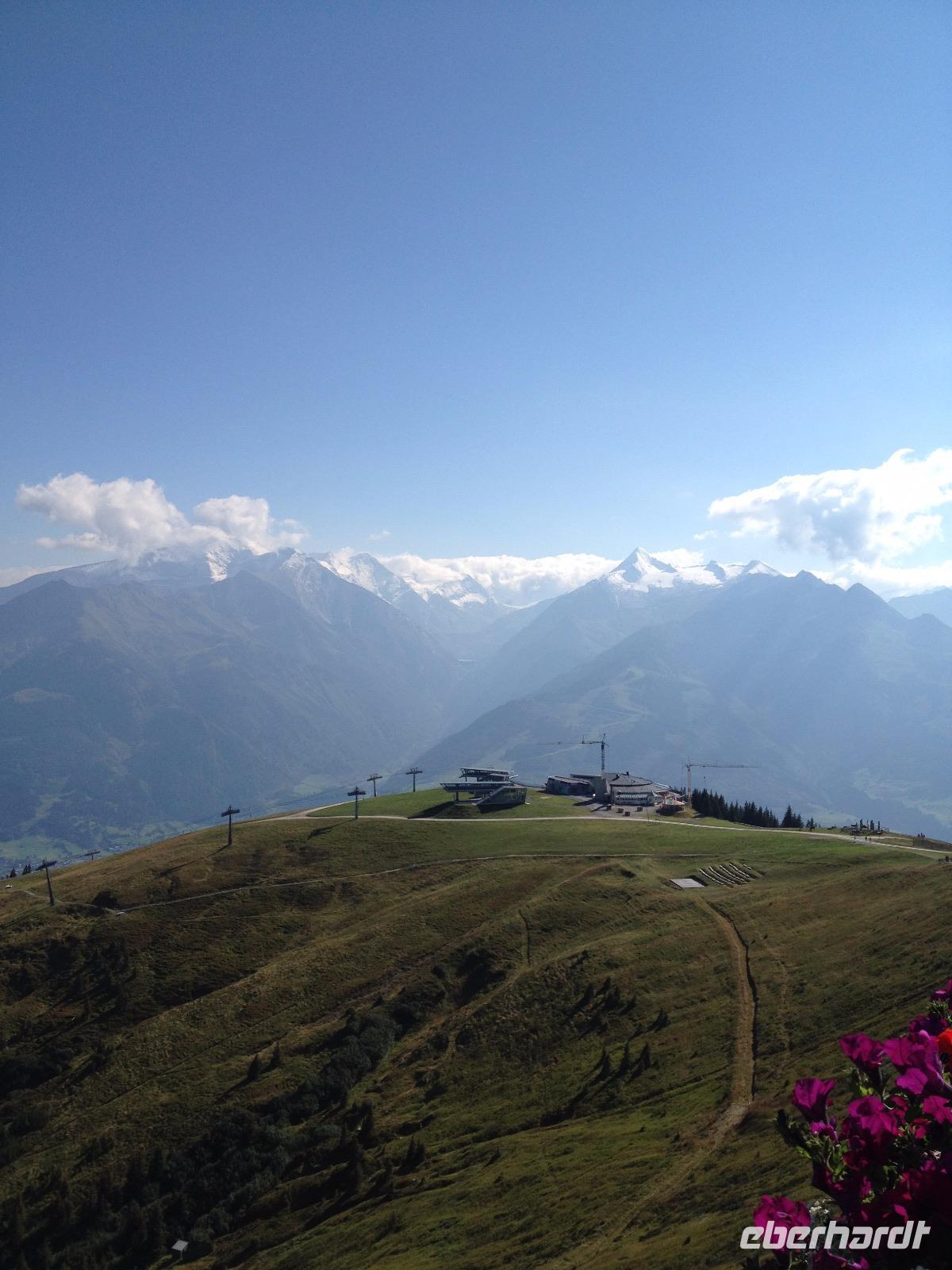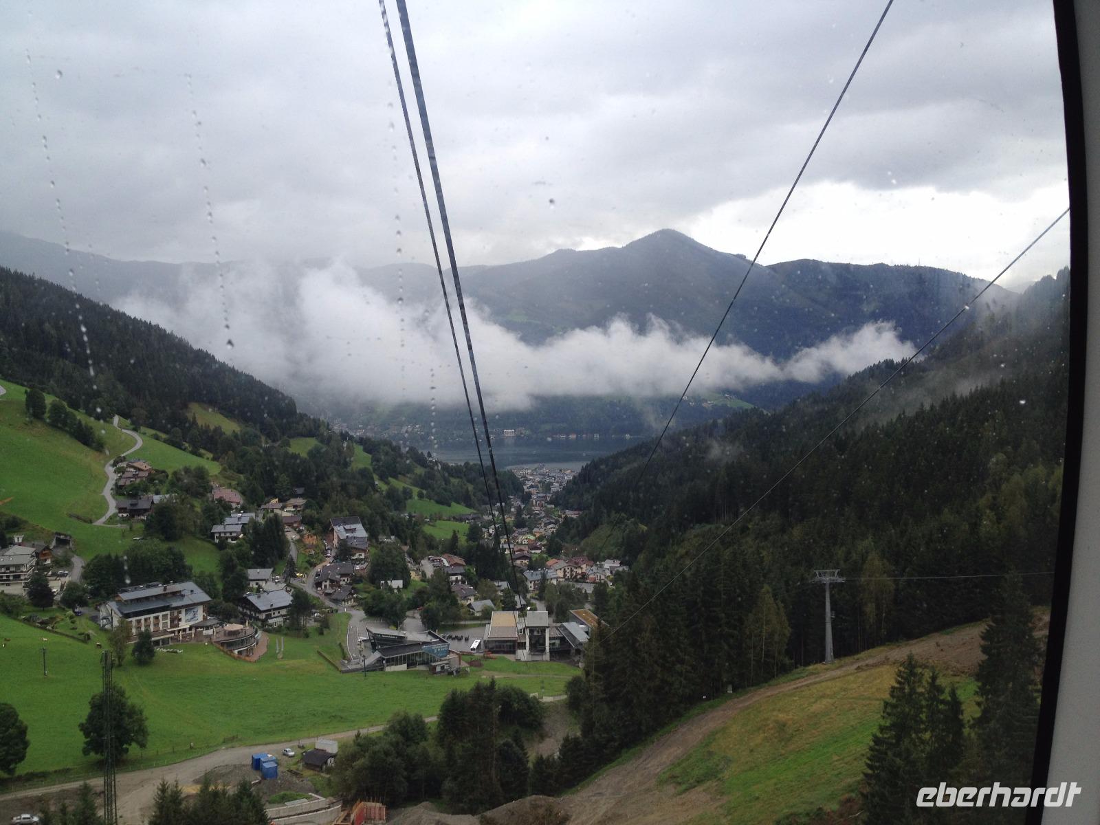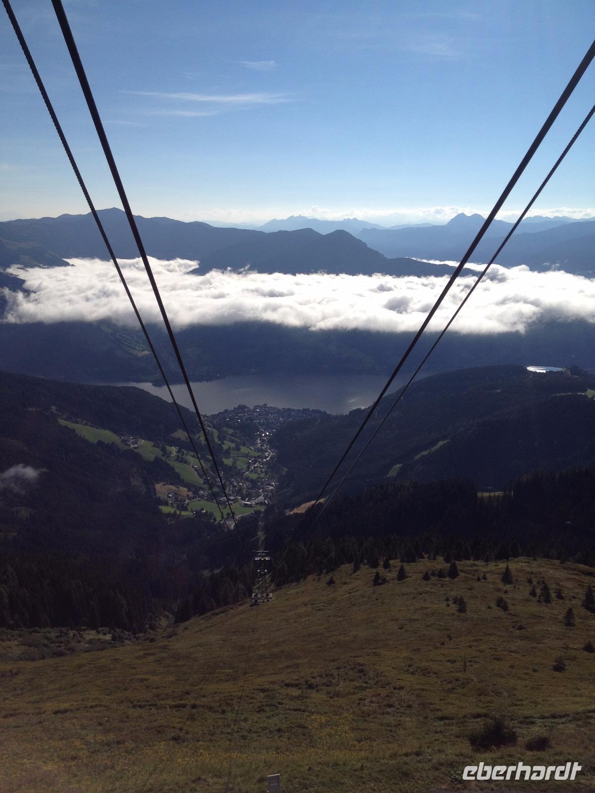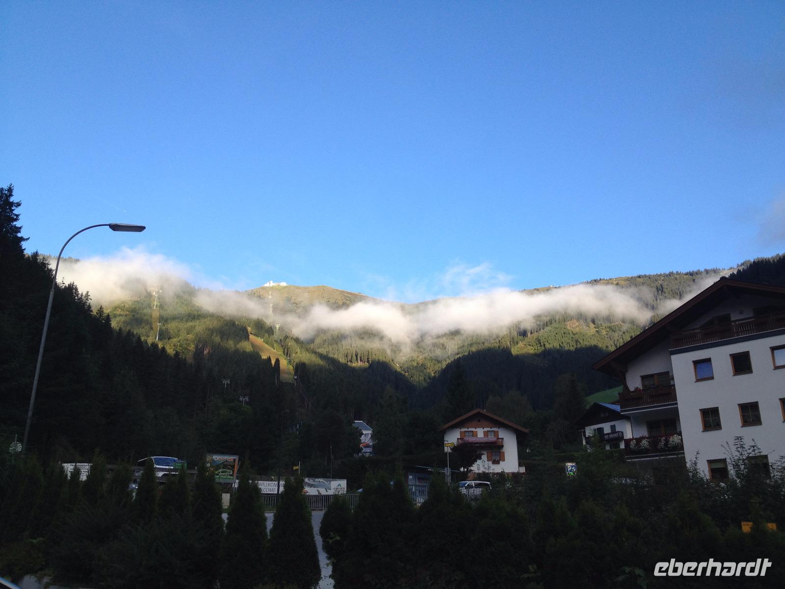 Der Montag empfing uns mit Schauern, welche sich ab und zu über unser Hotel abregneten. Das Frühstück war für uns ab 7:30 Uhr bereit und wir schmierten uns noch ein Lunchpaket für den heutigen Wandertag. Um 9 Uhr lernten wir Herta, unsere örtliche Wanderleiterin, kennen und sie konnte uns mit ihrem Charme sofort für sich und die Umgebung begeistern. Ohne große Vorreden begannen wir unsere erste gemeinsame Wanderung zur Schmittenseilbahn mit der wir auf die Schmittenhöhe fuhren und in den Nebel aus Wolken unter uns hinab schauten. Wir wanderten entlang des Gebirgskamms bis zur Sonnalm und legten auf unserem Weg eine Mittagspause ein, wo wir unsere mitgebrachten Lunchpakete genossen. An diesem Tag waren wir 12:45 Uhr nach der ersten leichten Wanderung zurück im Hotel und machten uns kurz für unseren Nachmittag frisch. Nach einer halben Stunde trafen wir uns in der Lobby und ich ging mit meinen Gästen zusammen die Schmittenstraße hinab bis zum Grandhotel und dem daneben angesiedelten Bootsanleger, wo wir mit unserer praktischen Zell am See - Kaprun - Sommer - Karte kostenlos auf eine Rundfahrt über den Zeller See starteten. Nach einer knappen Stunde mit einer wundervollen Aussicht auf Zell am See kamen wir zurück am Anlieger an und wir nutzten die Freizeit bis zum Abendessen für einen Stadtbummel. An diesem Abend begann unser Abendbrot bereits 18 Uhr und war, wie auch die nachfolgenden Tage, köstlich.