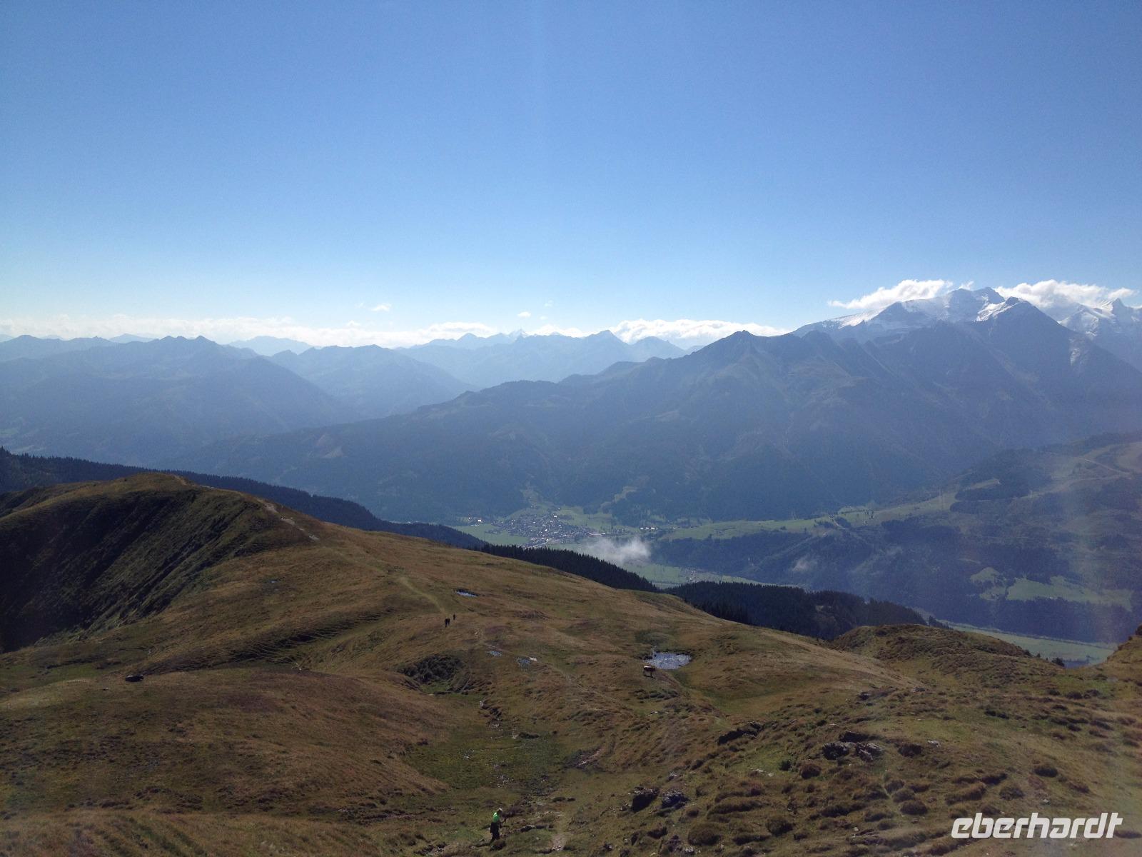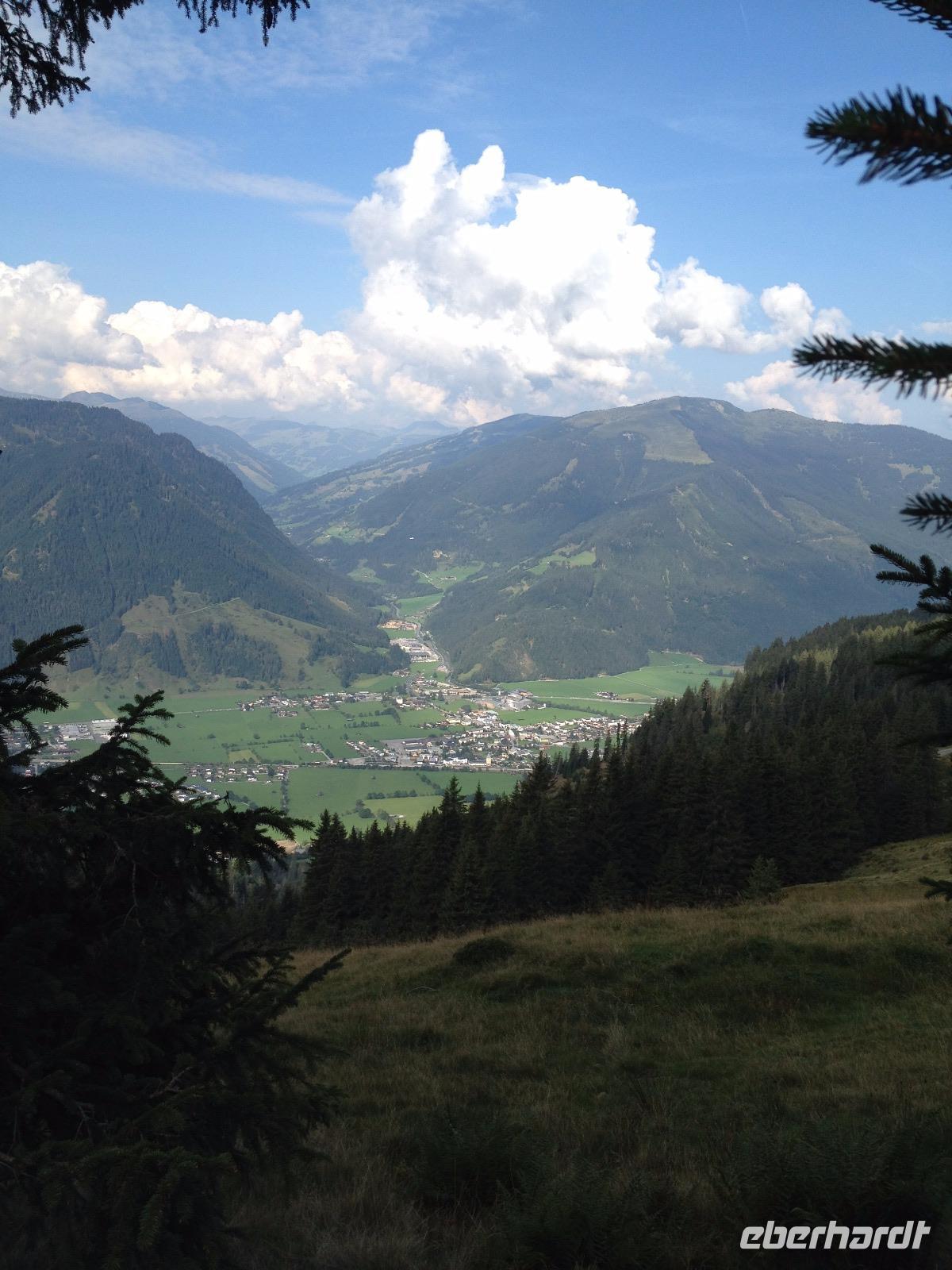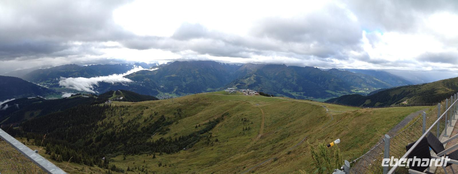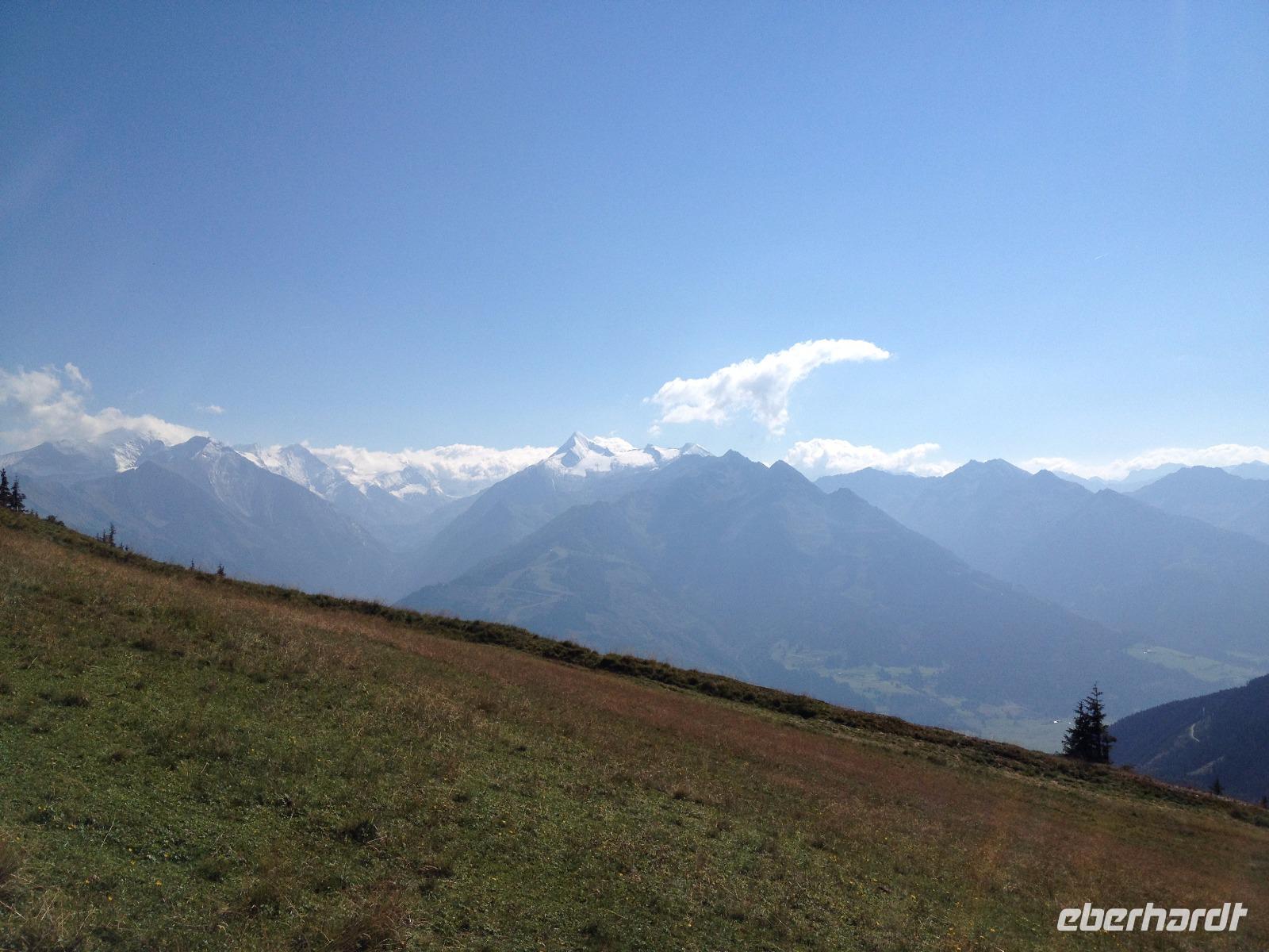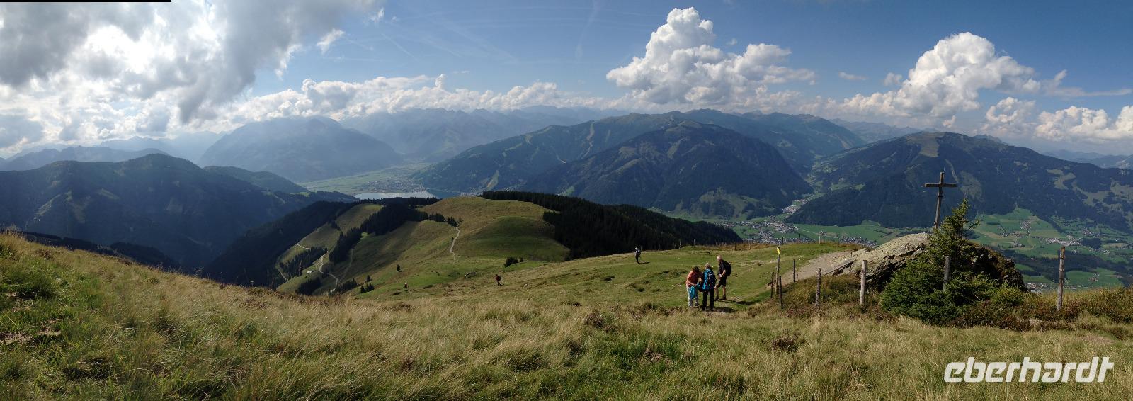 Der Montag empfing uns mit Schauern, welche sich ab und zu über unser Hotel abregneten. Das Frühstück war für uns ab 7:30 Uhr bereit und wir schmierten uns noch ein Lunchpaket für den heutigen Wandertag. Um 9 Uhr lernten wir Herta, unsere örtliche Wanderleiterin, kennen und sie konnte uns mit ihrem Charme sofort für sich und die Umgebung begeistern. Ohne große Vorreden begannen wir unsere erste gemeinsame Wanderung zur Schmittenseilbahn mit der wir auf die Schmittenhöhe fuhren und in den Nebel aus Wolken unter uns hinab schauten. Wir wanderten entlang des Gebirgskamms bis zur Sonnalm und legten auf unserem Weg eine Mittagspause ein, wo wir unsere mitgebrachten Lunchpakete genossen. An diesem Tag waren wir 12:45 Uhr nach der ersten leichten Wanderung zurück im Hotel und machten uns kurz für unseren Nachmittag frisch. Nach einer halben Stunde trafen wir uns in der Lobby und ich ging mit meinen Gästen zusammen die Schmittenstraße hinab bis zum Grandhotel und dem daneben angesiedelten Bootsanleger, wo wir mit unserer praktischen Zell am See - Kaprun - Sommer - Karte kostenlos auf eine Rundfahrt über den Zeller See starteten. Nach einer knappen Stunde mit einer wundervollen Aussicht auf Zell am See kamen wir zurück am Anlieger an und wir nutzten die Freizeit bis zum Abendessen für einen Stadtbummel. An diesem Abend begann unser Abendbrot bereits 18 Uhr und war, wie auch die nachfolgenden Tage, köstlich.